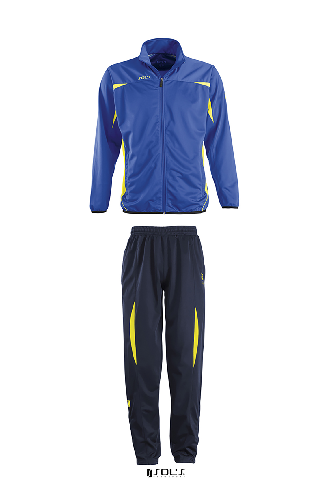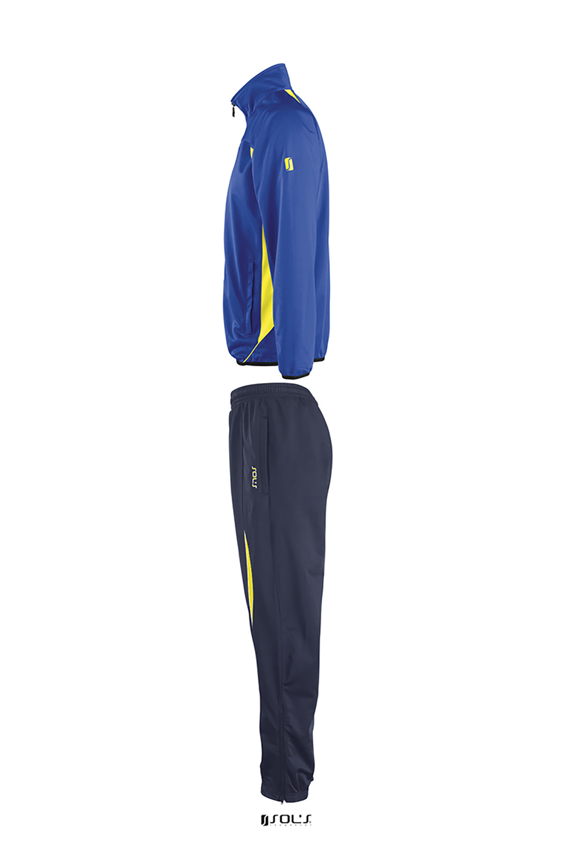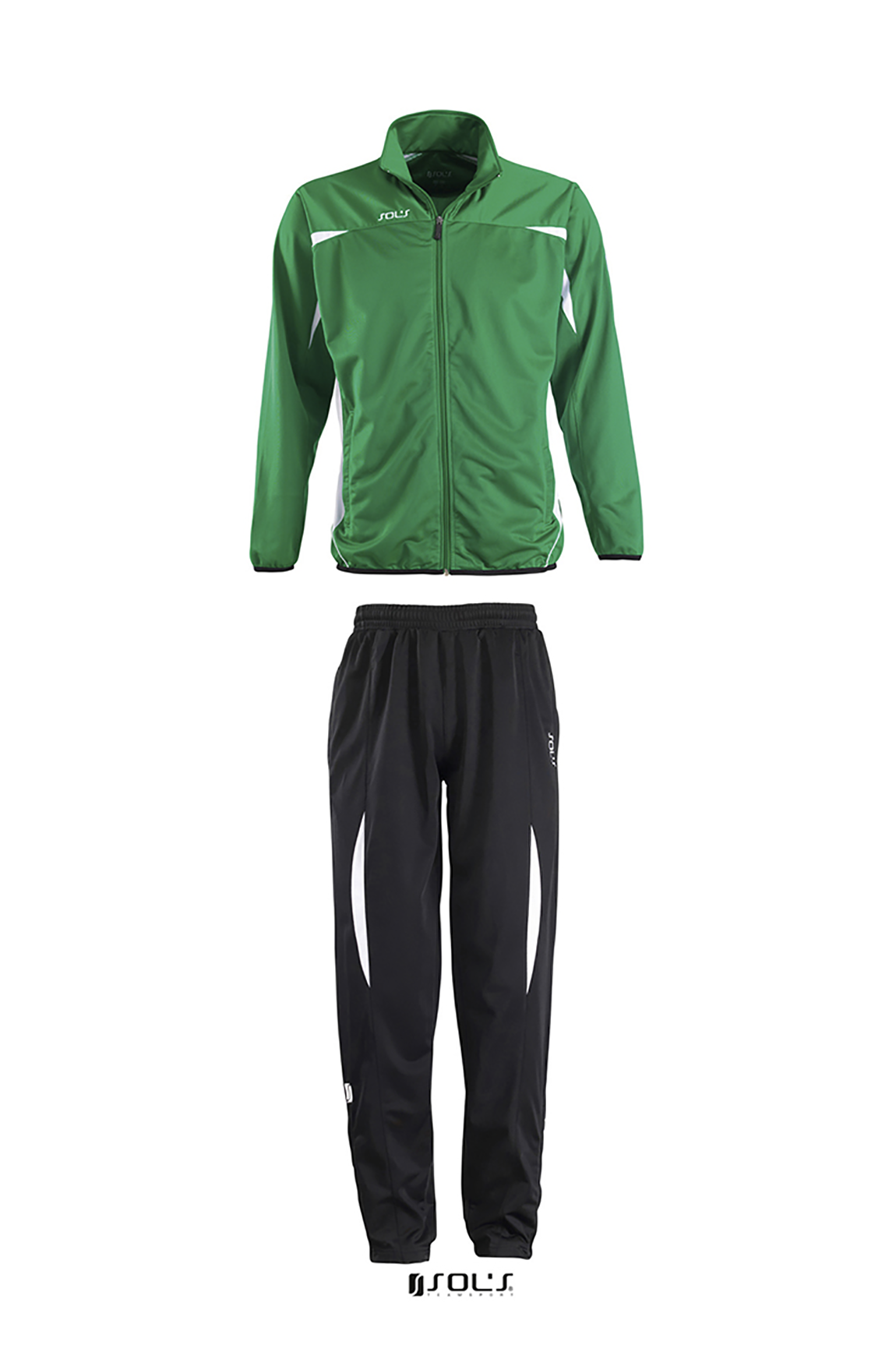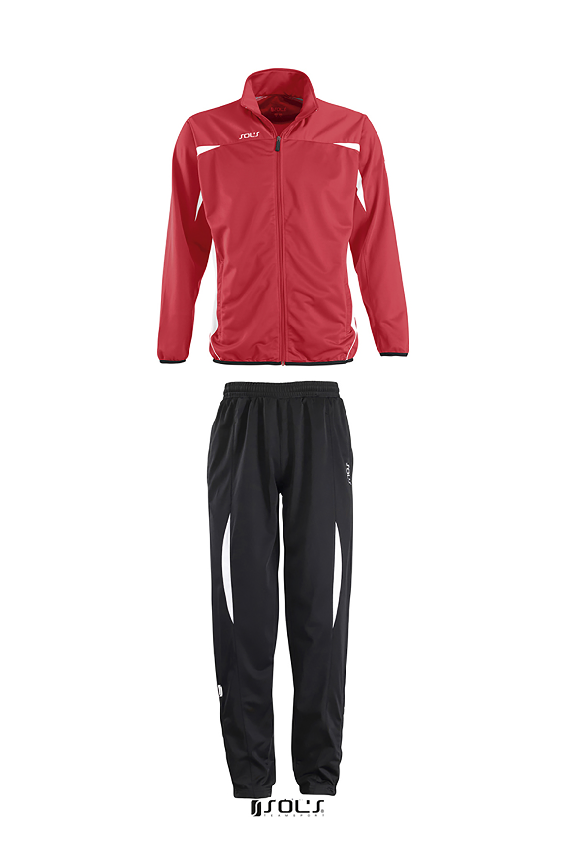 Η φόρμα αποτελείται από ζακέτα με κλείσιμο φερμουάρ και ελαστικό ρέλι στις μανσέτες και τη μέση, διαθέτοντας 2 τσέπες με φερμουάρ. Τα πλαϊνά και τα μανίκια περιλαμβάνουν δίχτυ για καλύτερη κυκλοφορία του αέρα. Το παντελόνι έχει ελαστική μέση με κορδονάκι και 2 τσέπες με φερμουάρ, ενώ διαθέτει λάστιχο στους αστραγάλους.