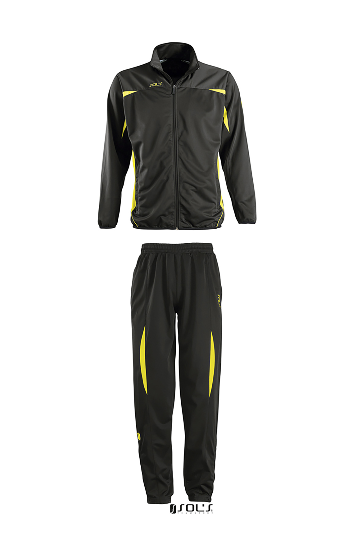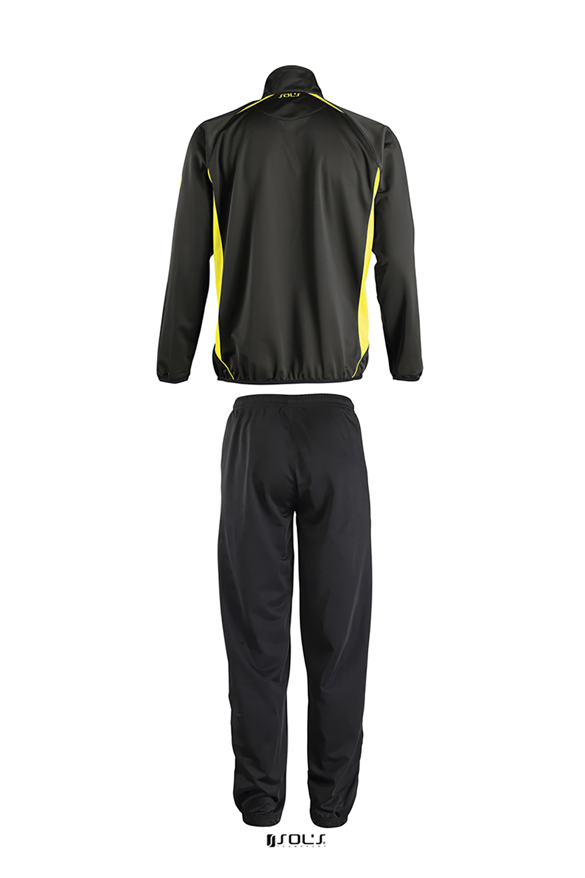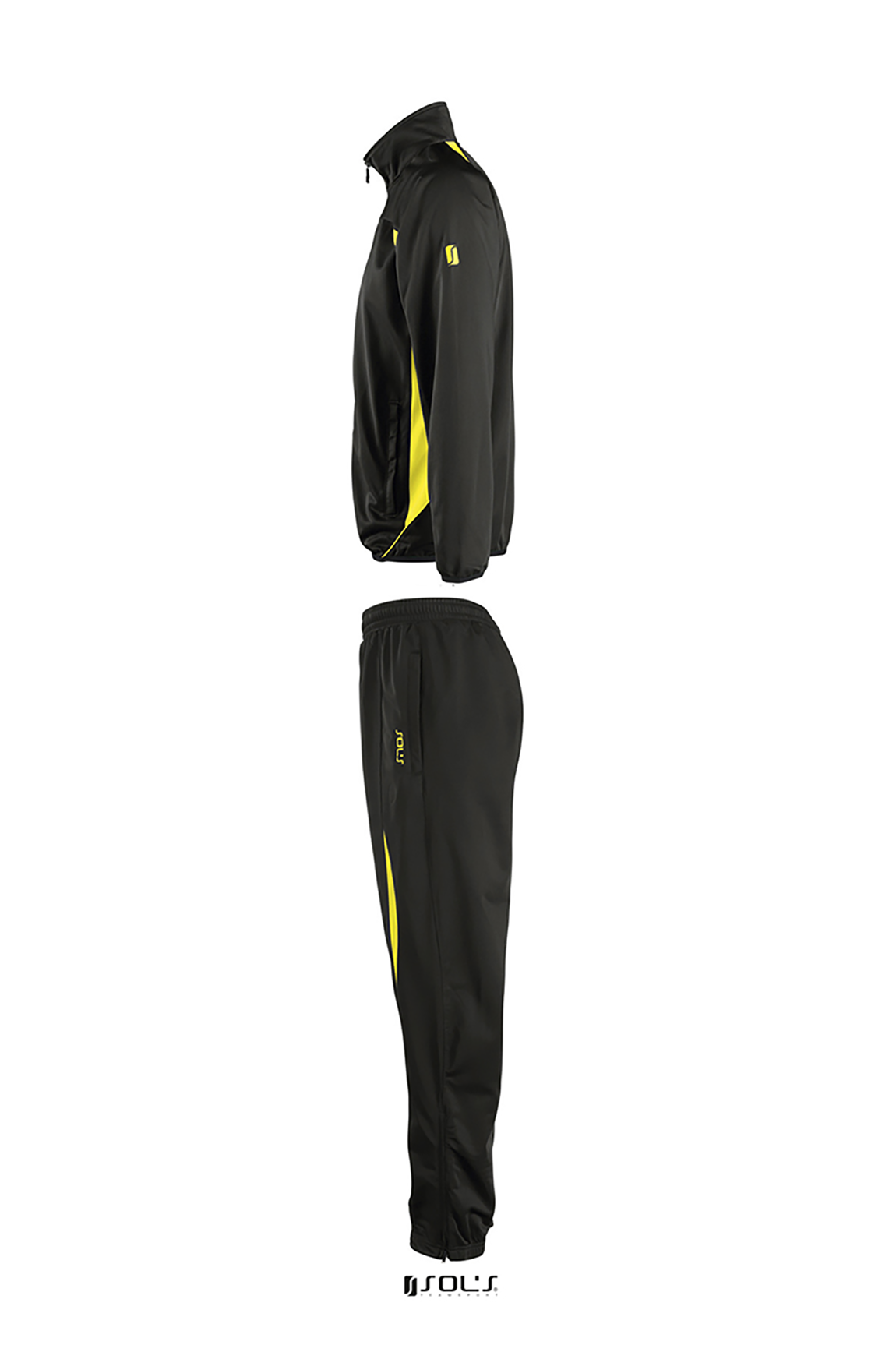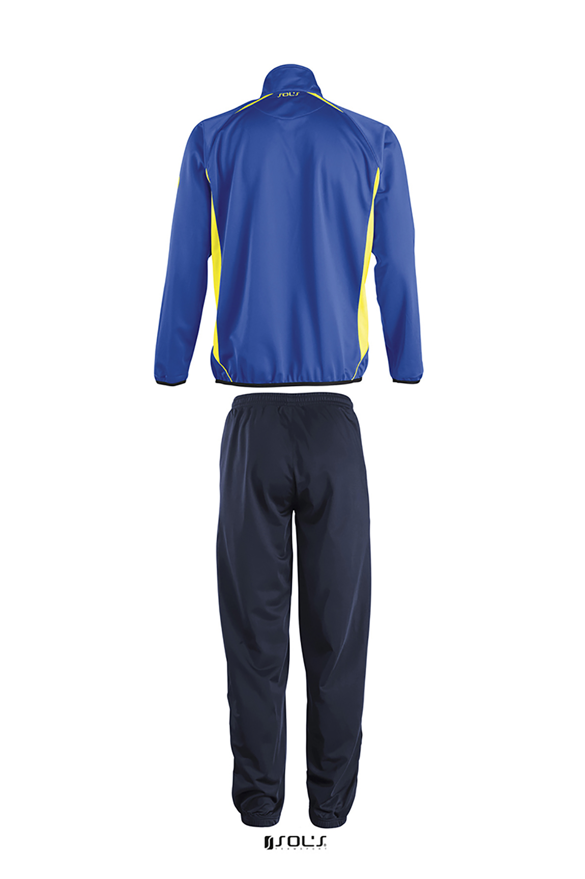 Η φόρμα αποτελείται από ζακέτα με κλείσιμο φερμουάρ και ελαστικό ρέλι στις μανσέτες και τη μέση, διαθέτοντας 2 τσέπες με φερμουάρ. Τα πλαϊνά και τα μανίκια περιλαμβάνουν δίχτυ για καλύτερη κυκλοφορία του αέρα. Το παντελόνι έχει ελαστική μέση με κορδονάκι και 2 τσέπες με φερμουάρ, ενώ διαθέτει λάστιχο στους αστραγάλους.