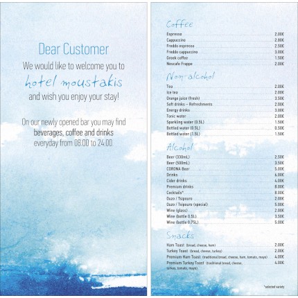 Ο κατάλογος cafe μας είναι σχεδιασμένος με ιδιαίτερη προσοχή στη λεπτομέρεια, δημιουργώντας μια ελκυστική και φιλόξενη εμπειρία για τους πελάτες σας. Η διάταξή του είναι καλά οργανωμένη, επιτρέποντας στους επισκέπτες να περιηγηθούν εύκολα μέσα σε αυτόν. Χρησιμοποιούμε ζωντανά χρώματα και προσεγμένα γραφικά, αναδεικνύοντας τα πιάτα και τα ροφήματα που προσφέρετε, κάνοντάς τα να φαίνονται ακόμα πιο δελεαστικά.
