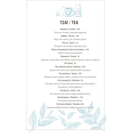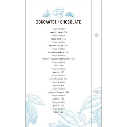 Ο κατάλογος cafe τυπώνεται σε ανθεκτικό χαρτί με δυνατότητα πλαστικοποίησης, διασφαλίζοντας τη μακροχρόνια χρήση ακόμα και σε πολυσύχναστα καταστήματα. Η εκτύπωση υψηλής ποιότητας εγγυάται ότι κάθε λεπτομέρεια είναι καθαρή και ευανάγνωστη.