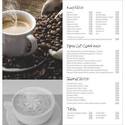 Ο κατάλογος του café σας είναι η πρώτη επαφή του πελάτη με την επιχείρηση σας. Αποτελεί ένα εργαλείο για τη δουλειά σας και είναι σημαντικό να δοθεί μεγάλη προσοχή στο σχεδιασμό και την εκτύπωση του κατάλογου café.