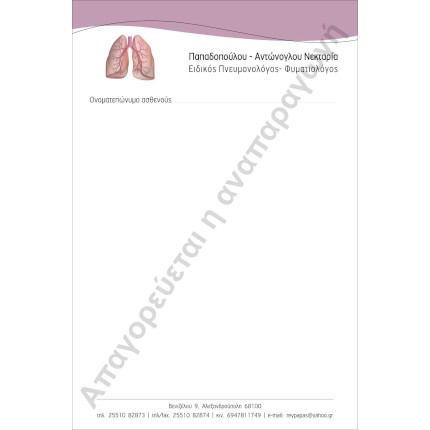 Επιπλέον, τα συνταγολόγια μας μπορούν να προσαρμοστούν με το λογότυπο του ιατρείου ή του γιατρού, προσφέροντας μια προσωπική και επαγγελματική πινελιά. Αυτή η προσαρμογή ενισχύει την αναγνωσιμότητα και τη φήμη του ιατρείου σας.