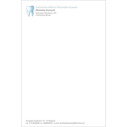 Διαθέτουμε επίσης επιλογές προσαρμογής, όπως η ένταξη του λογότυπου του ιατρείου, χρώματα που ταιριάζουν με την ταυτότητα της κλινικής, και στοιχεία επικοινωνίας, προσφέροντας έτσι μια προσωπική και επαγγελματική πινελιά.