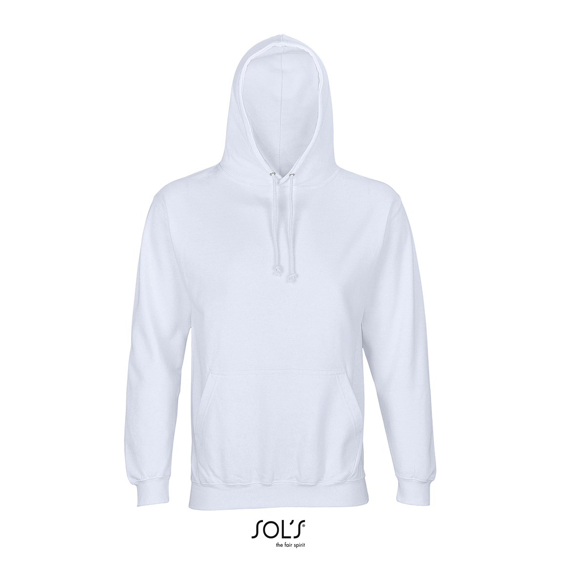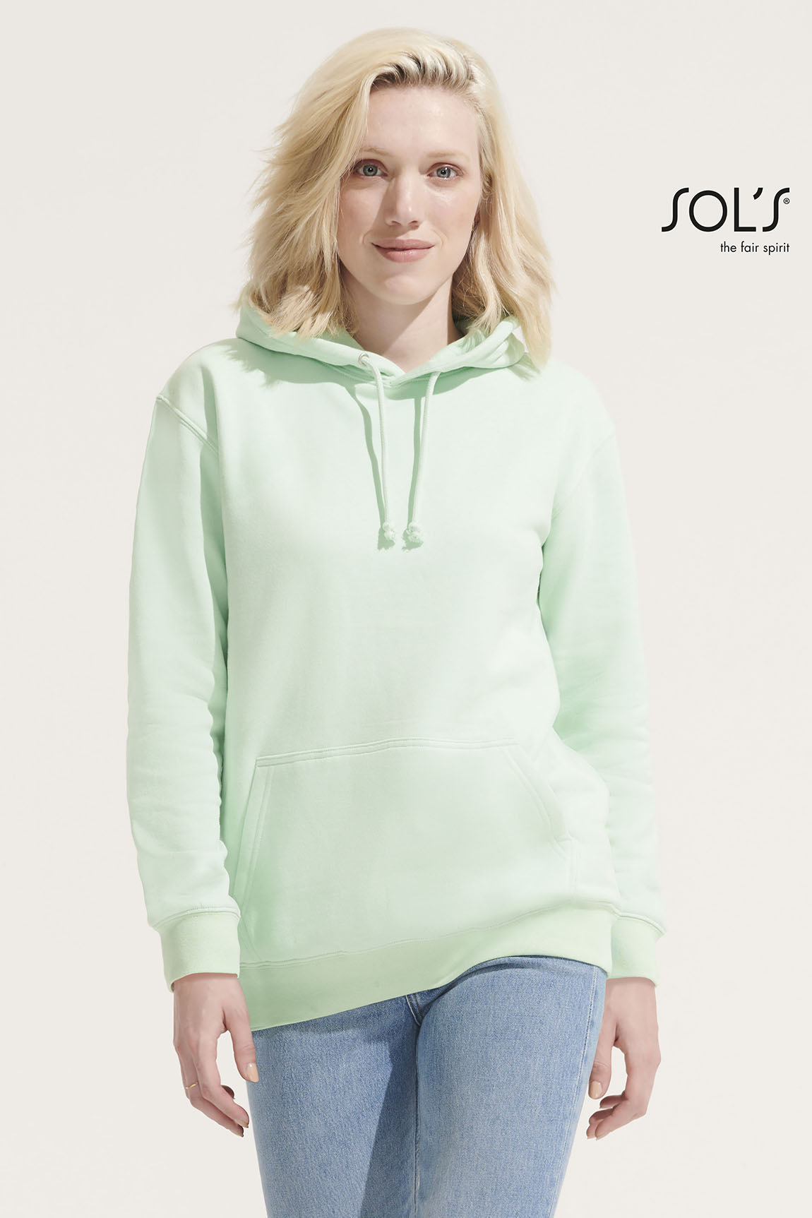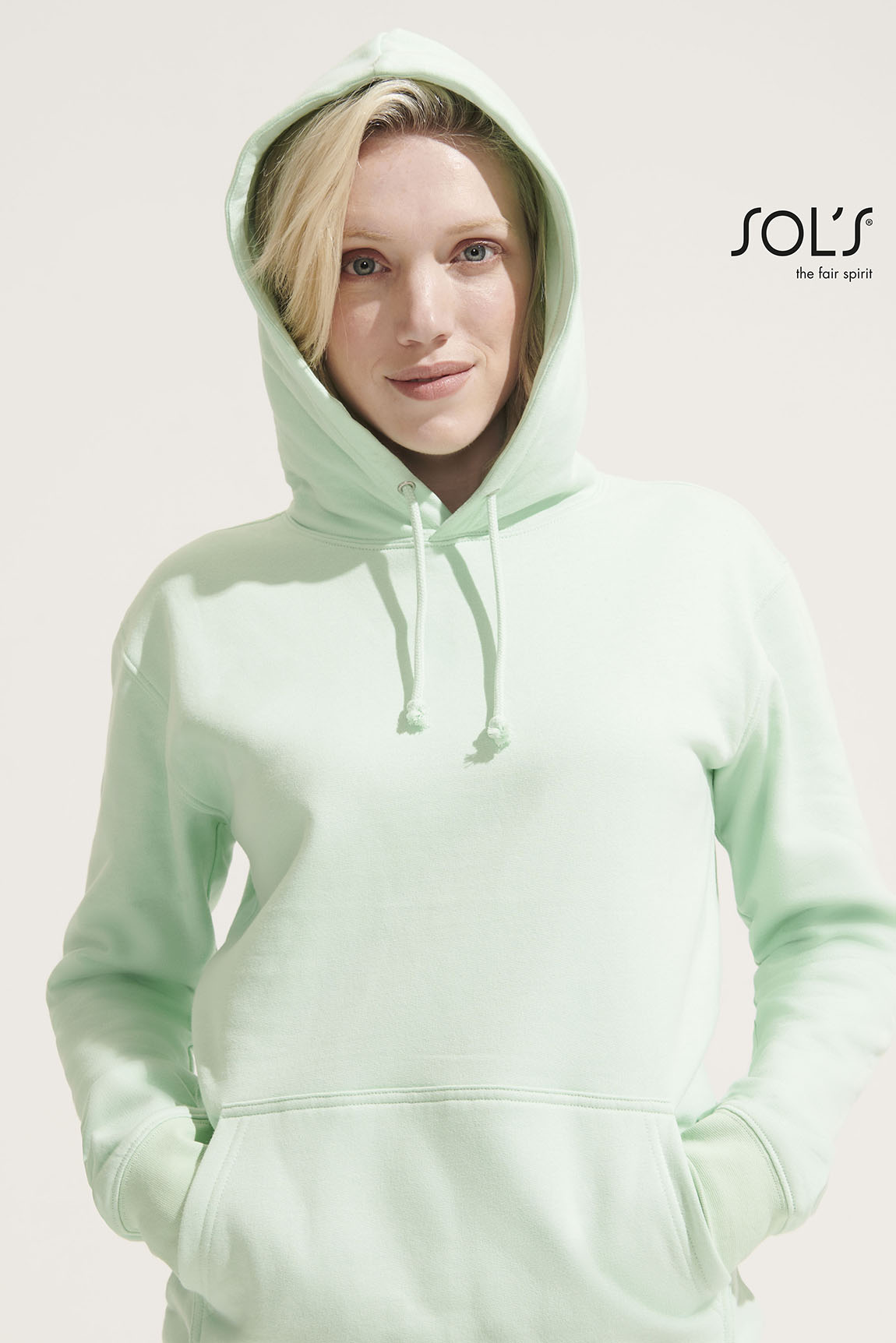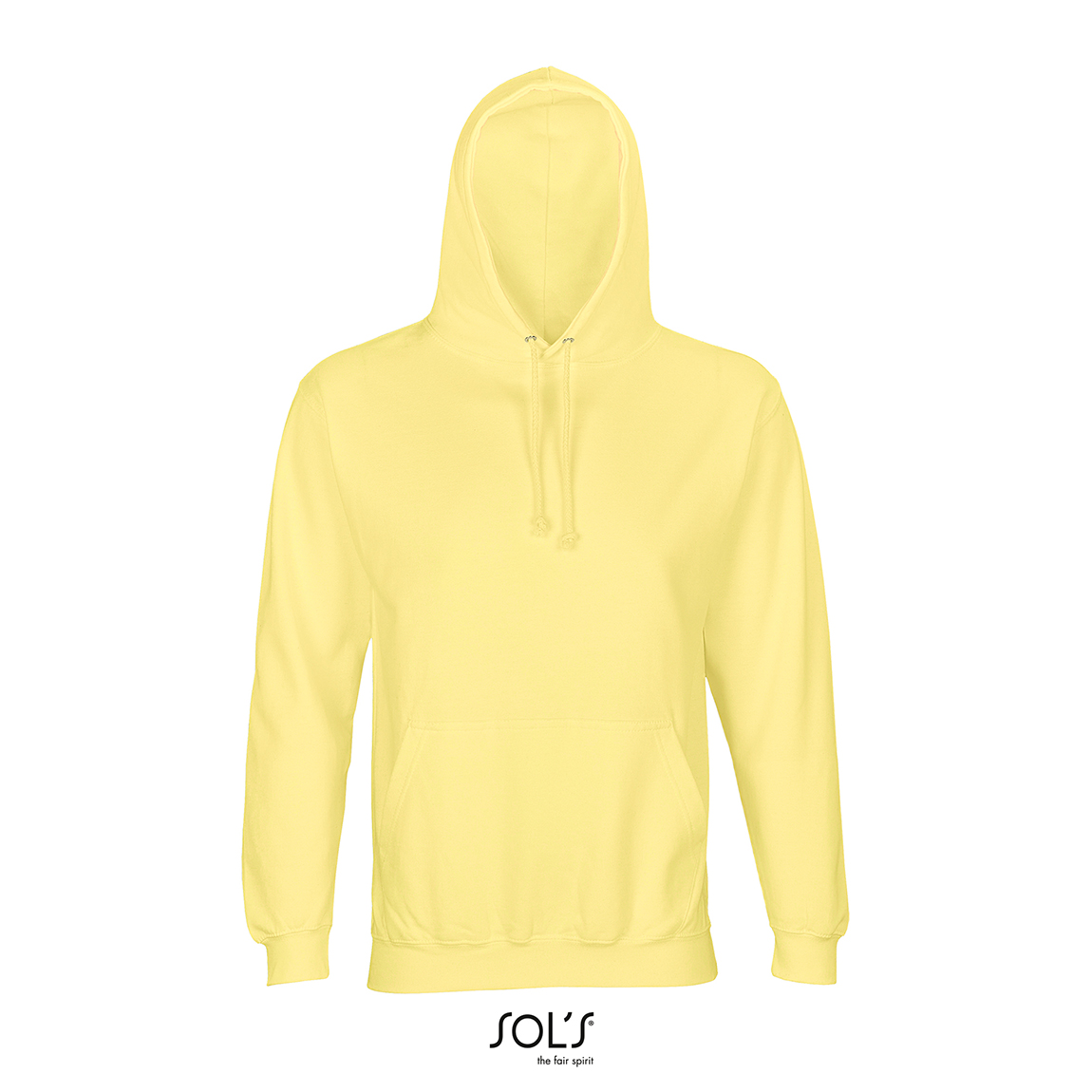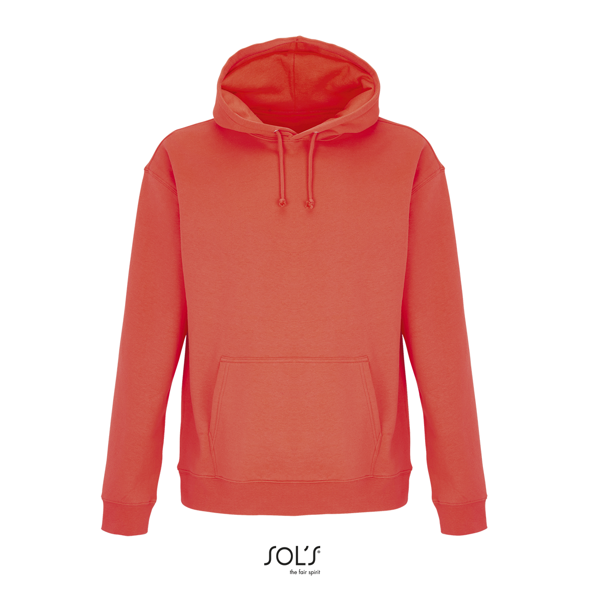 Σχέδιο και Χαρακτηριστικά: Πρόκειται για μια άνετη unisex μπλούζα φούτερ που διαθέτει πρακτικές λεπτομέρειες όπως πλαϊνές ραφές και μανικοκόλληση. Έχει ελαστικό ριπ 1x1 στις μανσέτες, το γιακά και τη μέση, καθώς και τσέπη καγκουρό για την αποθήκευση μικροαντικειμένων. Η επενδεδυμένη κουκούλα διαθέτει κορδόνι στον ίδιο τόνο με μεταλλικές οπές, προσφέροντας τόσο στυλ όσο και λειτουργικότητα.
