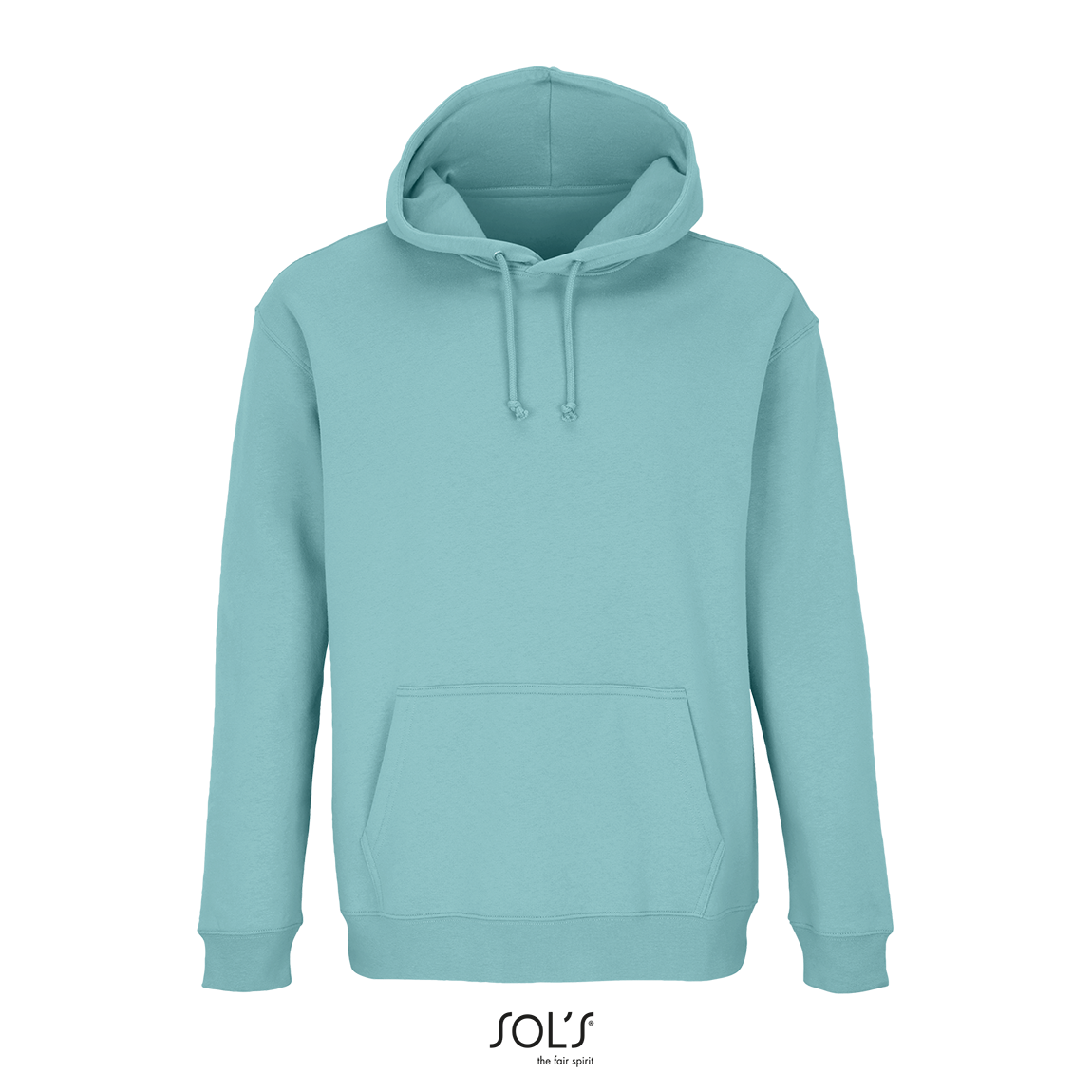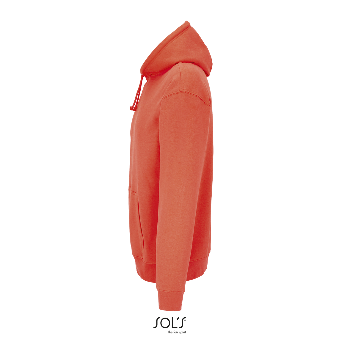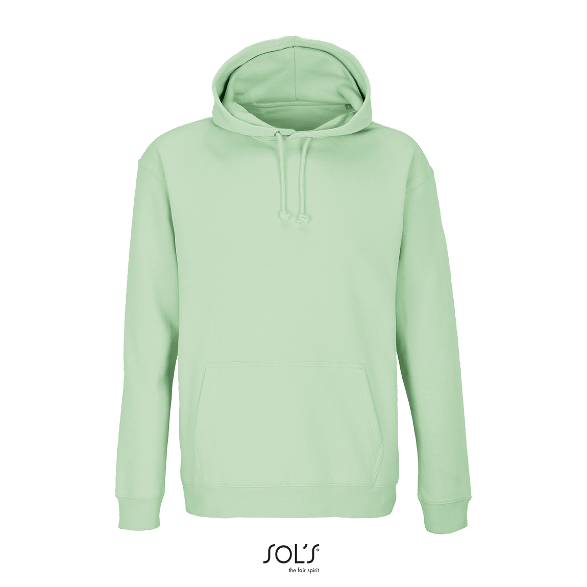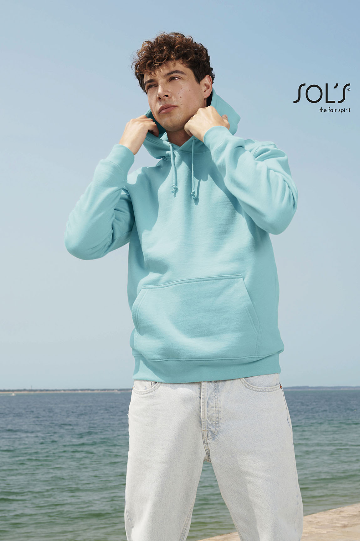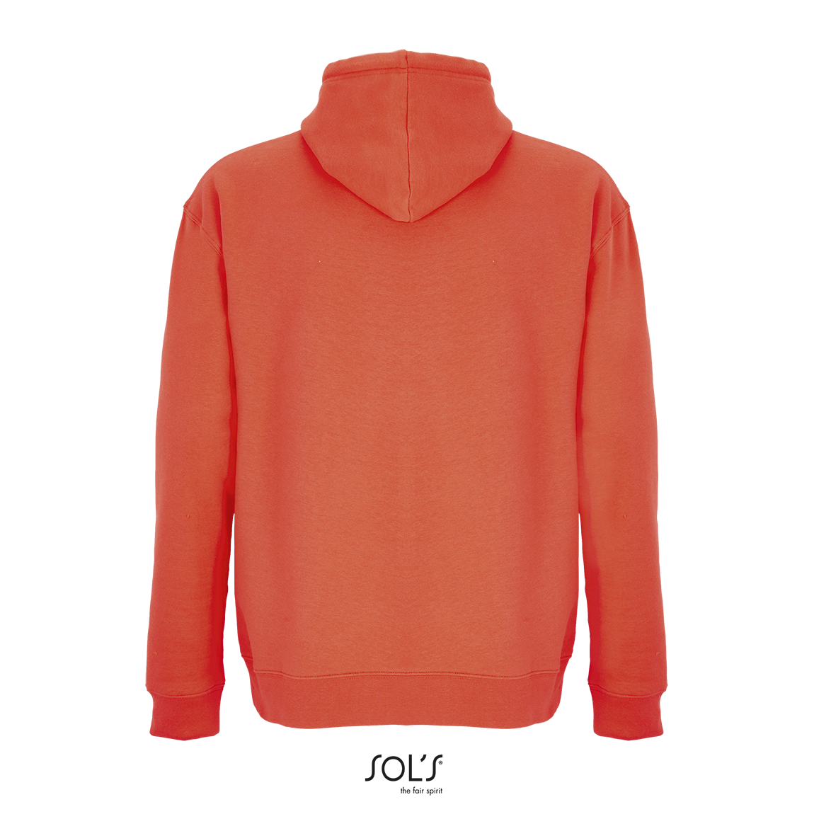 Σχέδιο και Χαρακτηριστικά: Πρόκειται για μια άνετη unisex μπλούζα φούτερ που διαθέτει πρακτικές λεπτομέρειες όπως πλαϊνές ραφές και μανικοκόλληση. Έχει ελαστικό ριπ 1x1 στις μανσέτες, το γιακά και τη μέση, καθώς και τσέπη καγκουρό για την αποθήκευση μικροαντικειμένων. Η επενδεδυμένη κουκούλα διαθέτει κορδόνι στον ίδιο τόνο με μεταλλικές οπές, προσφέροντας τόσο στυλ όσο και λειτουργικότητα.