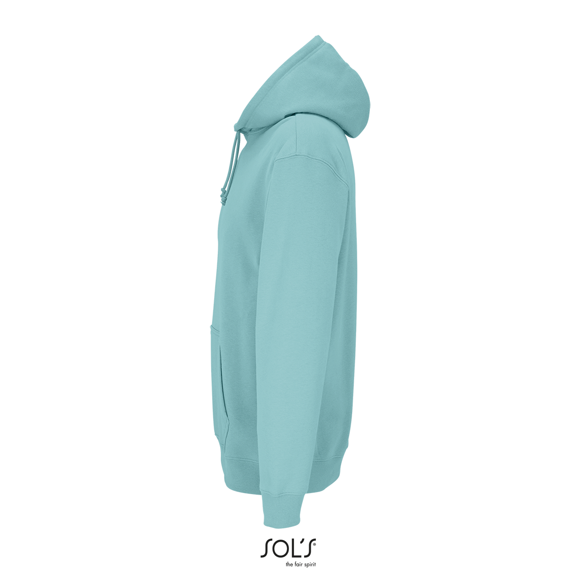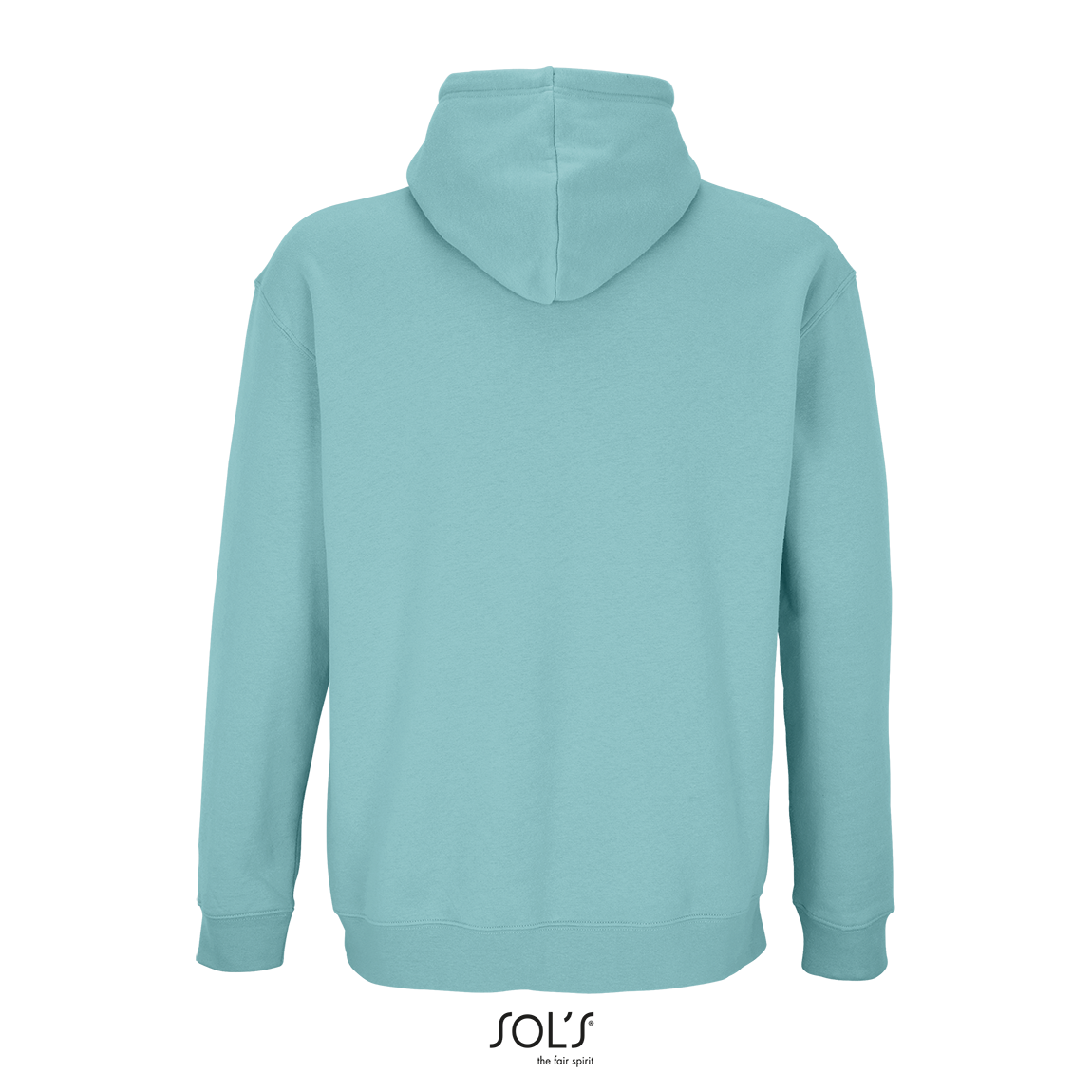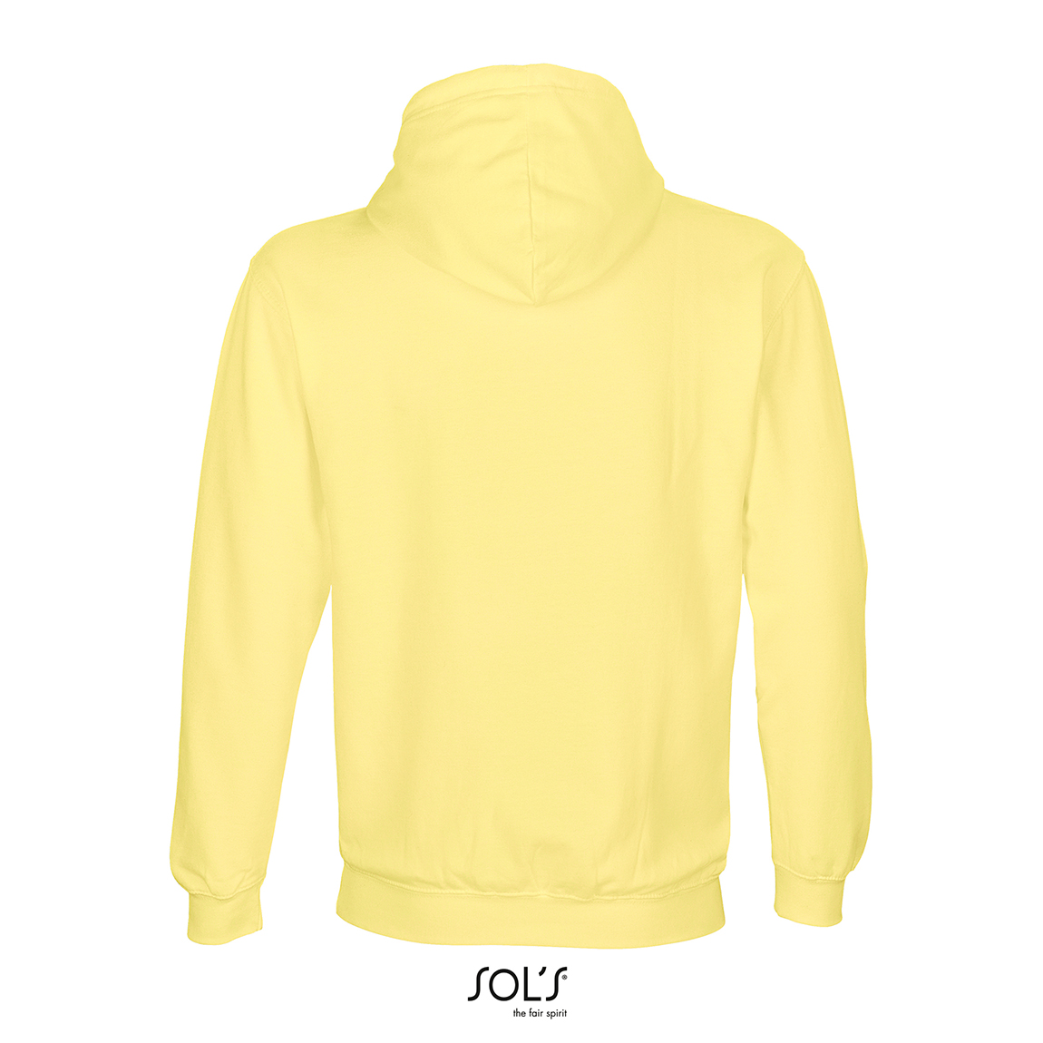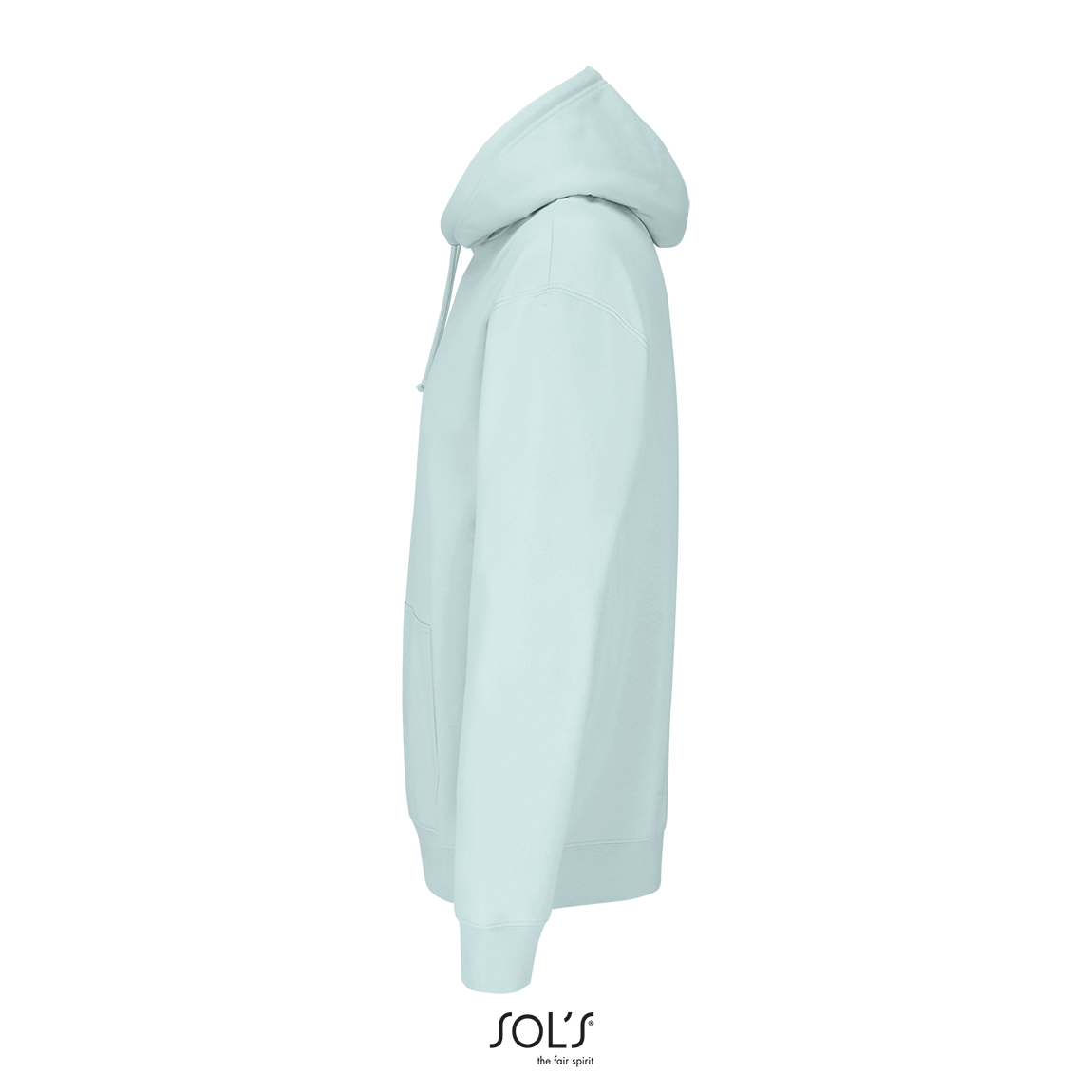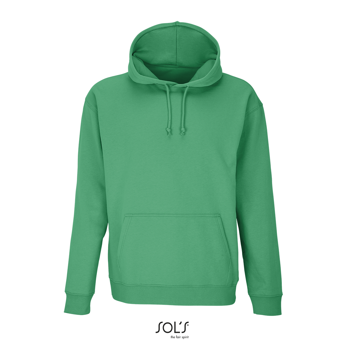 Σχέδιο και Χαρακτηριστικά: Πρόκειται για μια άνετη unisex μπλούζα φούτερ που διαθέτει πρακτικές λεπτομέρειες όπως πλαϊνές ραφές και μανικοκόλληση. Έχει ελαστικό ριπ 1x1 στις μανσέτες, το γιακά και τη μέση, καθώς και τσέπη καγκουρό για την αποθήκευση μικροαντικειμένων. Η επενδεδυμένη κουκούλα διαθέτει κορδόνι στον ίδιο τόνο με μεταλλικές οπές, προσφέροντας τόσο στυλ όσο και λειτουργικότητα.