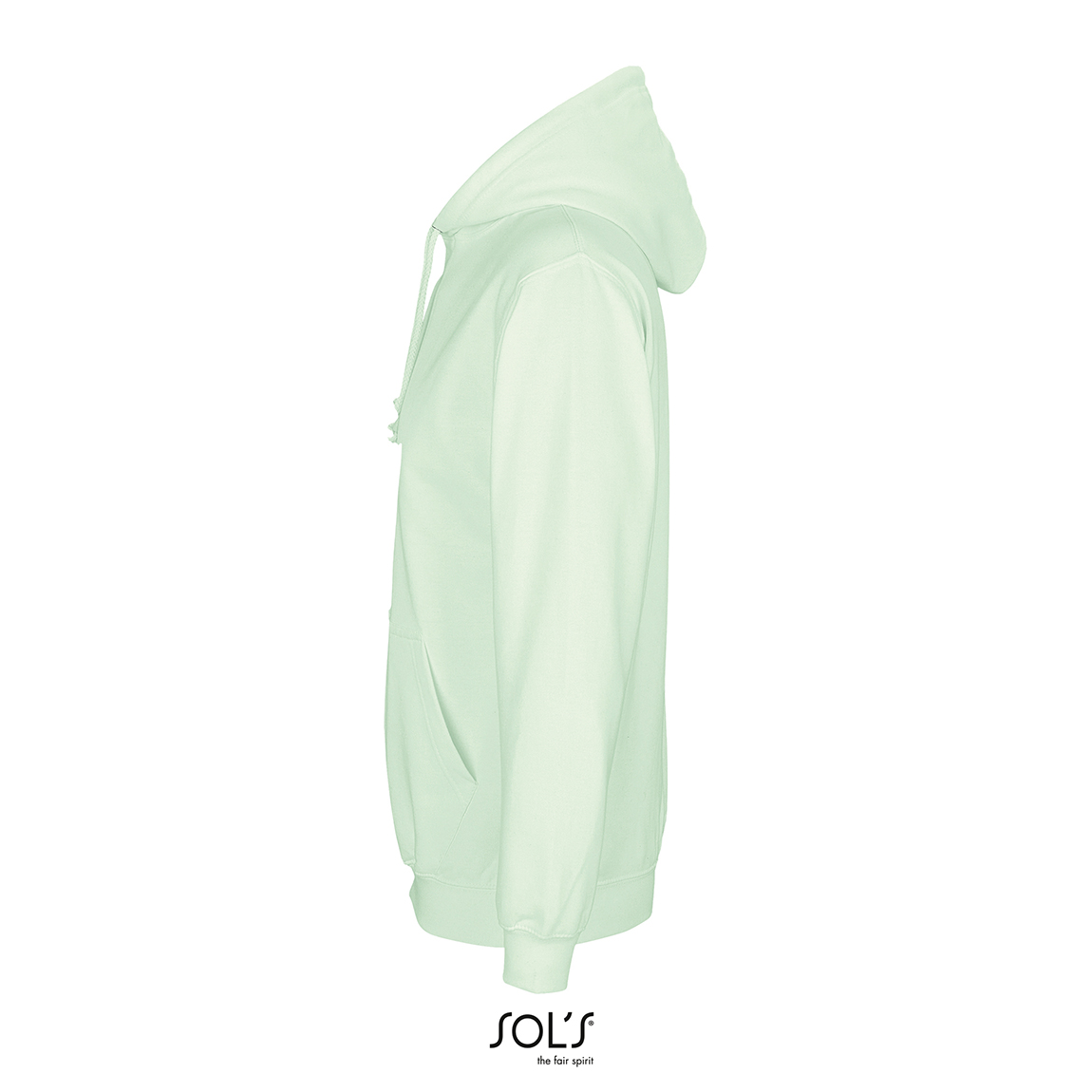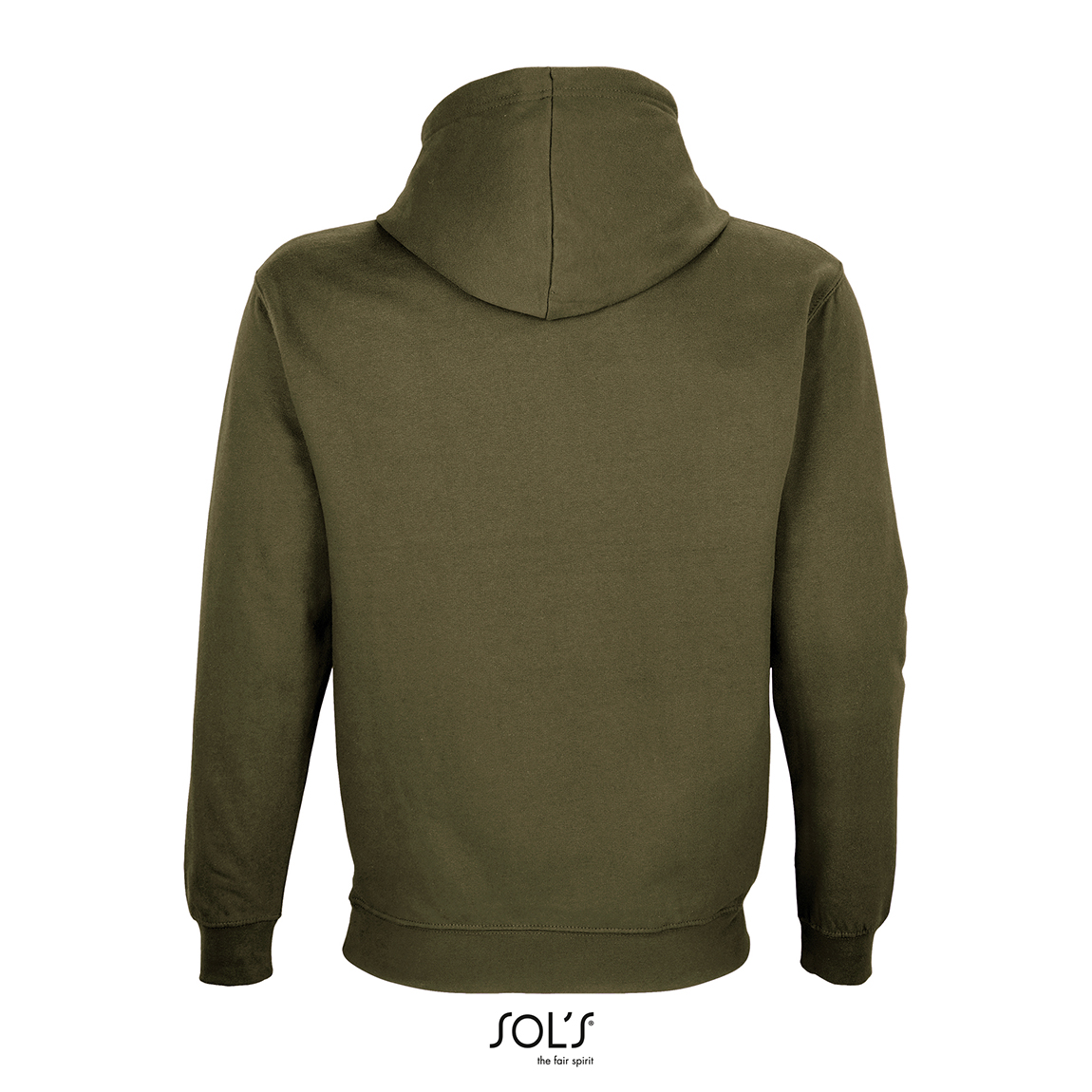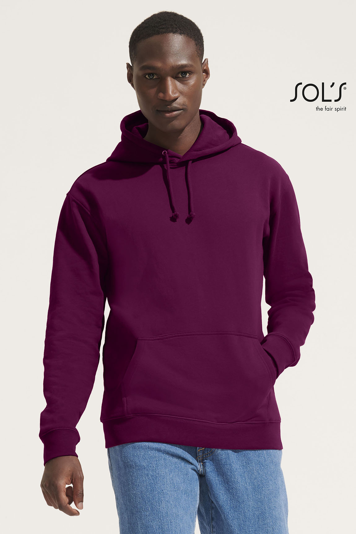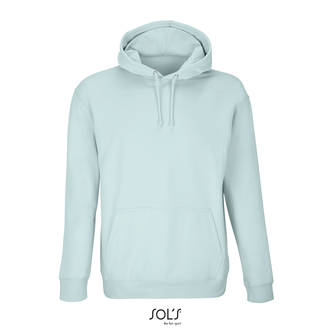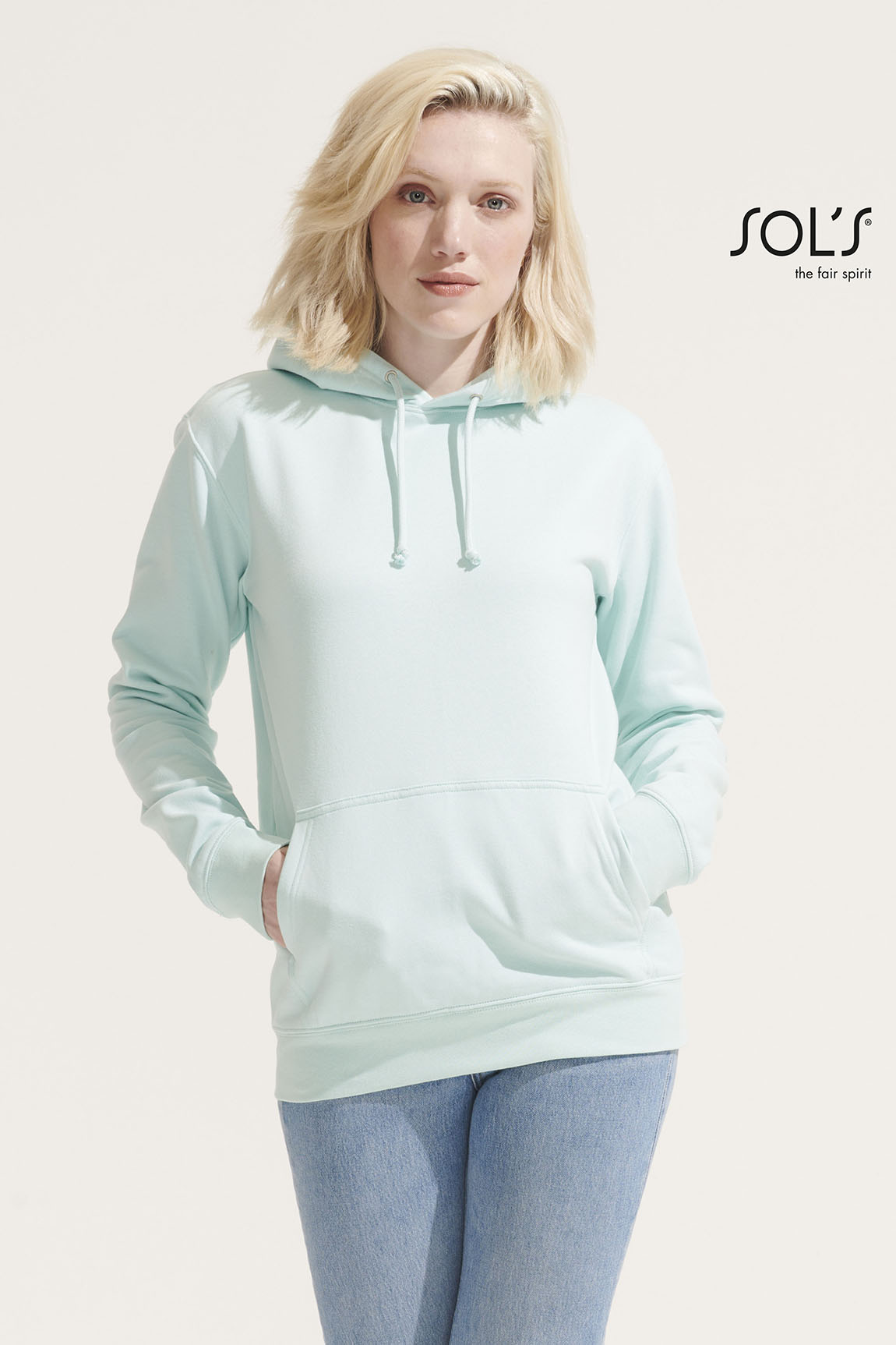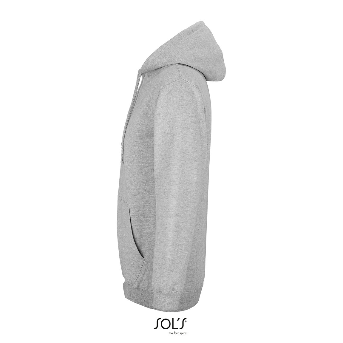 Σχέδιο και Χαρακτηριστικά: Πρόκειται για μια άνετη unisex μπλούζα φούτερ που διαθέτει πρακτικές λεπτομέρειες όπως πλαϊνές ραφές και μανικοκόλληση. Έχει ελαστικό ριπ 1x1 στις μανσέτες, το γιακά και τη μέση, καθώς και τσέπη καγκουρό για την αποθήκευση μικροαντικειμένων. Η επενδεδυμένη κουκούλα διαθέτει κορδόνι στον ίδιο τόνο με μεταλλικές οπές, προσφέροντας τόσο στυλ όσο και λειτουργικότητα.