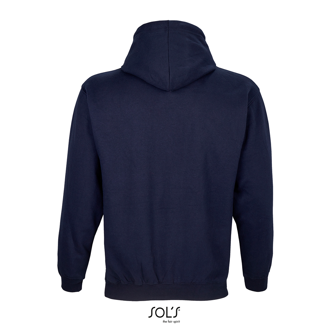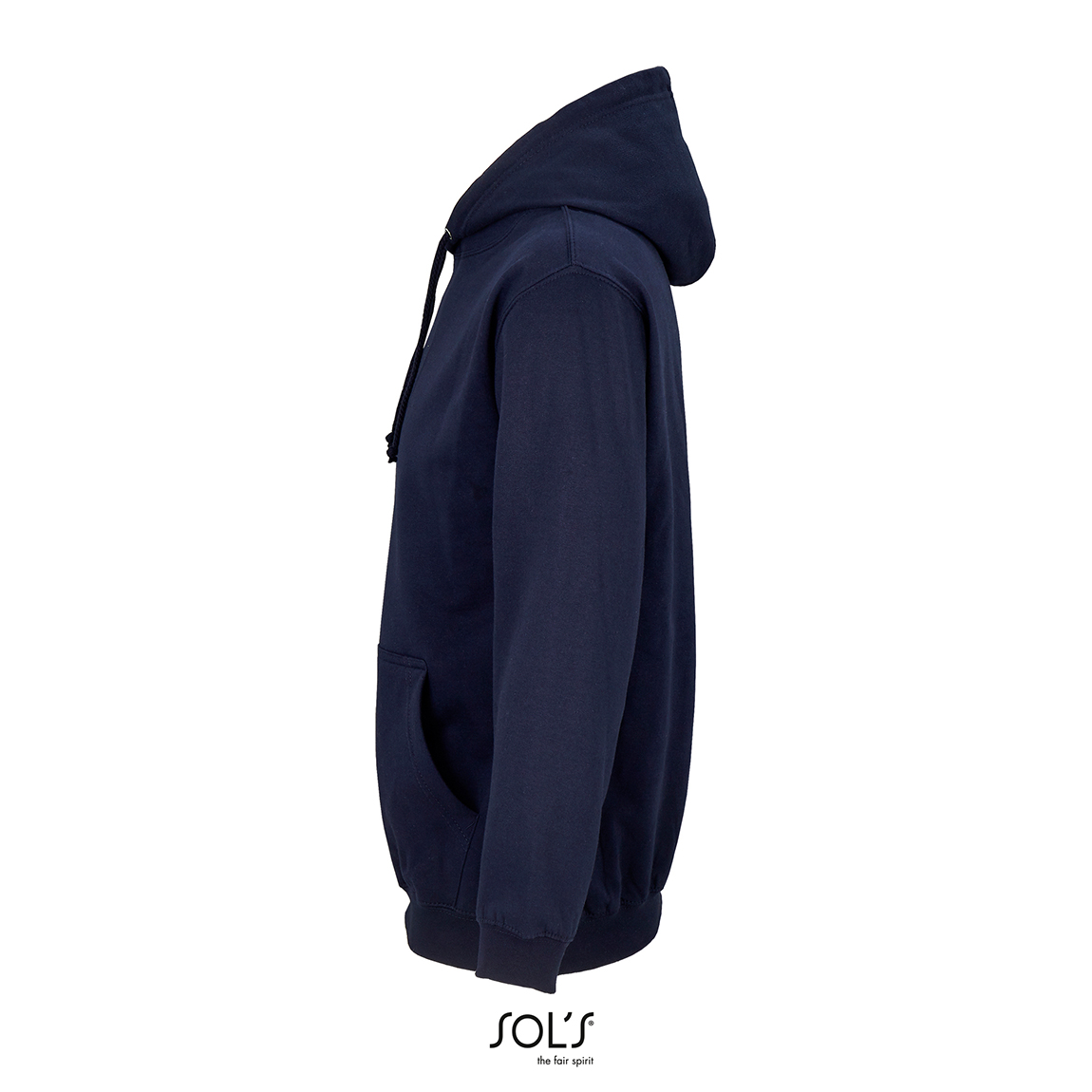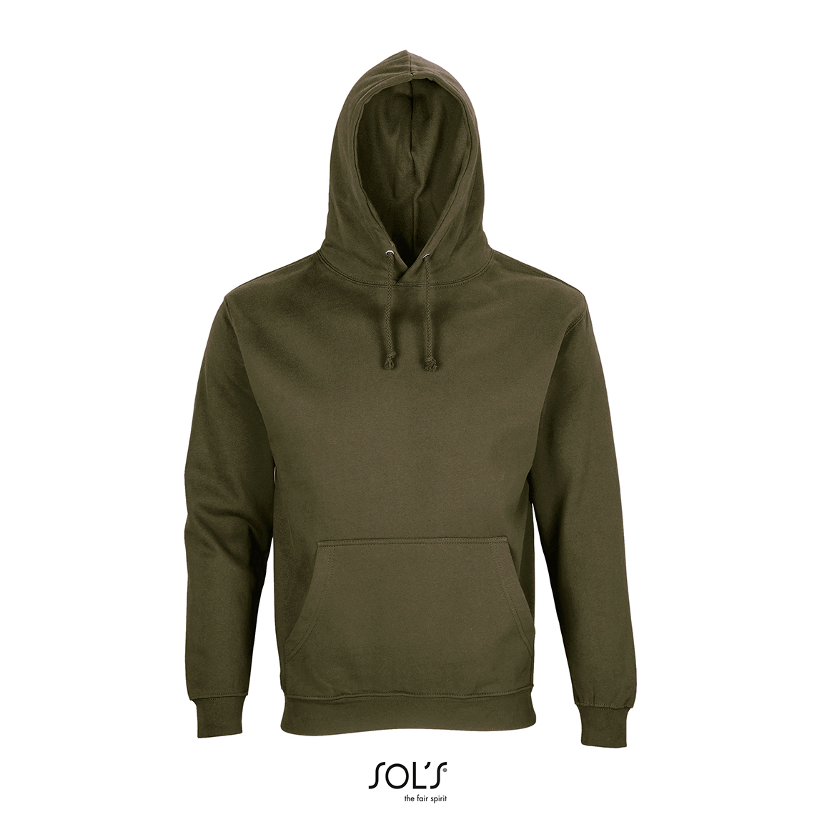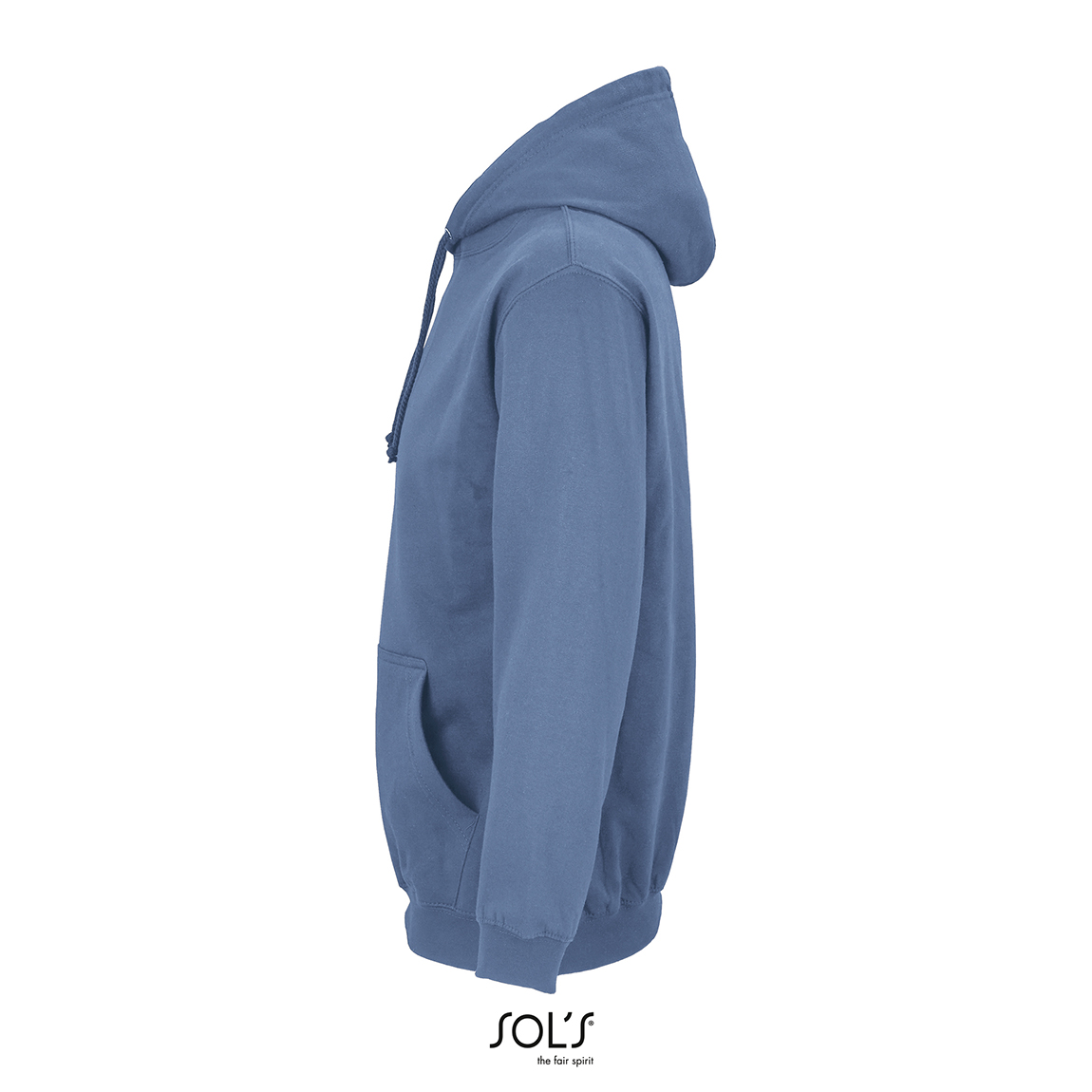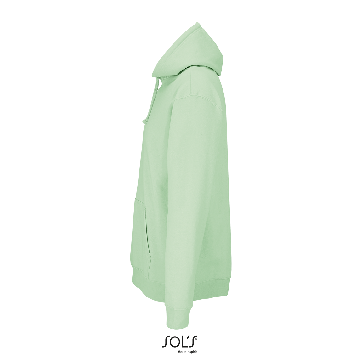 Σχέδιο και Χαρακτηριστικά: Πρόκειται για μια άνετη unisex μπλούζα φούτερ που διαθέτει πρακτικές λεπτομέρειες όπως πλαϊνές ραφές και μανικοκόλληση. Έχει ελαστικό ριπ 1x1 στις μανσέτες, το γιακά και τη μέση, καθώς και τσέπη καγκουρό για την αποθήκευση μικροαντικειμένων. Η επενδεδυμένη κουκούλα διαθέτει κορδόνι στον ίδιο τόνο με μεταλλικές οπές, προσφέροντας τόσο στυλ όσο και λειτουργικότητα.