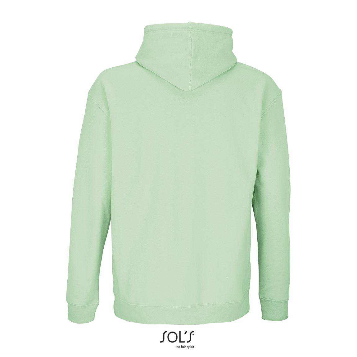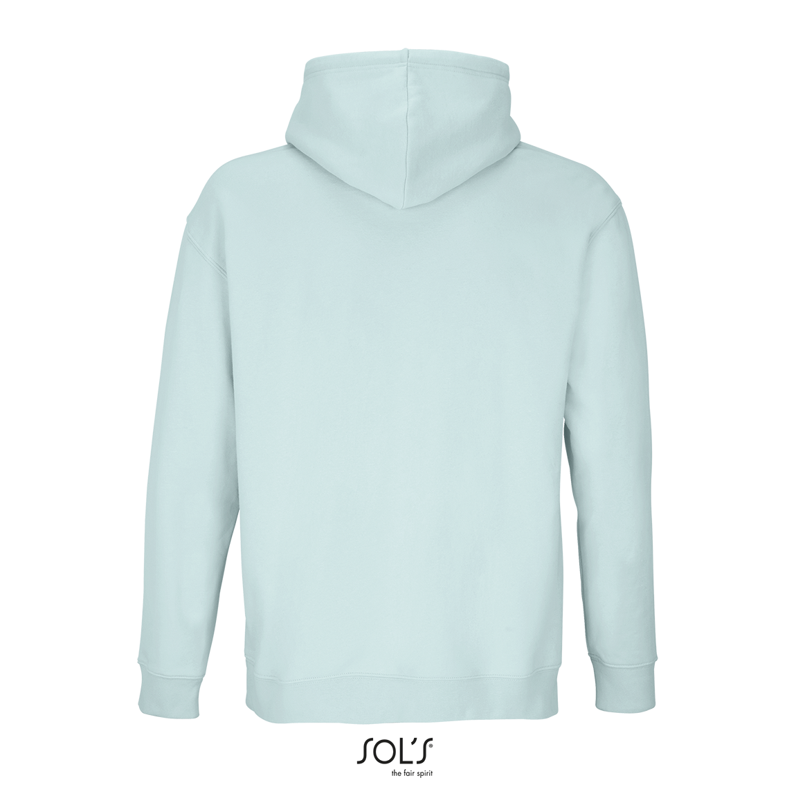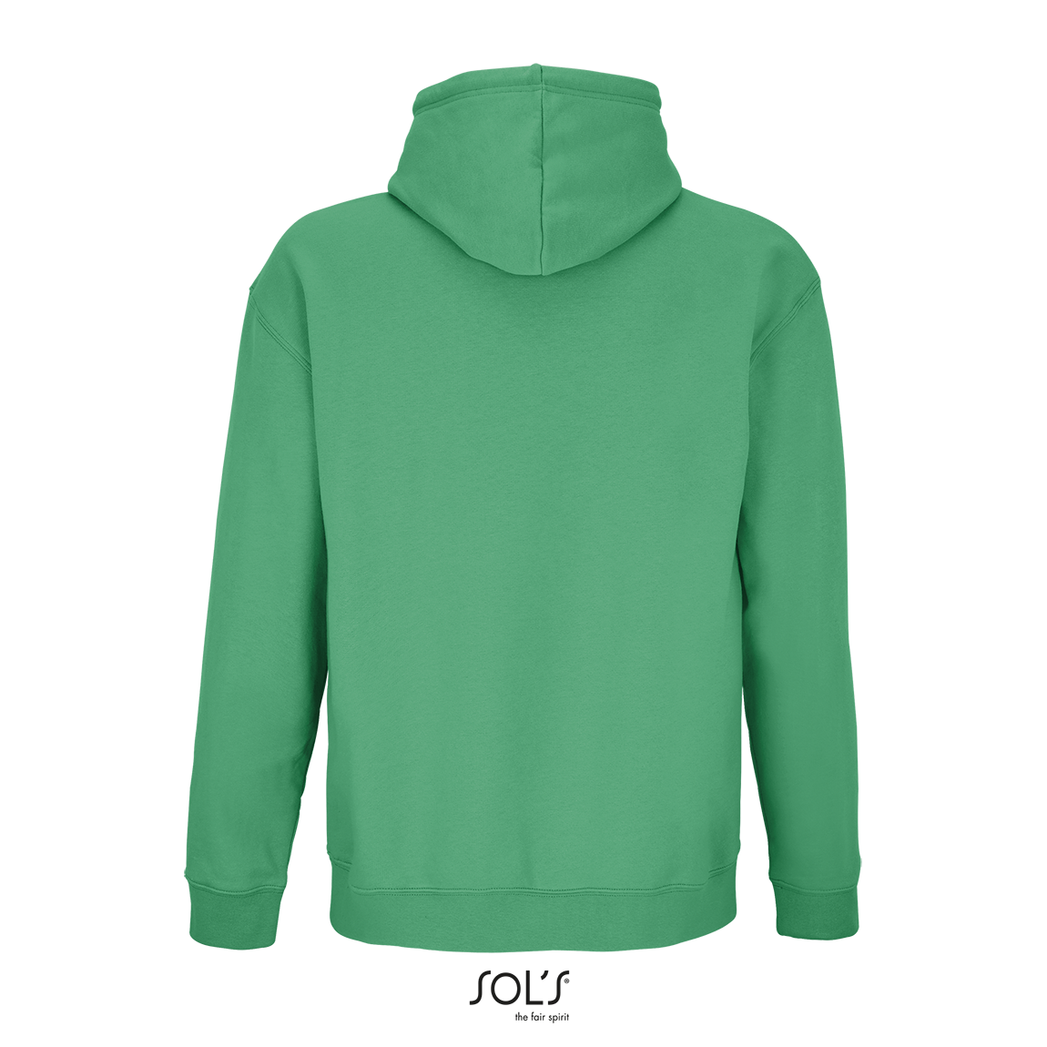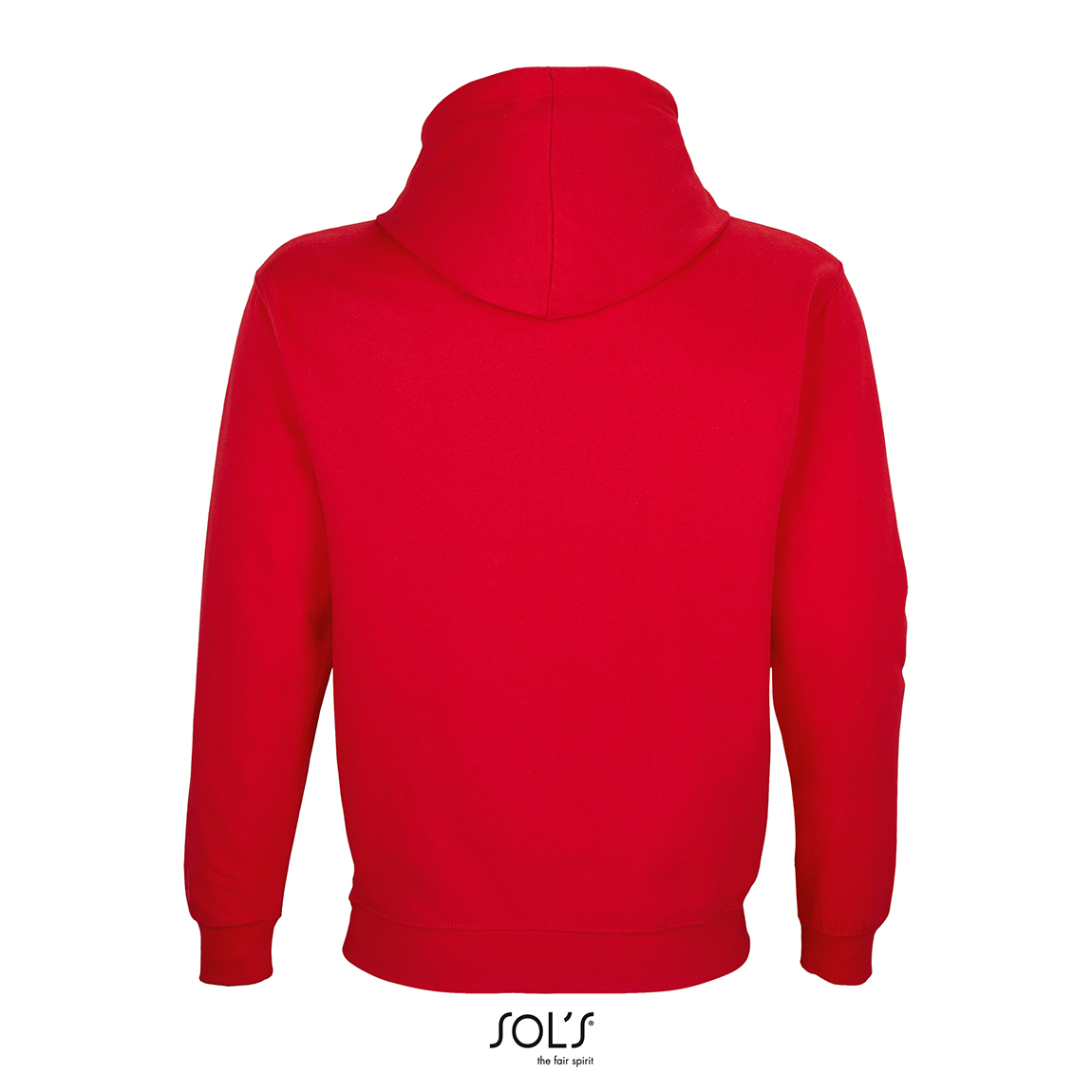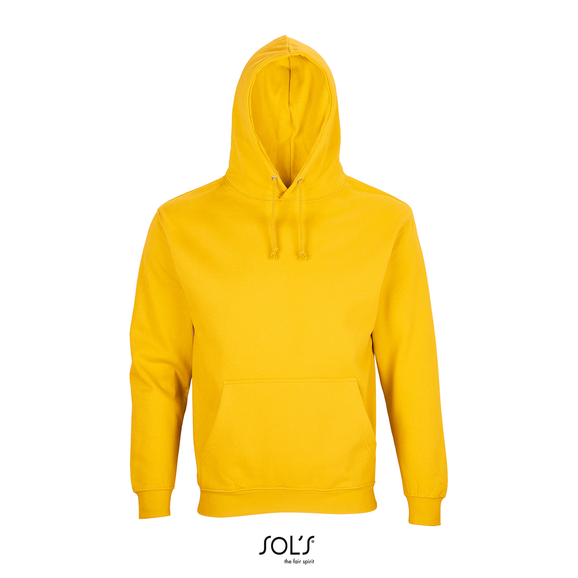 Σχέδιο και Χαρακτηριστικά: Πρόκειται για μια άνετη unisex μπλούζα φούτερ που διαθέτει πρακτικές λεπτομέρειες όπως πλαϊνές ραφές και μανικοκόλληση. Έχει ελαστικό ριπ 1x1 στις μανσέτες, το γιακά και τη μέση, καθώς και τσέπη καγκουρό για την αποθήκευση μικροαντικειμένων. Η επενδεδυμένη κουκούλα διαθέτει κορδόνι στον ίδιο τόνο με μεταλλικές οπές, προσφέροντας τόσο στυλ όσο και λειτουργικότητα.