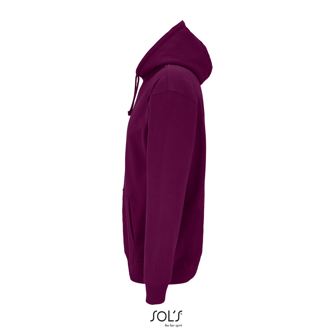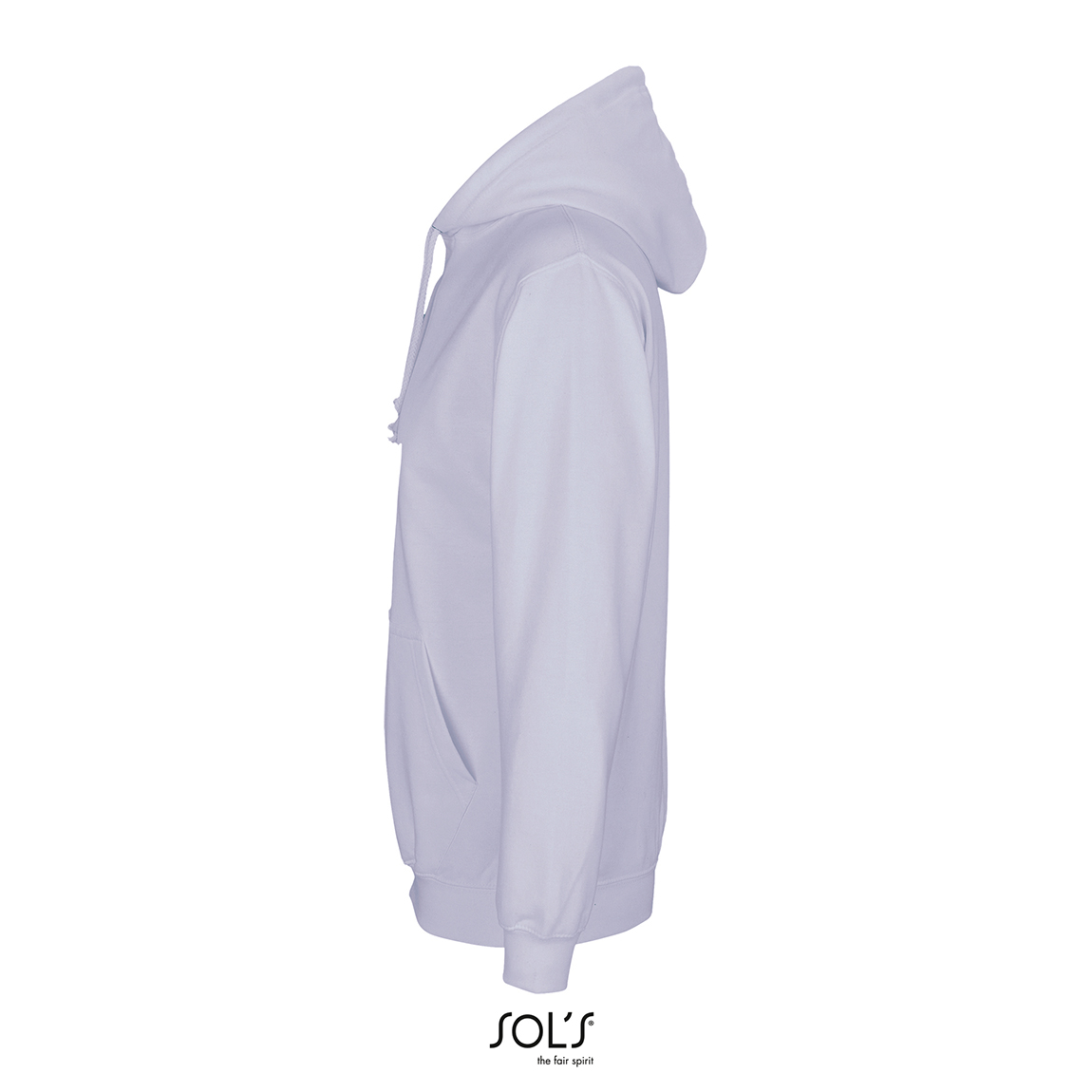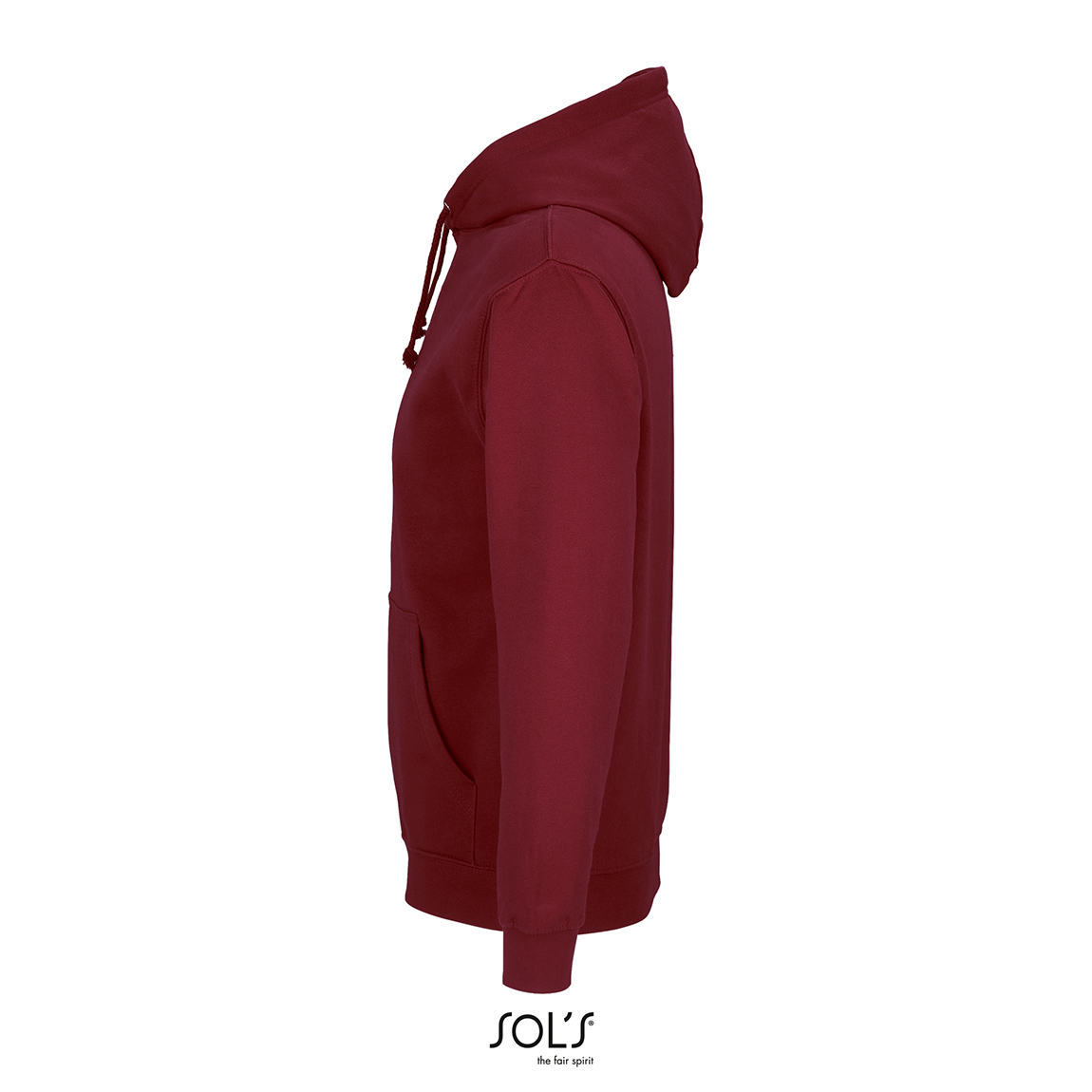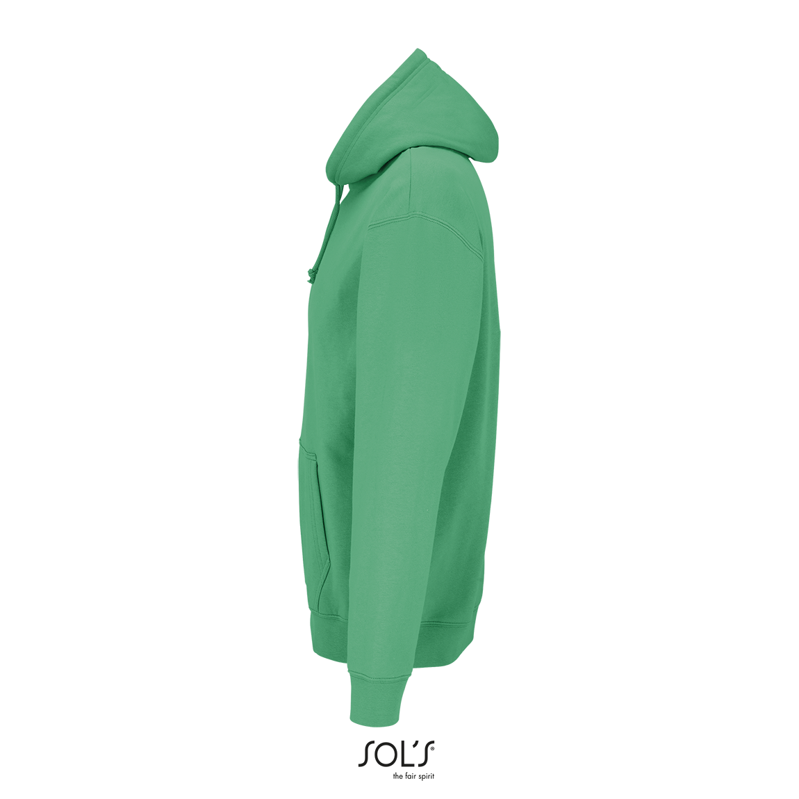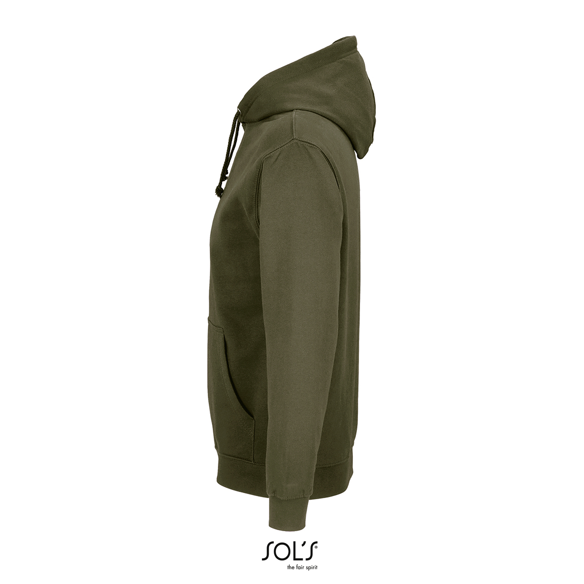 Σχέδιο και Χαρακτηριστικά: Πρόκειται για μια άνετη unisex μπλούζα φούτερ που διαθέτει πρακτικές λεπτομέρειες όπως πλαϊνές ραφές και μανικοκόλληση. Έχει ελαστικό ριπ 1x1 στις μανσέτες, το γιακά και τη μέση, καθώς και τσέπη καγκουρό για την αποθήκευση μικροαντικειμένων. Η επενδεδυμένη κουκούλα διαθέτει κορδόνι στον ίδιο τόνο με μεταλλικές οπές, προσφέροντας τόσο στυλ όσο και λειτουργικότητα.