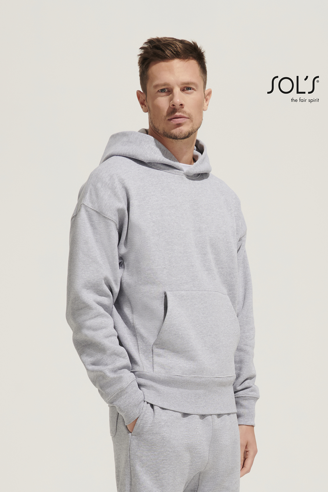 Φούτερ 450g/m² - 80% Βαμβάκι - 20% Ανακυκλωμένο Πολυέστερ. Για το Grey melange: 73% Βαμβάκι / 20% Ανακυκλωμένο βαμβάκι / 7% Βισκόζη.