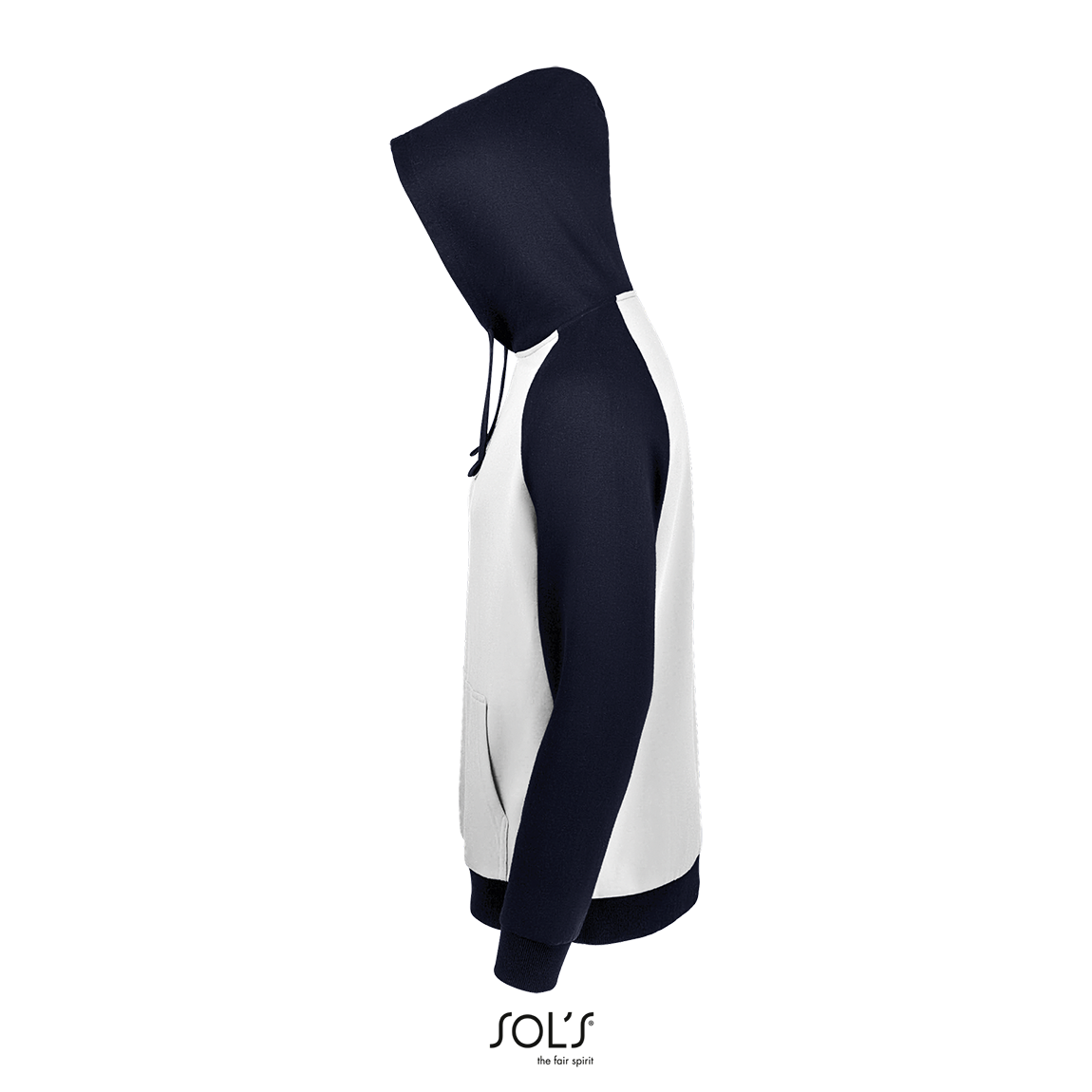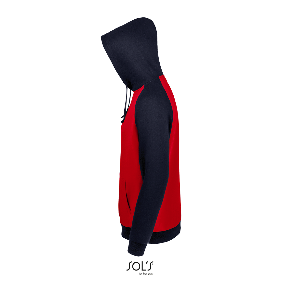 Περιγραφή: Ρεγκλάν μανίκια με τσέπη καγκουρό, πλαϊνές ραφές, ριπ στις μανσέτες και το τελείωμα, επενδεδυμένη κουκούλα με κορδόνι σύσφιξης και φακαρόλα στο λαιμό.