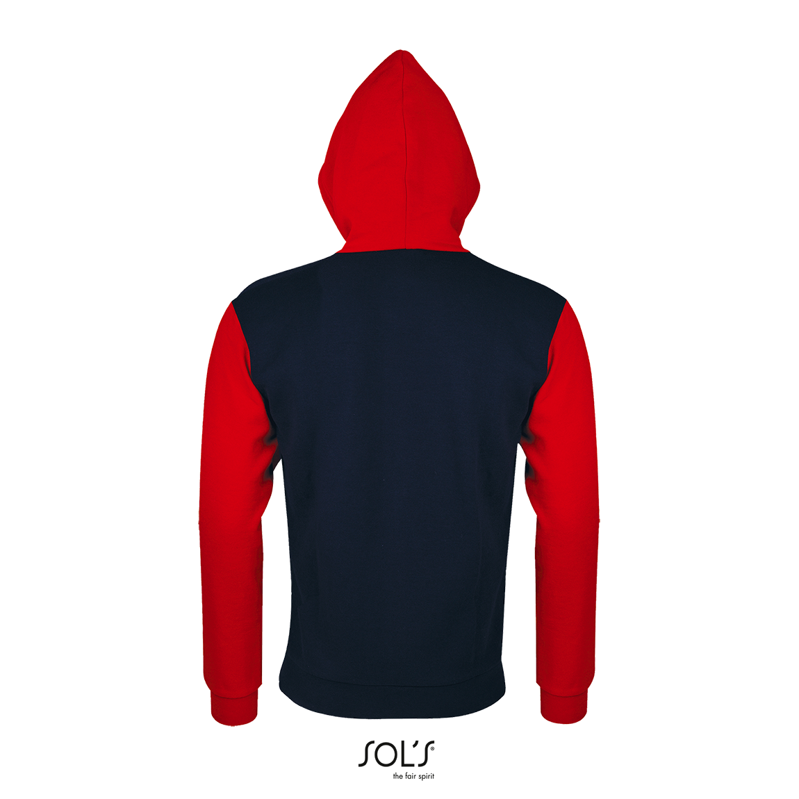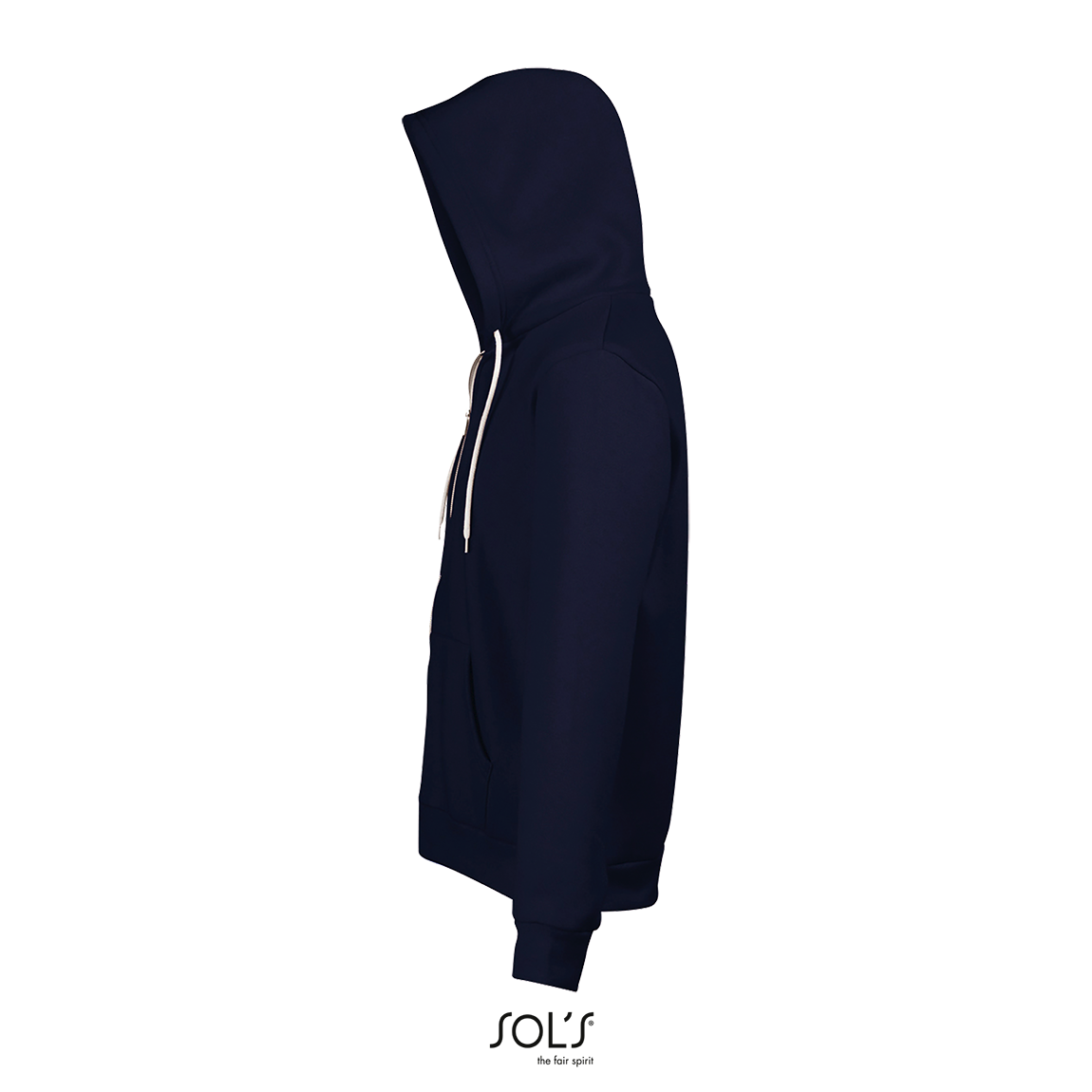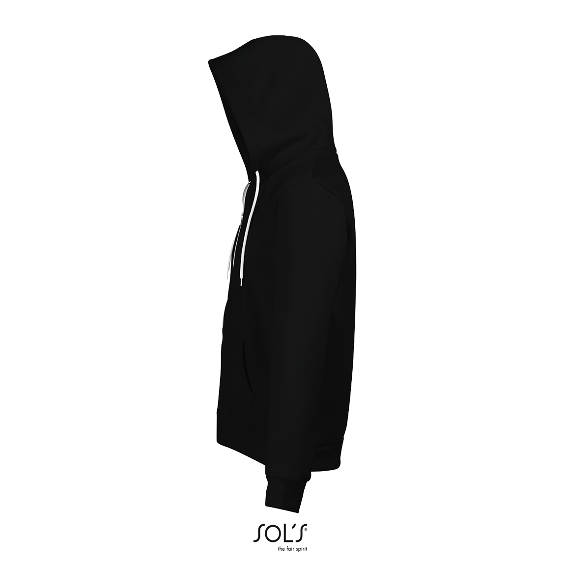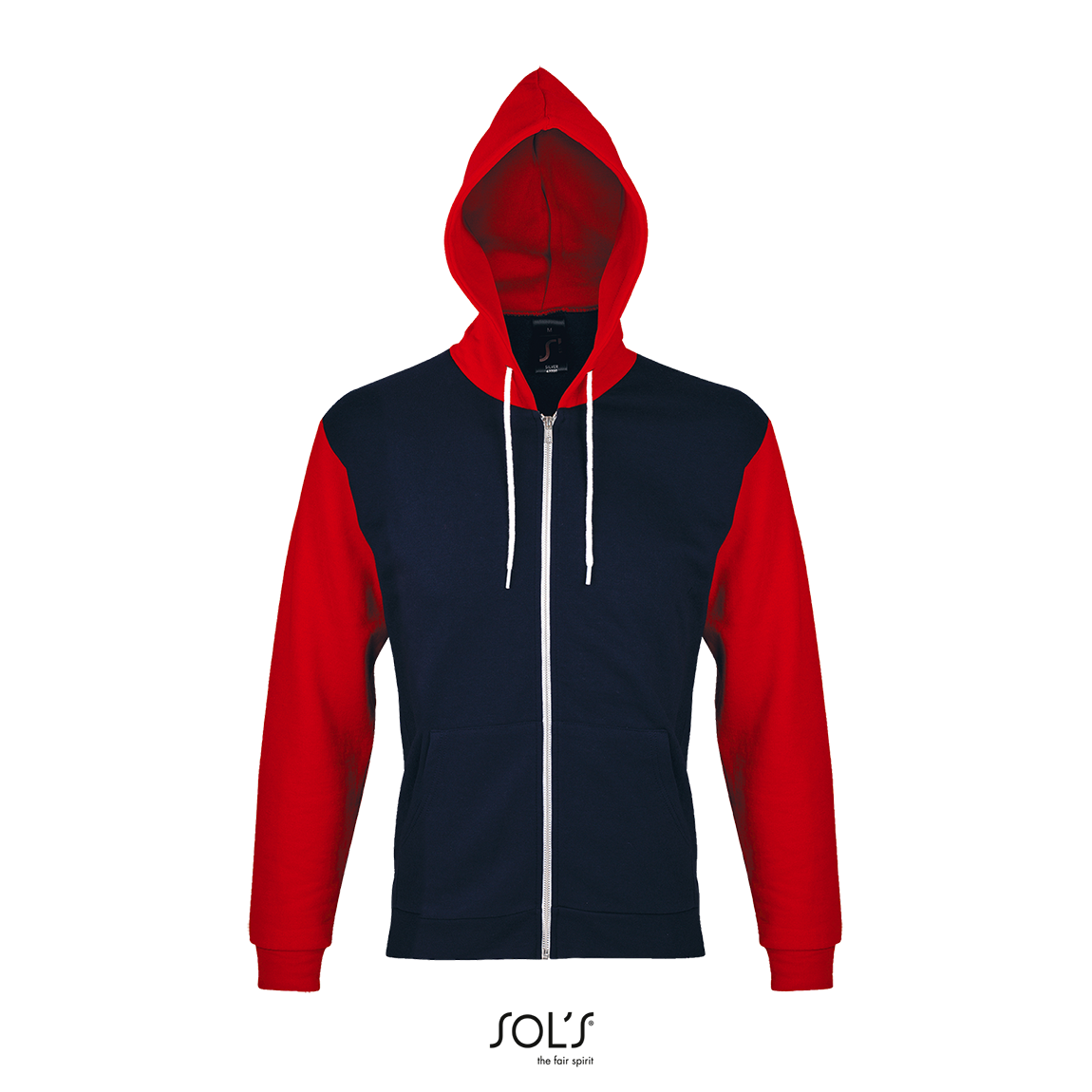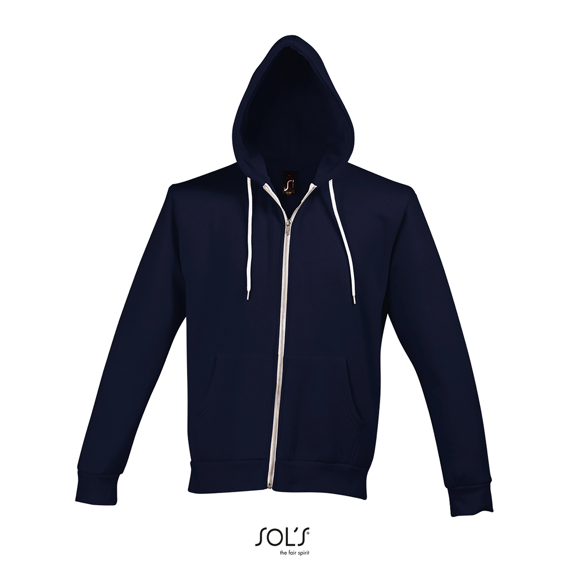 Περιγραφή: Κλείσιμο με φερμουάρ και πλαϊνές ραφές, αυτή η ζακέτα φούτερ διαθέτει μανικοκόλληση και 2 τσέπες τύπου καγκουρό. Οι μανσέτες και το τελείωμα είναι ελαστικά ριπ, ενώ η επενδεδυμένη κουκούλα με λευκά κορδόνια σε χρωματική αντίθεση προσφέρει κομψότητα. Με στενή γραμμή, είναι ιδανική για κάθε στυλ.