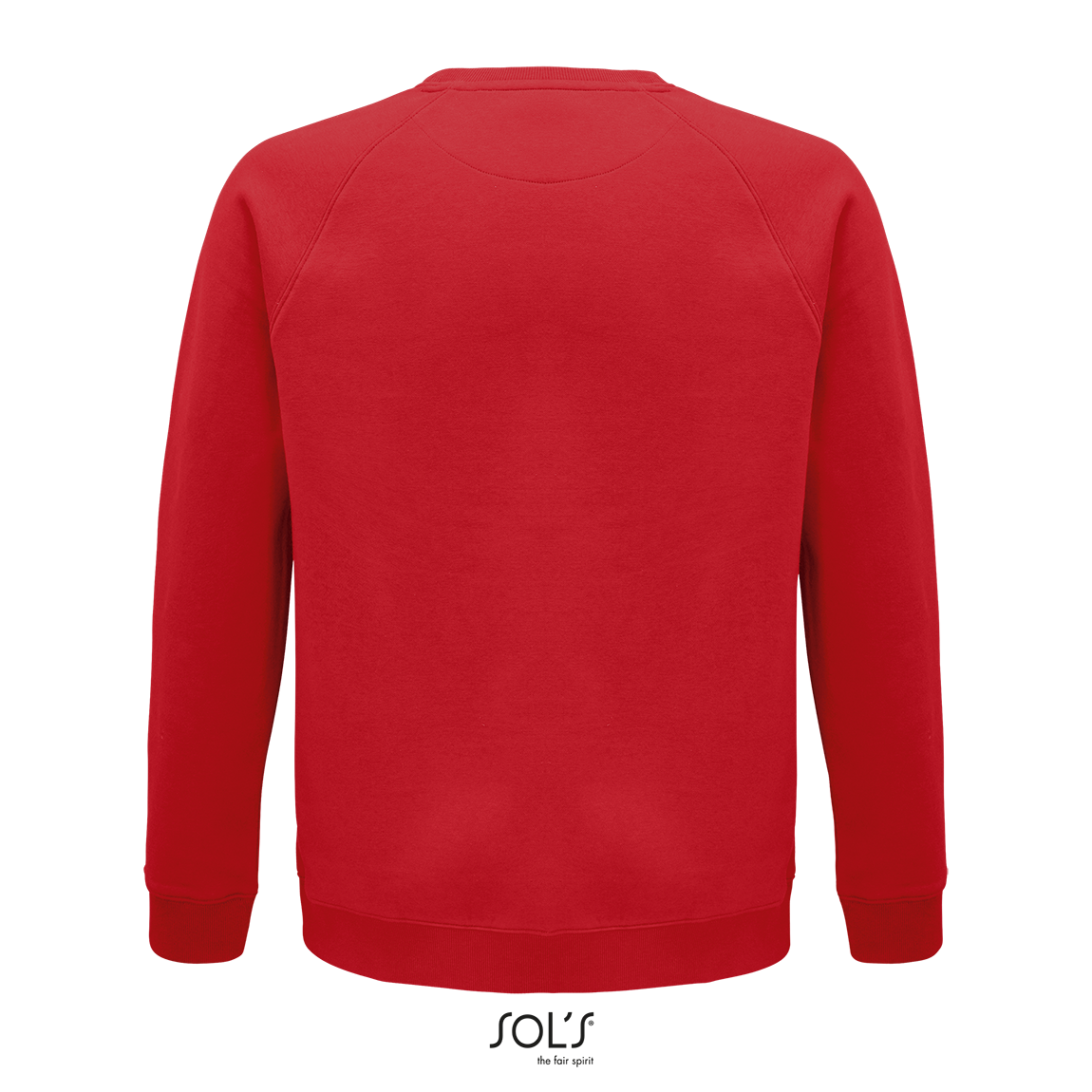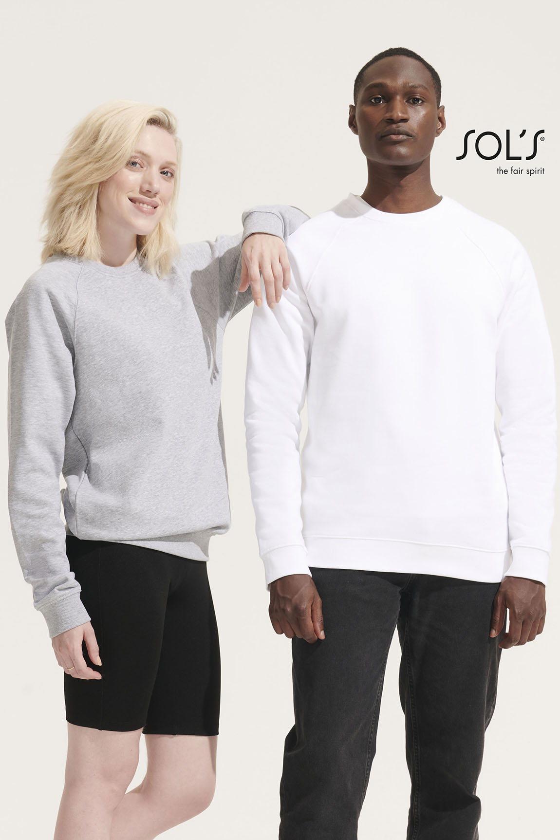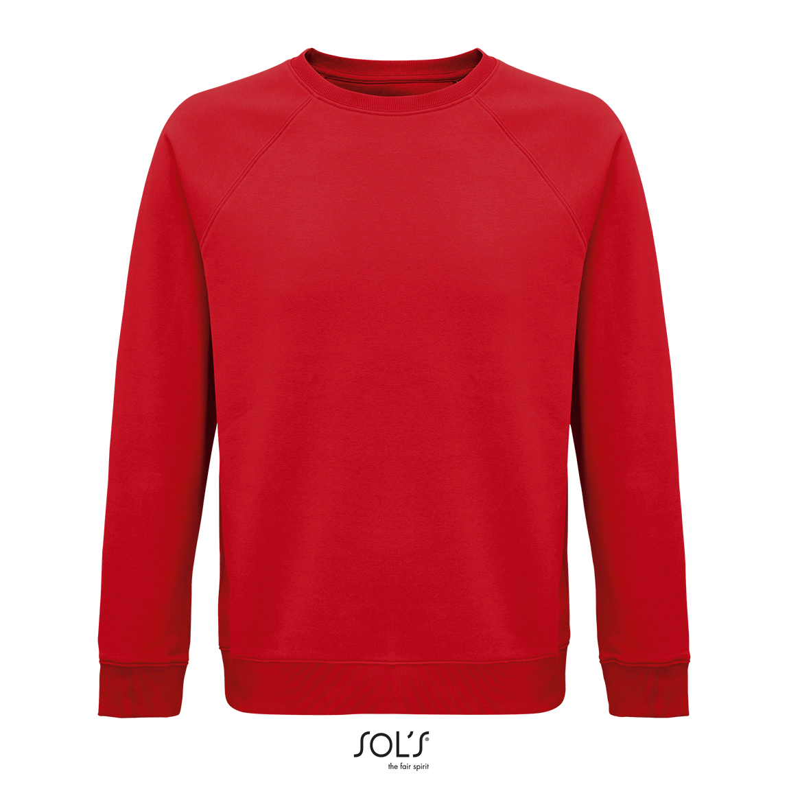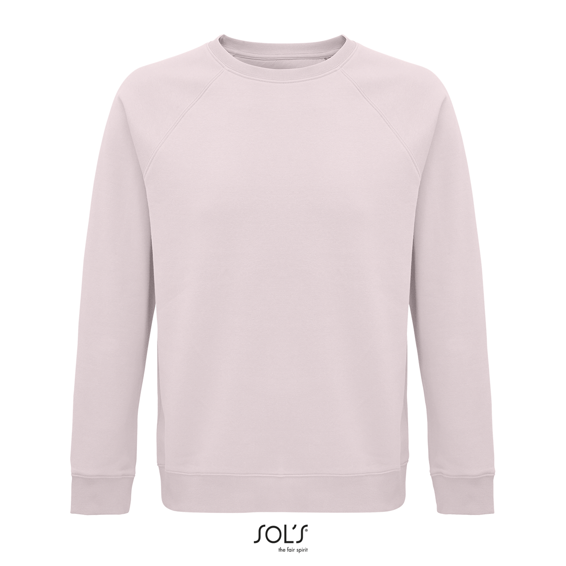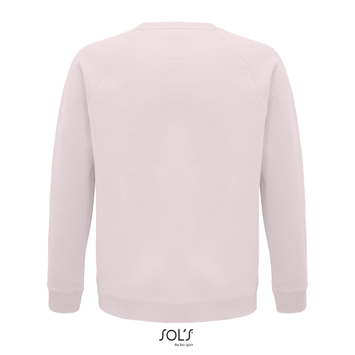 Η μπλούζα φούτερ διαθέτει ρεγκλάν μανίκια και πλαϊνές ραφές για άριστη εφαρμογή. Είναι φτιαγμένη από οργανικό βαμβάκι και ανακυκλωμένο πολυέστερ, με ελαστικό ριπ 2x2 στο γιακά, τις μανσέτες και τη μέση. Ιδανική για εκτυπώσεις, η ενίσχυση (μισοφέγγαρο) στο εσωτερικό του γιακά διευκολύνει την εφαρμογή των εκτυπώσεων.
