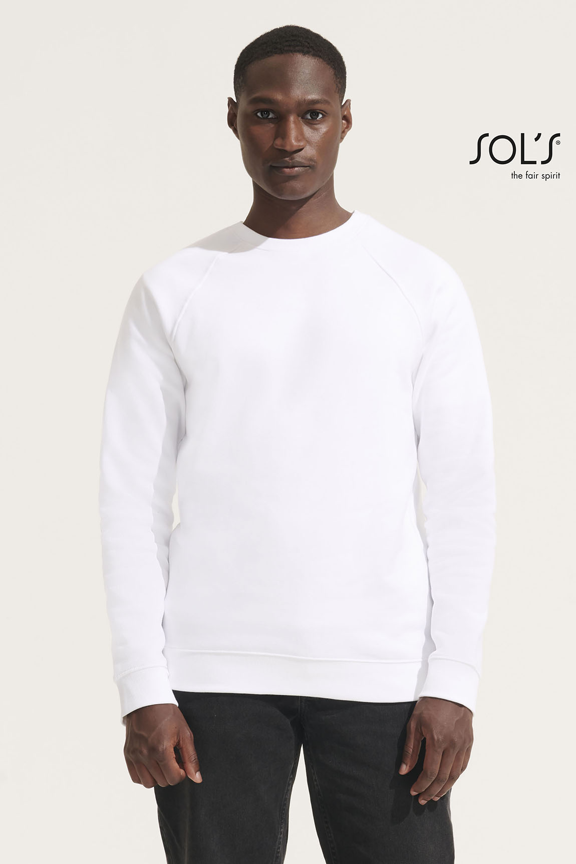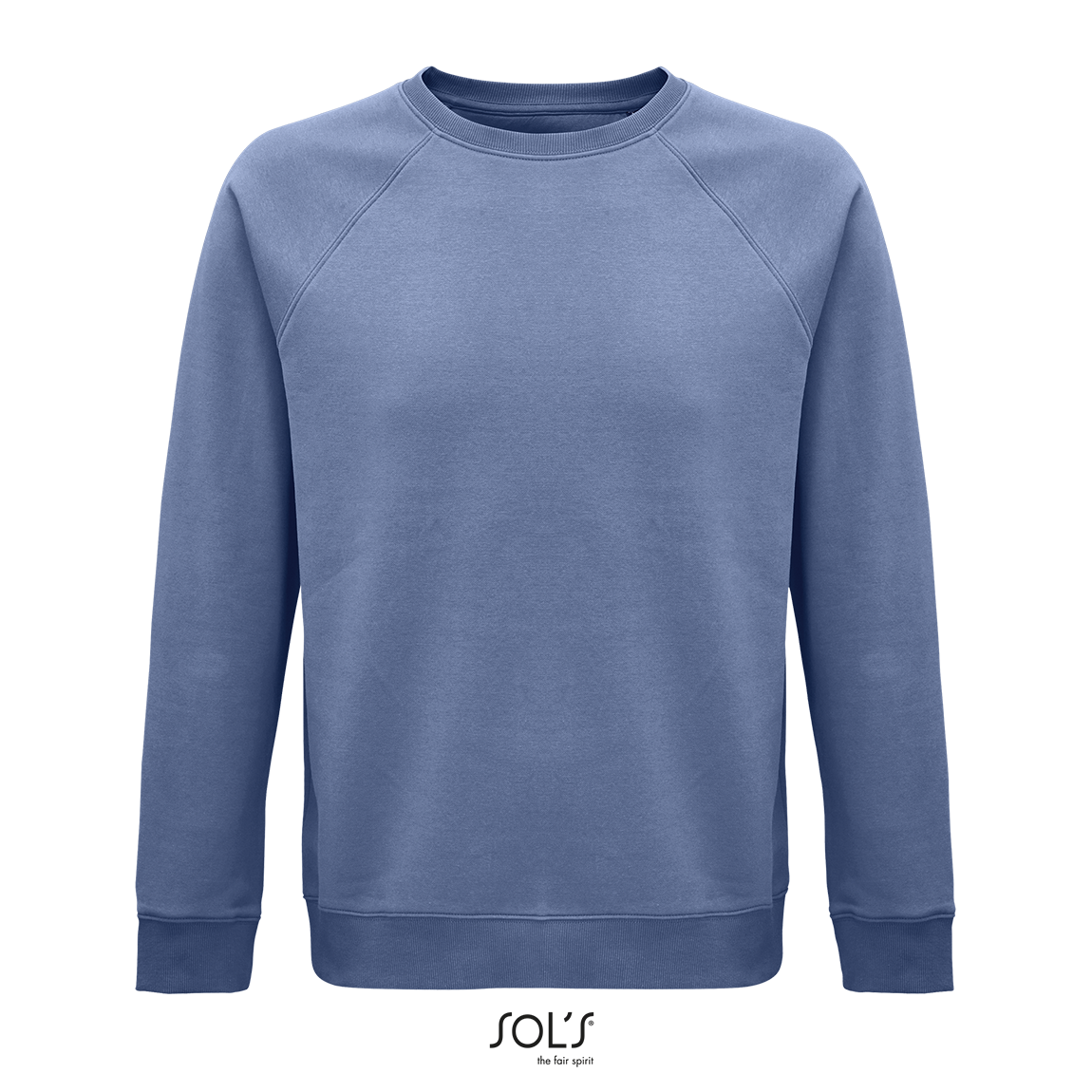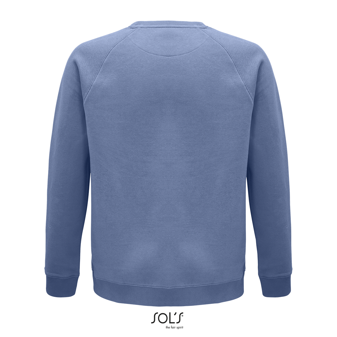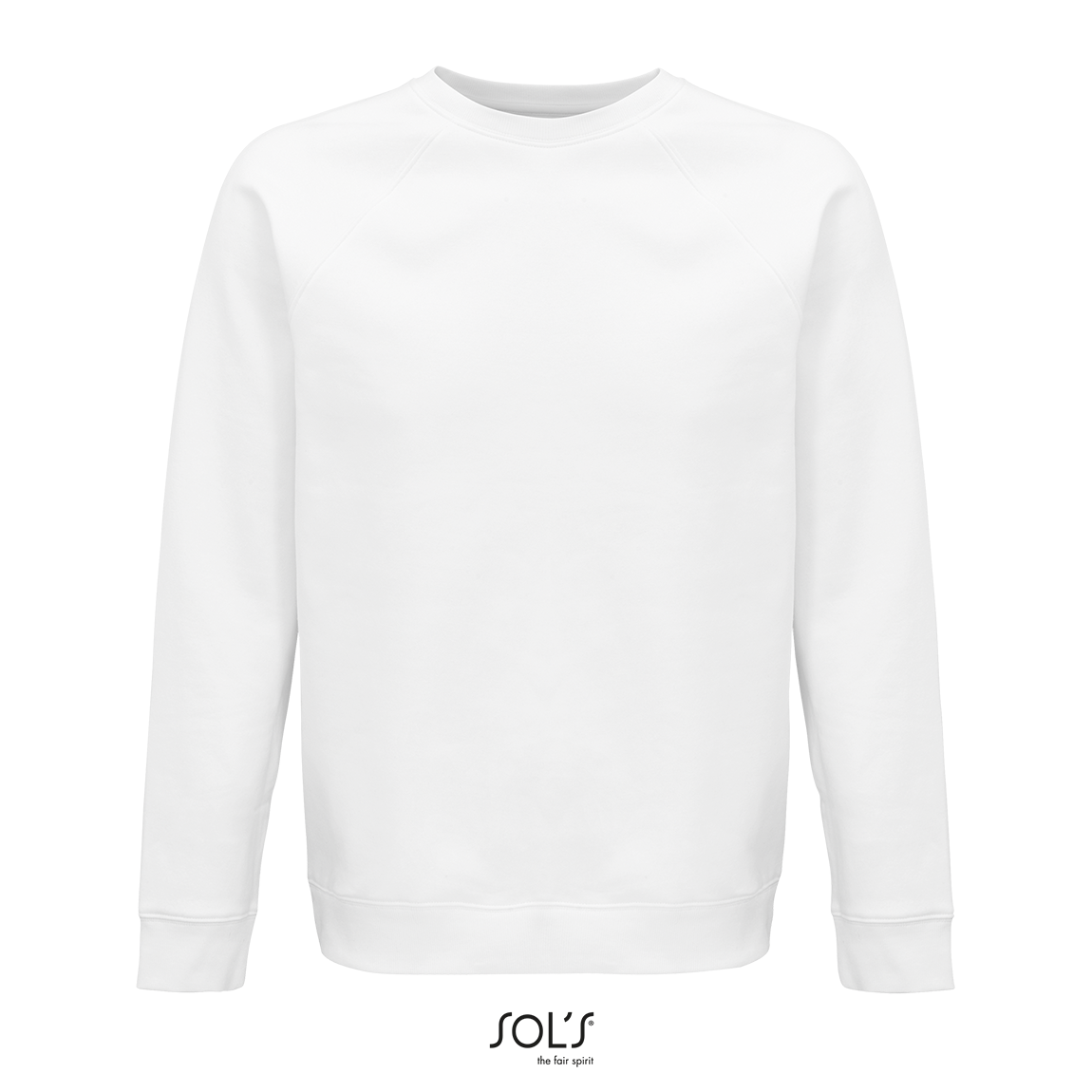 Η μπλούζα φούτερ διαθέτει ρεγκλάν μανίκια και πλαϊνές ραφές για άριστη εφαρμογή. Είναι φτιαγμένη από οργανικό βαμβάκι και ανακυκλωμένο πολυέστερ, με ελαστικό ριπ 2x2 στο γιακά, τις μανσέτες και τη μέση. Ιδανική για εκτυπώσεις, η ενίσχυση (μισοφέγγαρο) στο εσωτερικό του γιακά διευκολύνει την εφαρμογή των εκτυπώσεων.