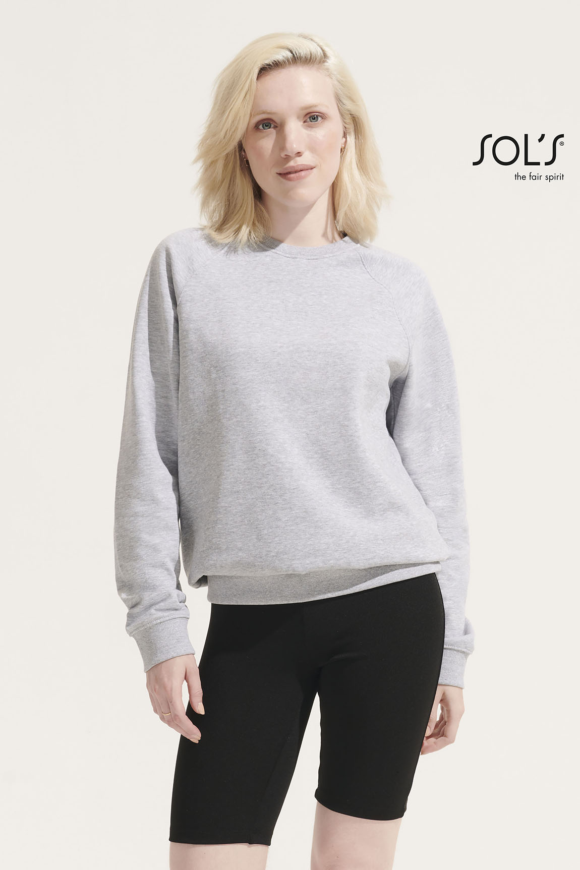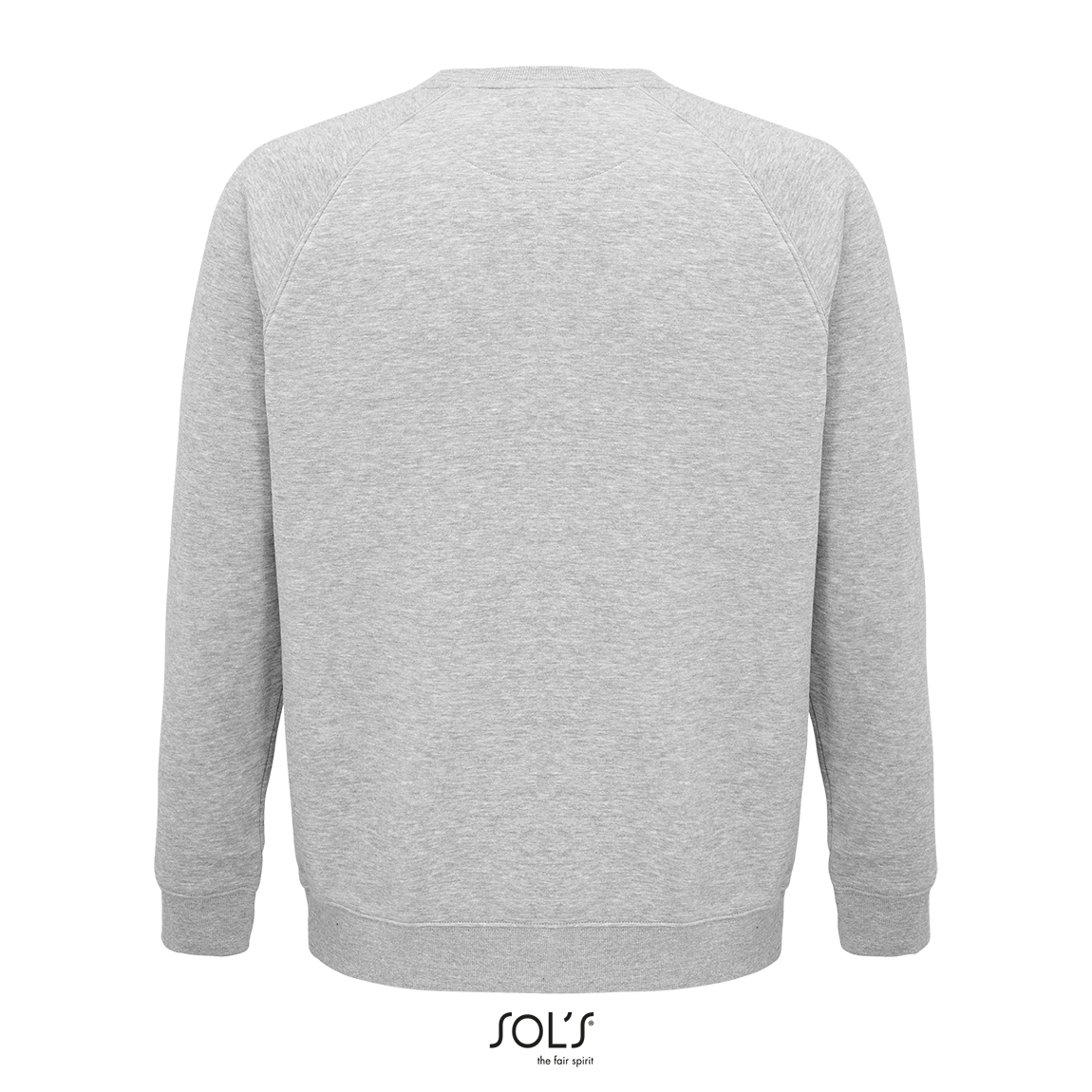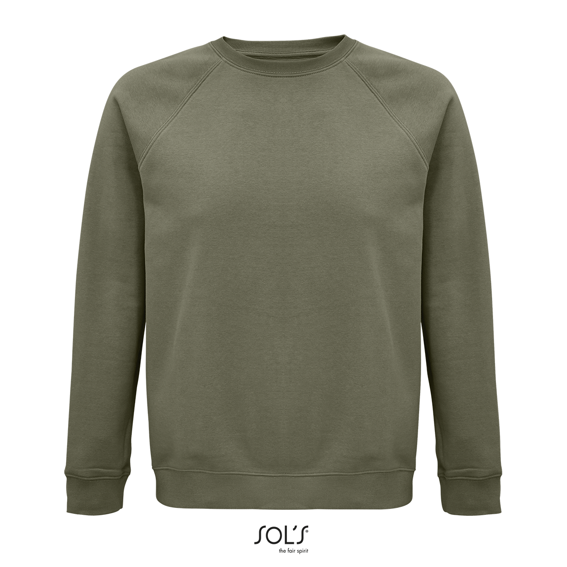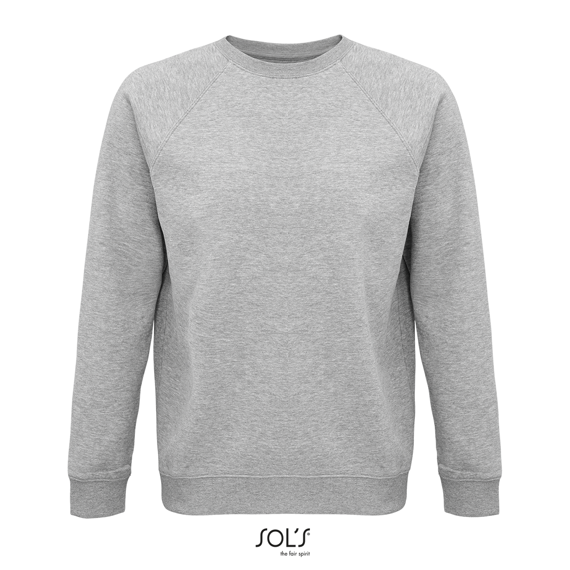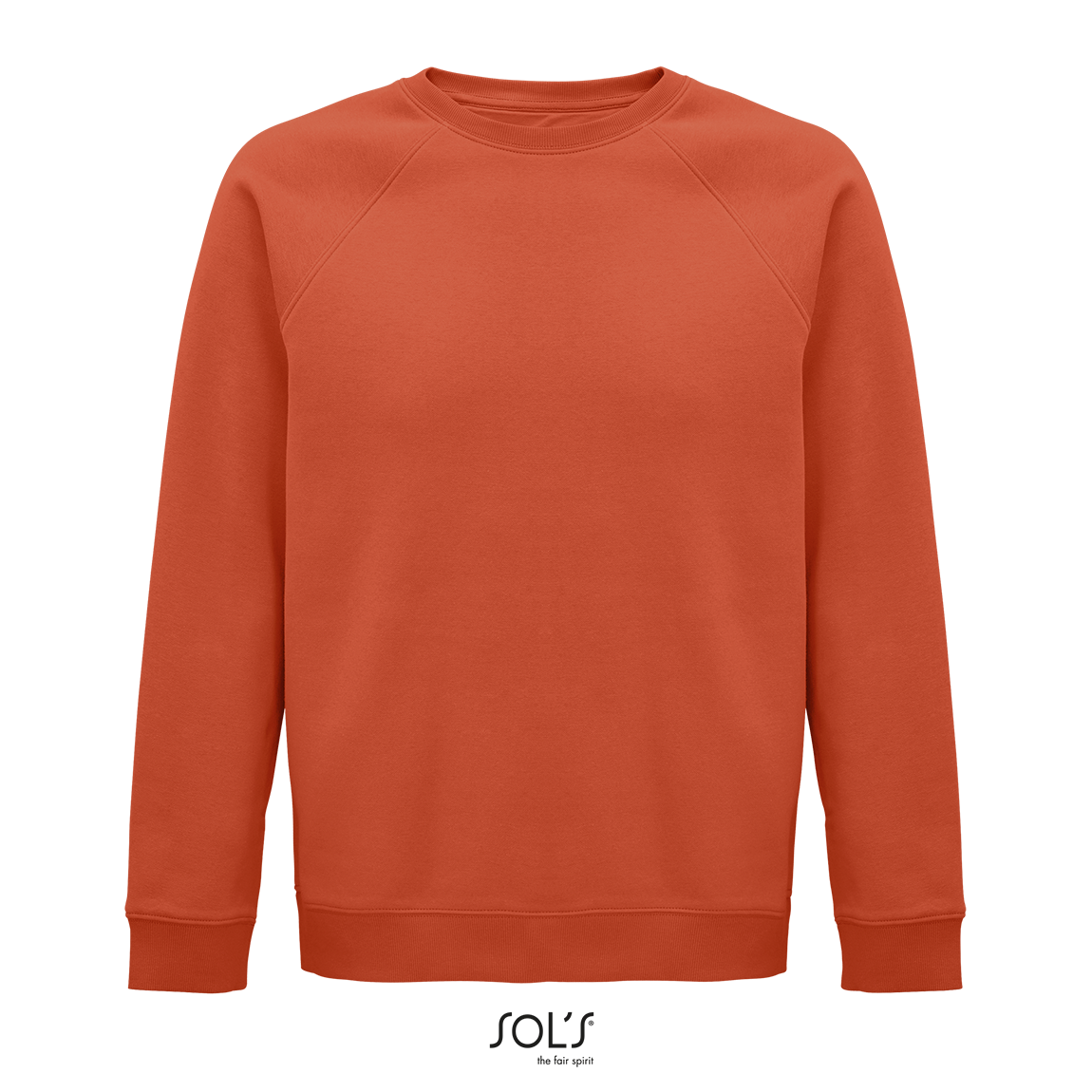 Η μπλούζα φούτερ διαθέτει ρεγκλάν μανίκια και πλαϊνές ραφές για άριστη εφαρμογή. Είναι φτιαγμένη από οργανικό βαμβάκι και ανακυκλωμένο πολυέστερ, με ελαστικό ριπ 2x2 στο γιακά, τις μανσέτες και τη μέση. Ιδανική για εκτυπώσεις, η ενίσχυση (μισοφέγγαρο) στο εσωτερικό του γιακά διευκολύνει την εφαρμογή των εκτυπώσεων.