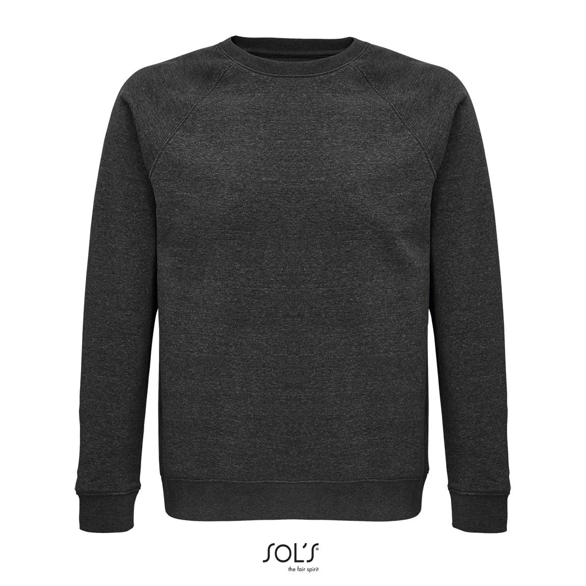 Φούτερ 280g/m² από 80% βαμβάκι βιολογικής καλλιέργειας και 20% ανακυκλωμένο πολυέστερ, βουρτσισμένο fleece εσωτερικά. Διαθέσιμο σε χρώματα όπως Charcoal melange και Grey melange.