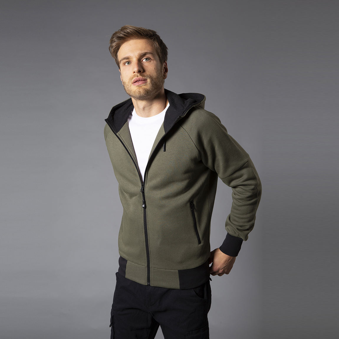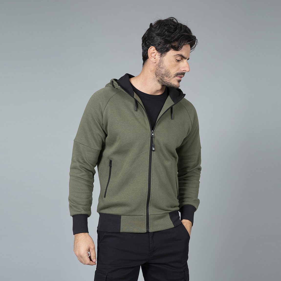 Σχέδιο και Χαρακτηριστικά: Η ζακέτα φούτερ Cleveland Man διαθέτει κλείσιμο με φερμουάρ και ψηλό κολάρο για επιπλέον προστασία. Περιλαμβάνει ρεγκλάν μανίκια, δύο τσέπες με φερμουάρ και κουκούλα με φόδρα σε χρωματική αντίθεση. Οι ελαστικές μανσέτες και η ελαστική μέση προσφέρουν άψογη εφαρμογή και άνεση καθ' όλη τη διάρκεια της ημέρας.