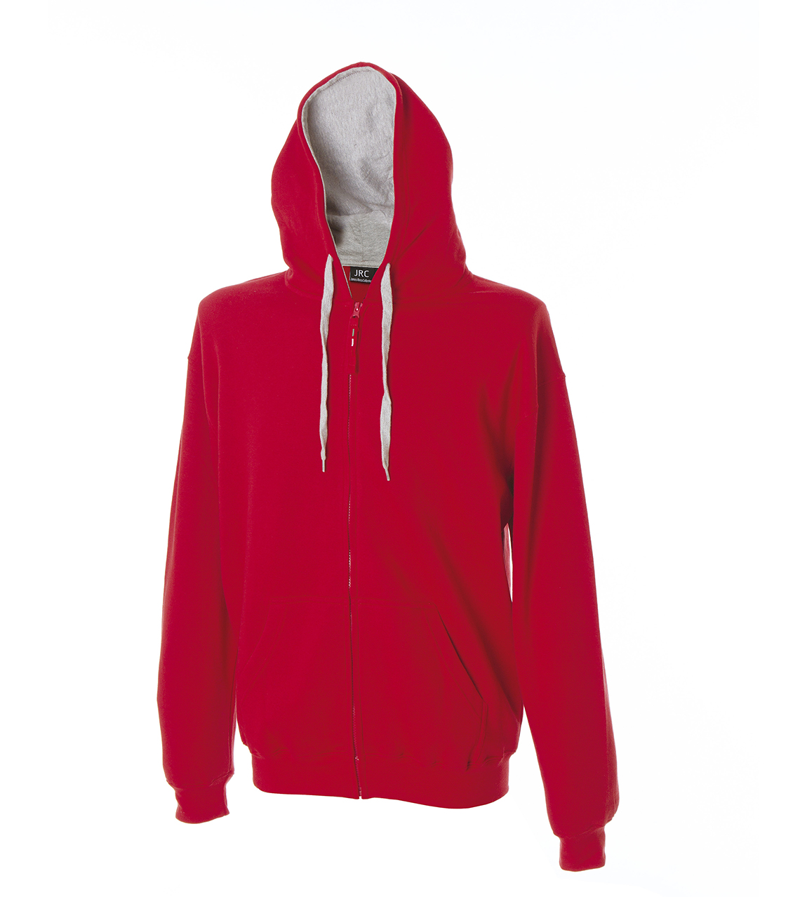 Η ζακέτα φούτερ διαθέτει επένδυση σε χρωματική αντίθεση στην κουκούλα, ψηλό κολάρο και κρυφό φερμουάρ. Έχει τσέπη καγκουρό για επιπλέον λειτουργικότητα, ενώ η φακαρόλα στο λαιμό και το ελαστικό ριπ στη μέση και τις μανσέτες προσφέρουν άνεση. Μπορεί να βρεθεί σε ποικιλία χρωμάτων που προάγουν την επαγγελματική εμφάνιση.