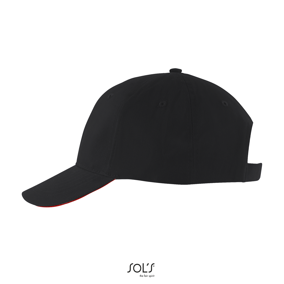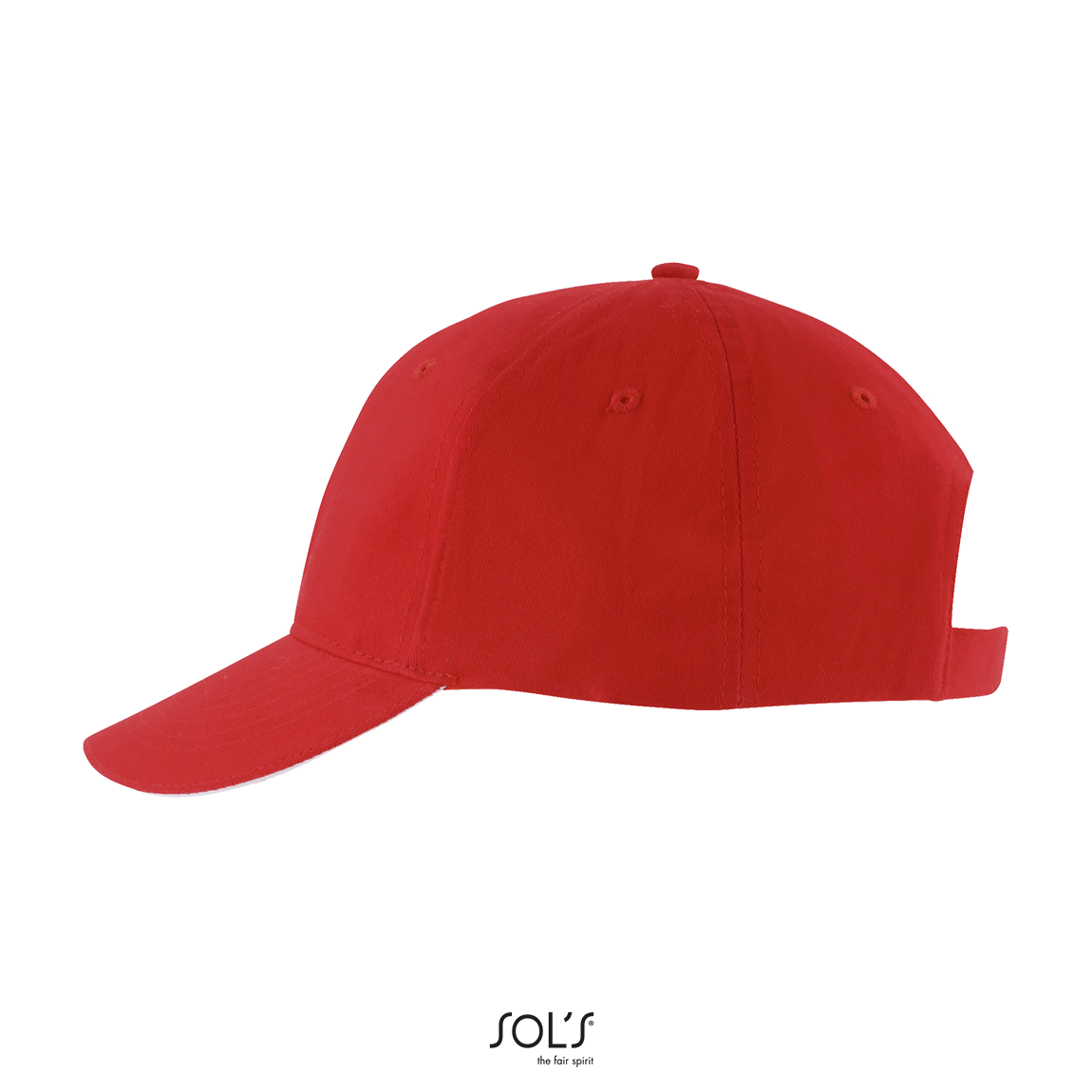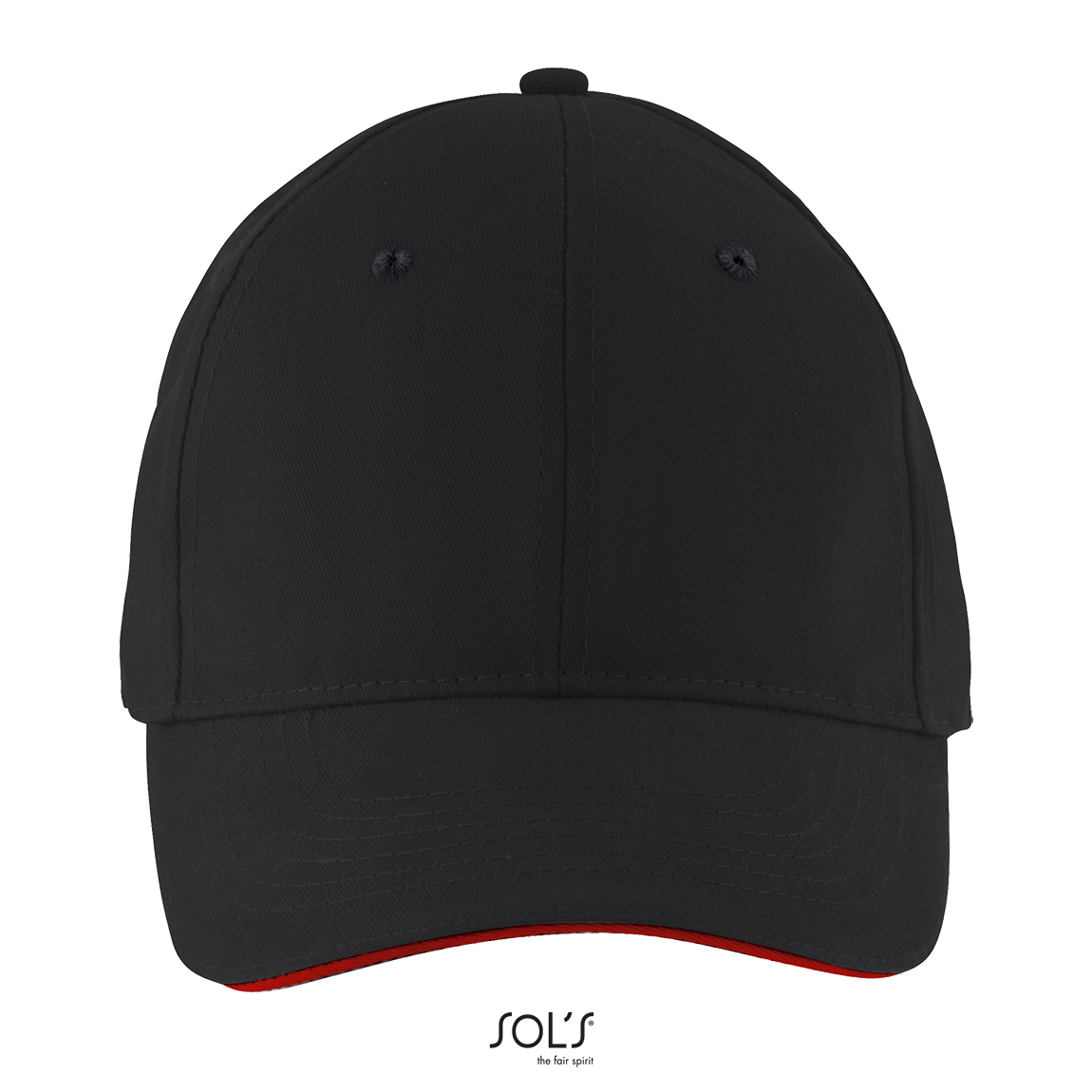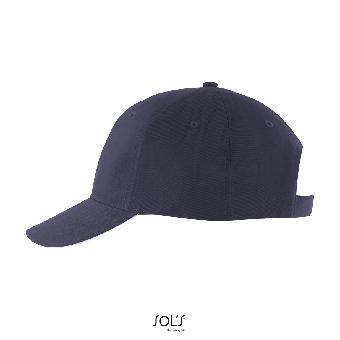 Κυρτό γείσο με 6 ραφές, φυτίλι σε χρωματική αντίθεση, και σταθερό μέτωπο. Διαθέτει 6 κεντημένες οπές εξαερισμού και ρυθμιζόμενο κλείσιμο με αυτοκόλλητο για τέλεια εφαρμογή.