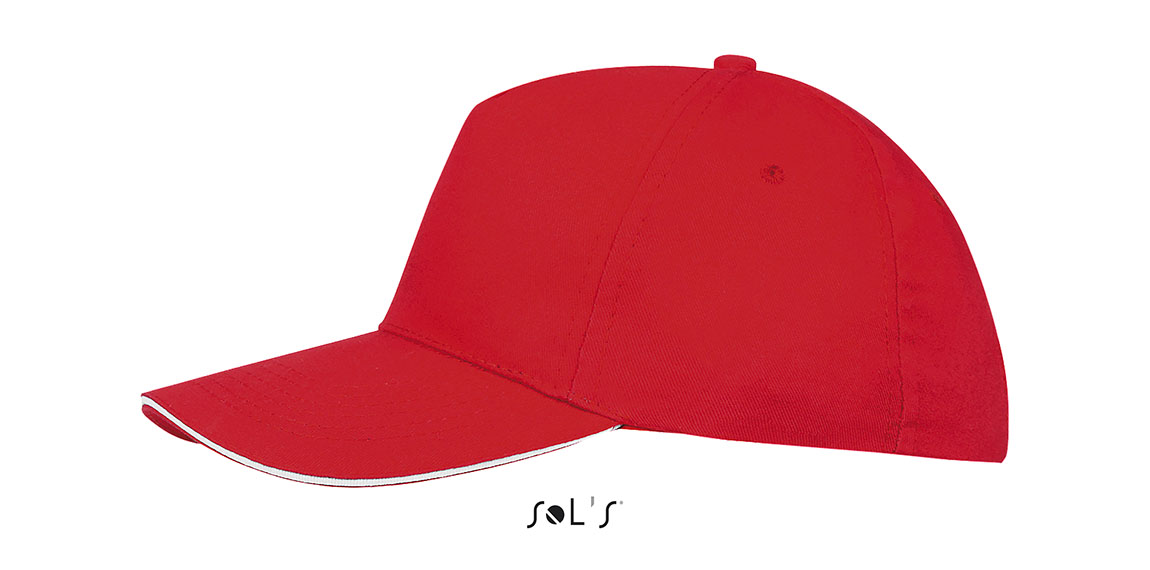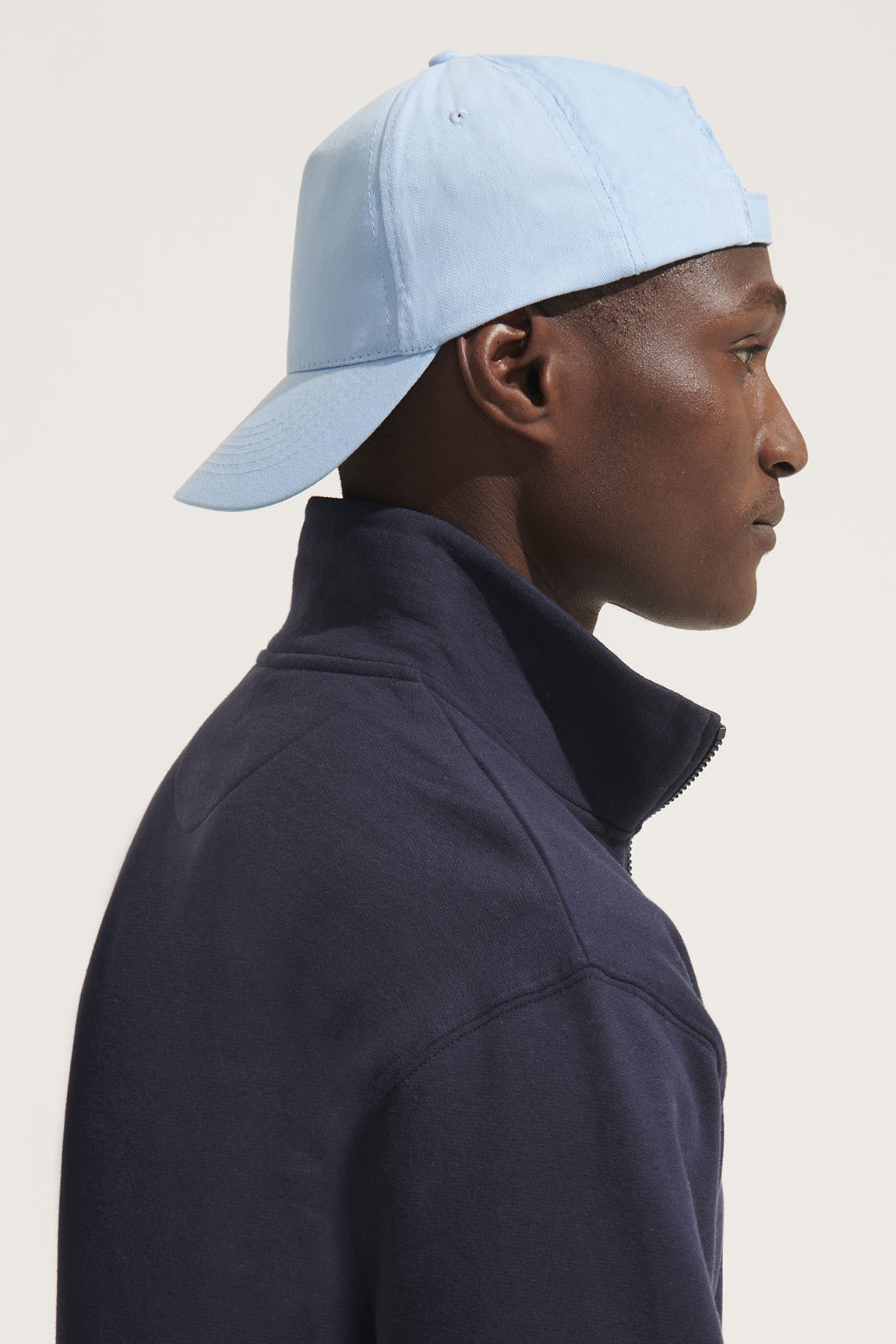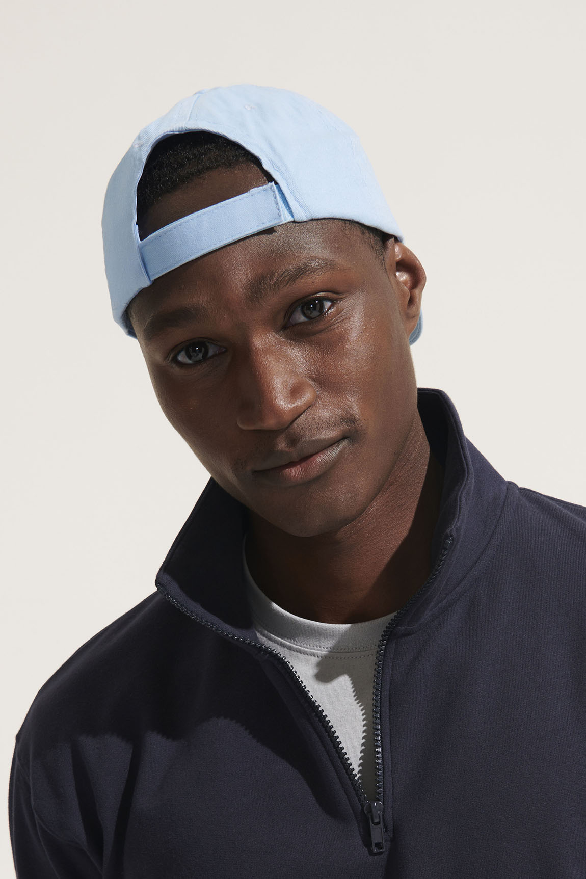 Κυρτό γείσο με 4 ραφές και σταθερό μέτωπο, εξασφαλίζει στιβαρή κατασκευή. Οι 4 κεντημένες οπές εξαερισμού προσφέρουν άνεση στις θερμές ημέρες, ενώ το ρυθμιζόμενο κλείσιμο με αυτοκόλλητο εξασφαλίζει τέλεια εφαρμογή. Το φυτίλι σε χρωματική αντίθεση προσθέτει ένα μοναδικό στυλ στο καπέλο.