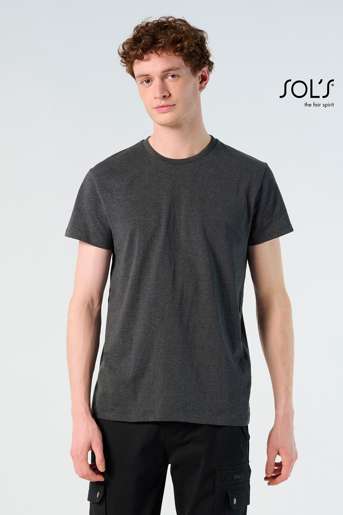 Jersey 190g/m² - 100% Βαμβάκι Ringspun σεμί-πενιέ. Επιπλέον, θα βρείτε διαφορετικές συνθέσεις για τα χρώματα Grey melange, Charcoal melange, Heather Oxblood, Heather denim και Heather khaki.