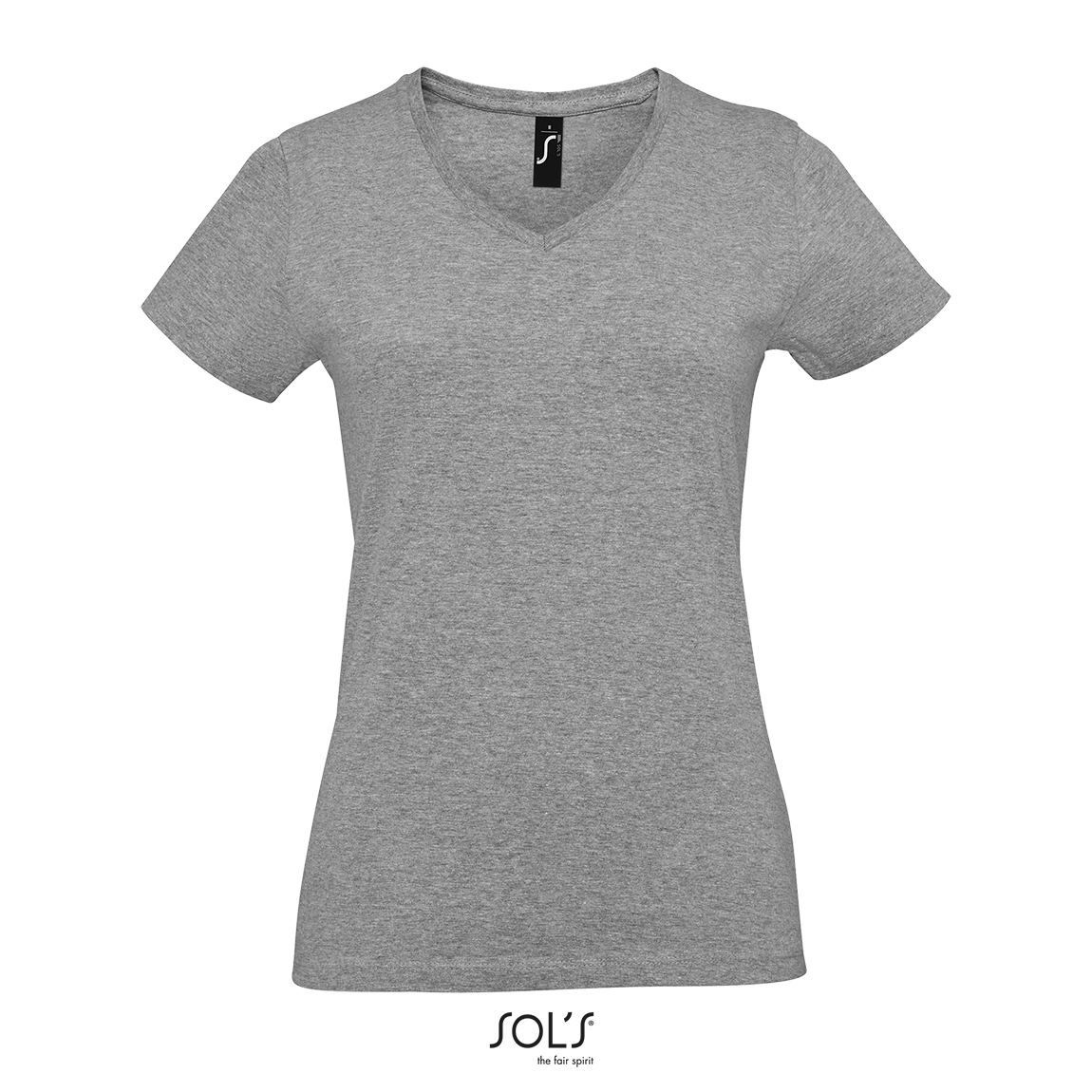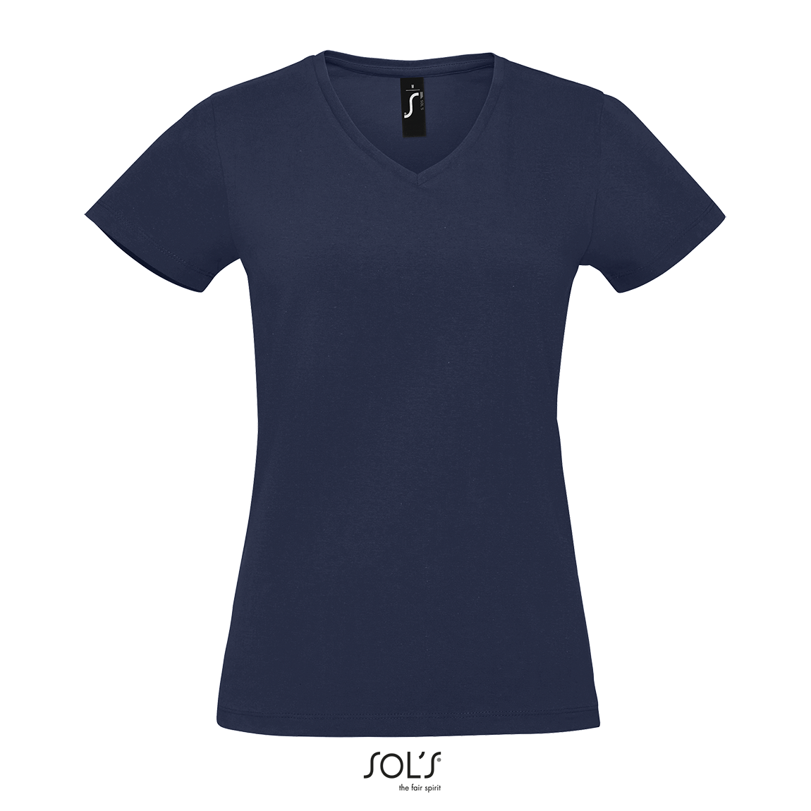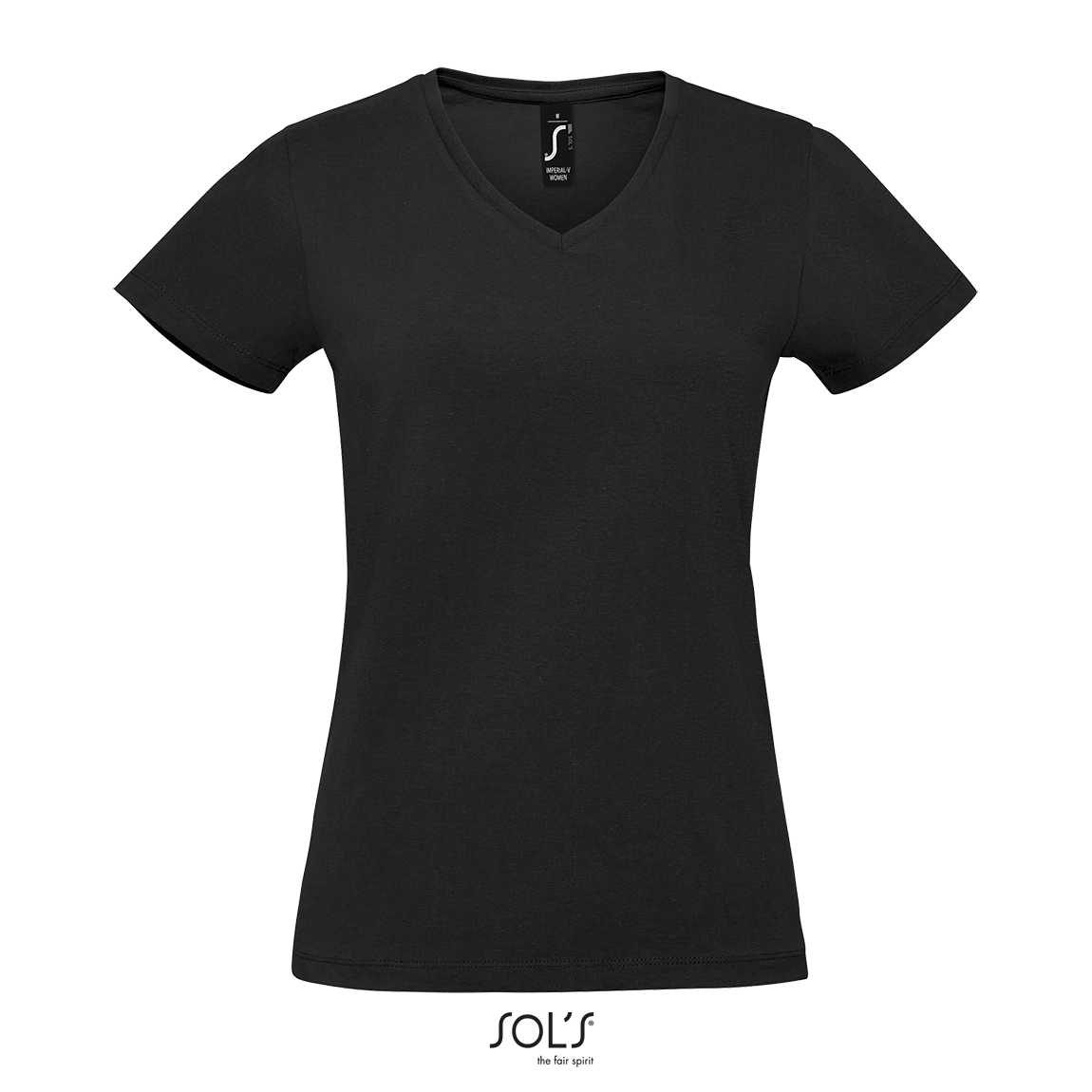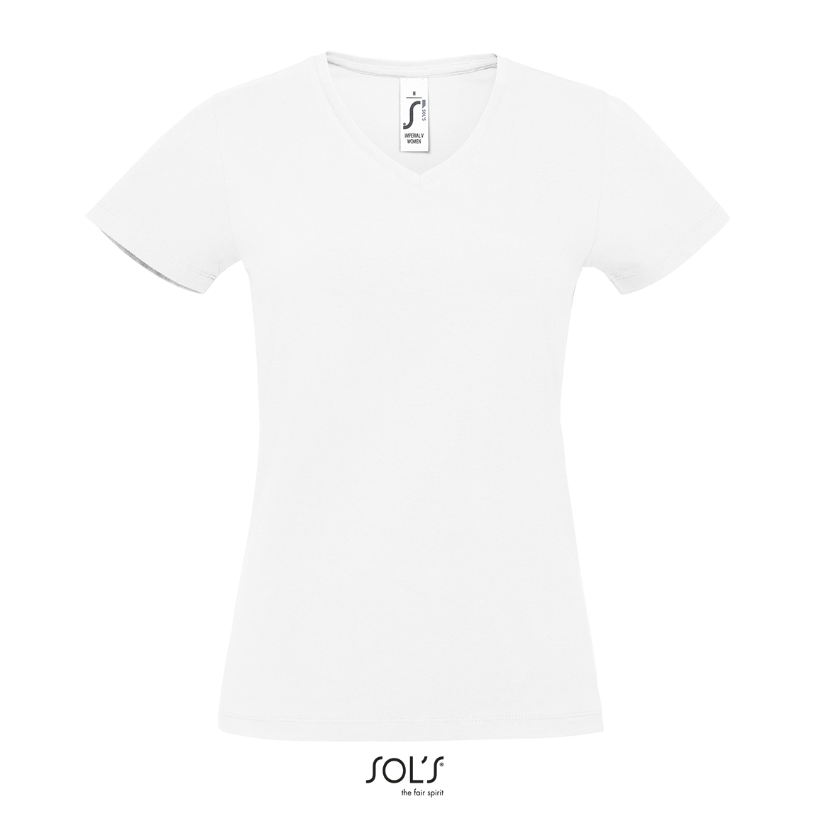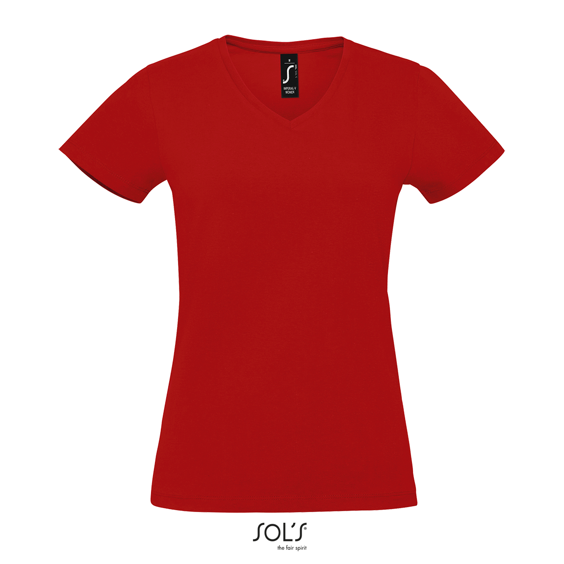 Σχέδιο και Χαρακτηριστικά: Το γυναικείο T-shirt διαθέτει κοντά μανίκια, πλαϊνές ραφές και λαιμόκοψη V με ριπ, προσφέροντας μοντέρνα εμφάνιση. Η φακαρόλα στο λαιμό ενισχύει την ανθεκτικότητα και την κομψότητα του ρούχου. Το T-shirt είναι κατασκευασμένο από πέρασμα σεμί-πενιέ από 100% βαμβάκι, προσφέροντας ευχάριστη αίσθηση στο δέρμα και άριστη εφαρμογή. Διατίθεται σε διάφορα χρώματα, καθιστώντας το κατάλληλο για κάθε στυλ.