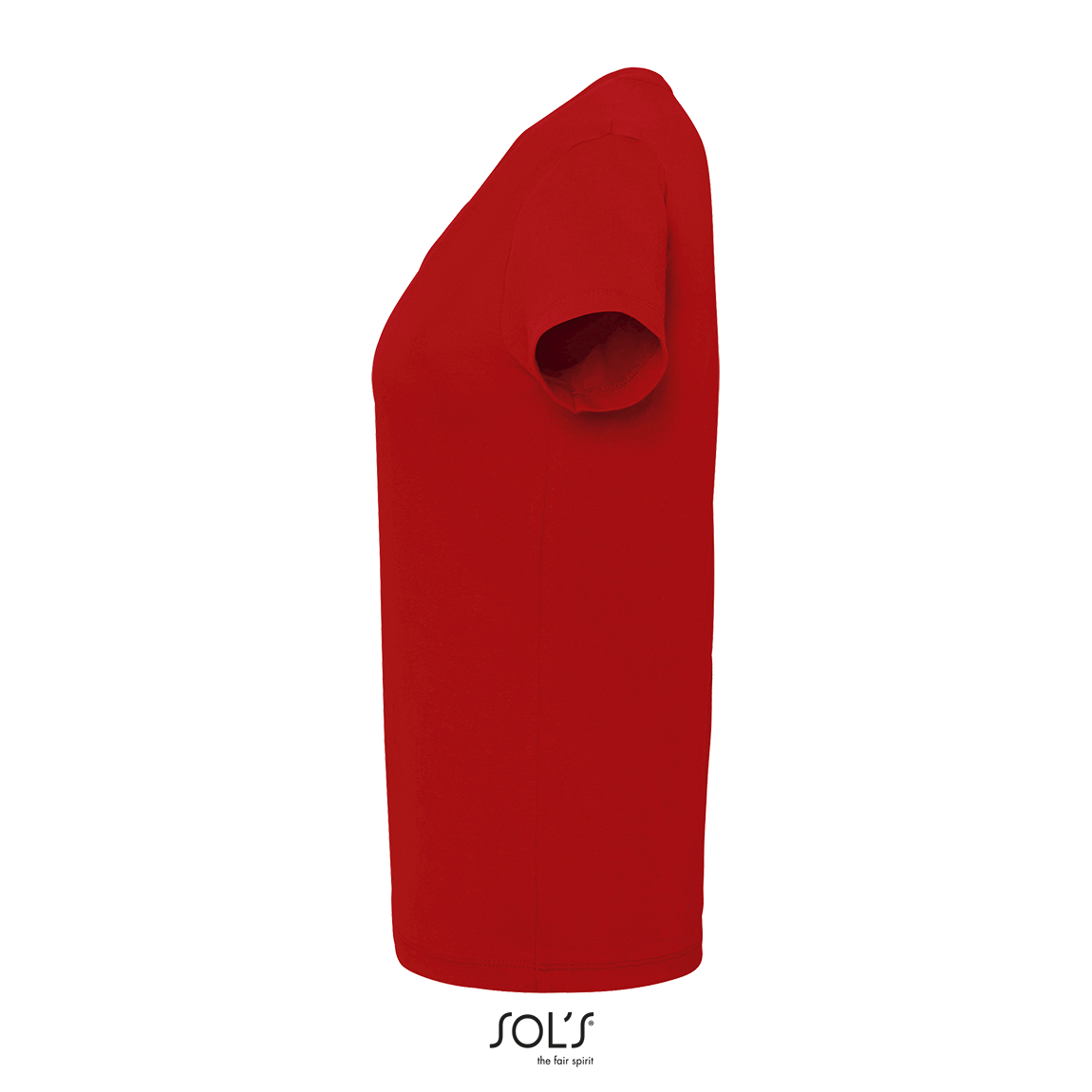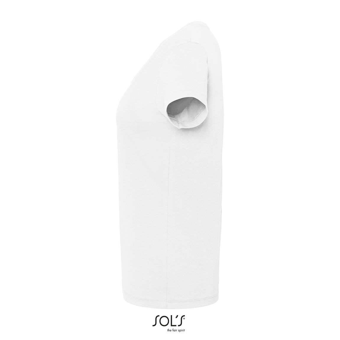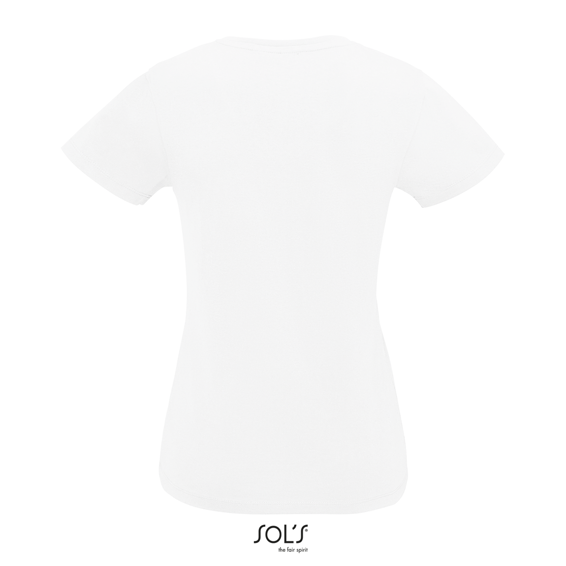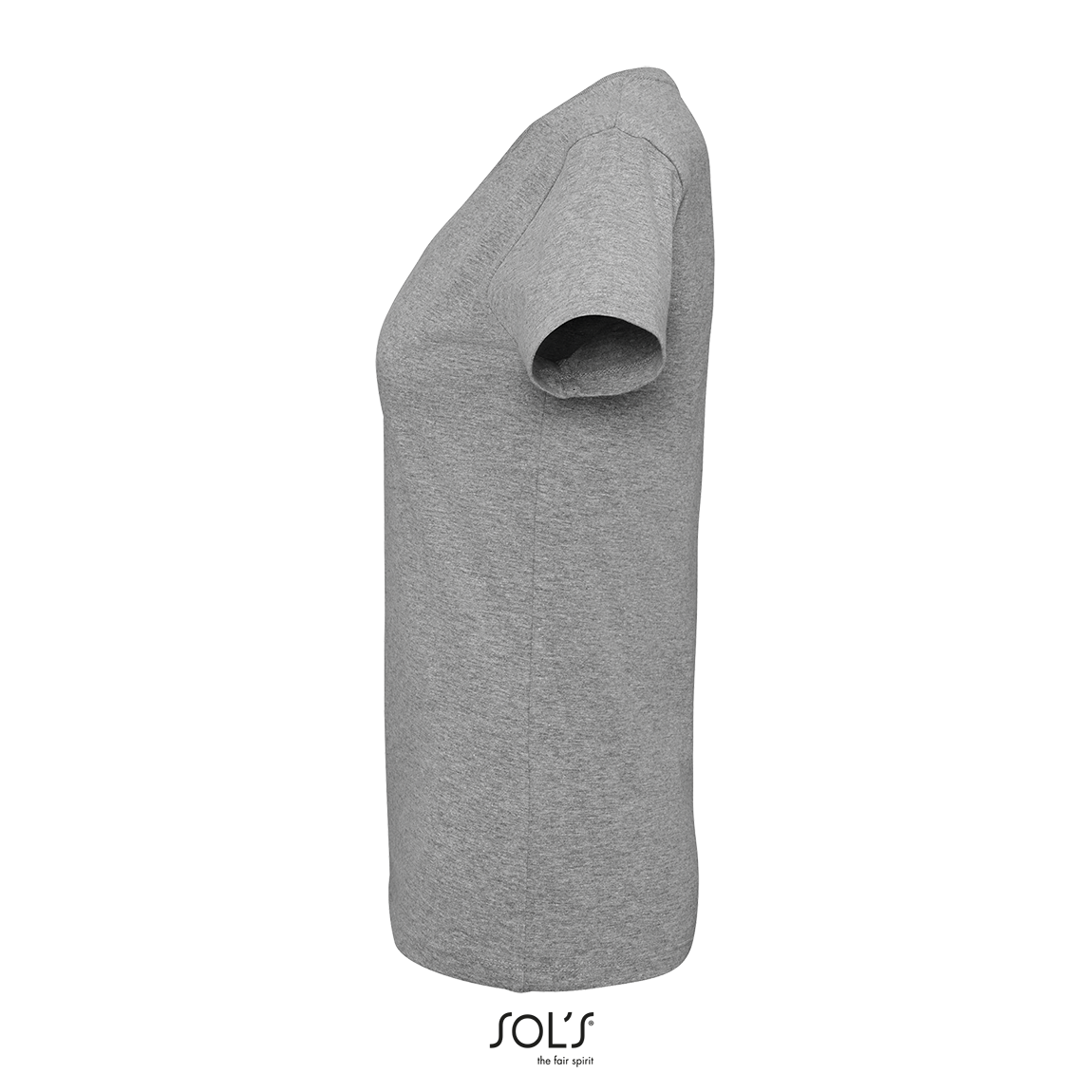 Σχέδιο και Χαρακτηριστικά: Το γυναικείο T-shirt διαθέτει κοντά μανίκια, πλαϊνές ραφές και λαιμόκοψη V με ριπ, προσφέροντας μοντέρνα εμφάνιση. Η φακαρόλα στο λαιμό ενισχύει την ανθεκτικότητα και την κομψότητα του ρούχου. Το T-shirt είναι κατασκευασμένο από πέρασμα σεμί-πενιέ από 100% βαμβάκι, προσφέροντας ευχάριστη αίσθηση στο δέρμα και άριστη εφαρμογή. Διατίθεται σε διάφορα χρώματα, καθιστώντας το κατάλληλο για κάθε στυλ.