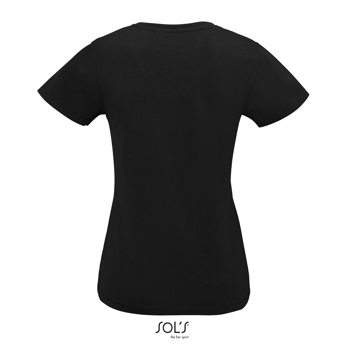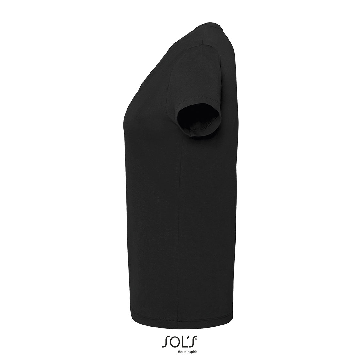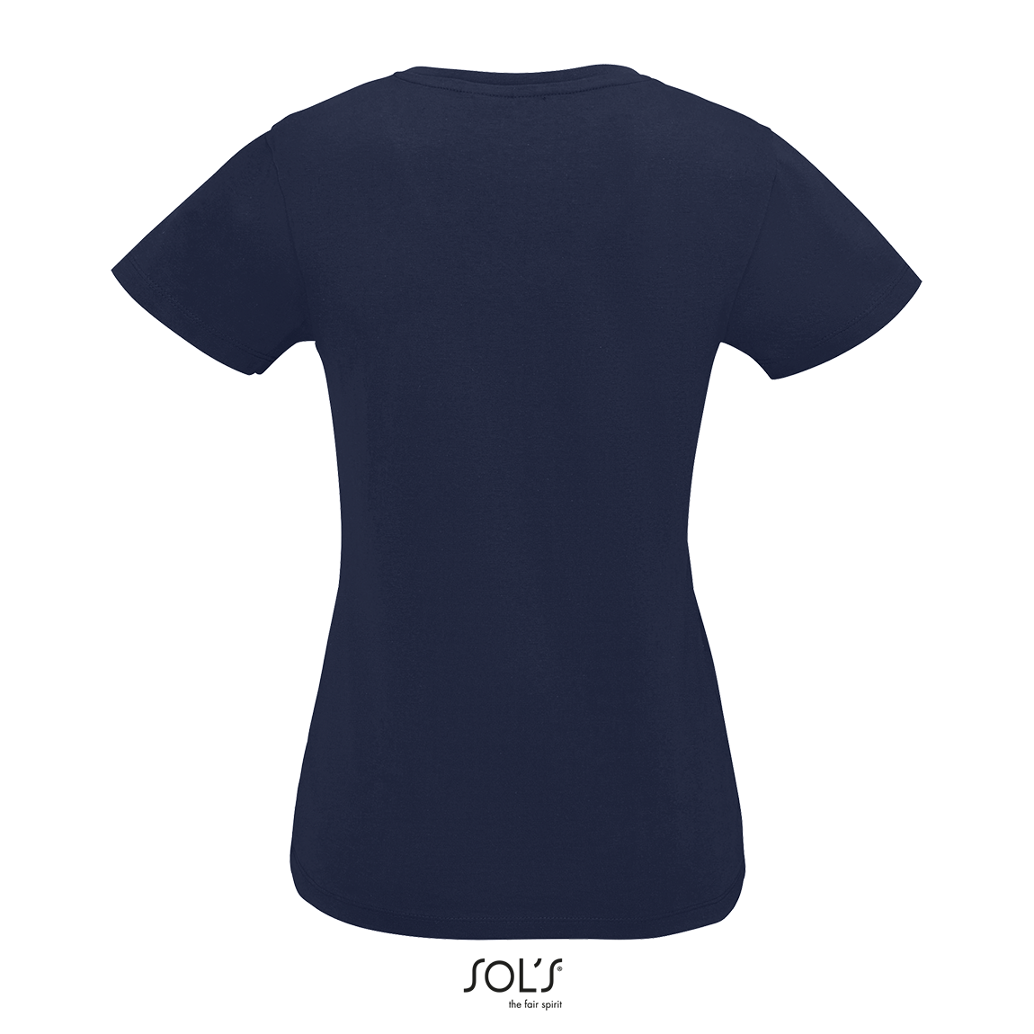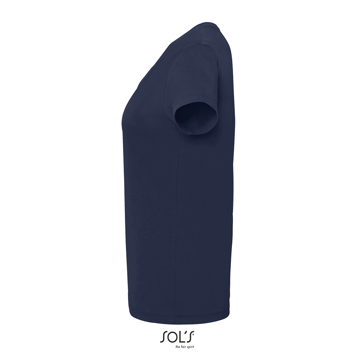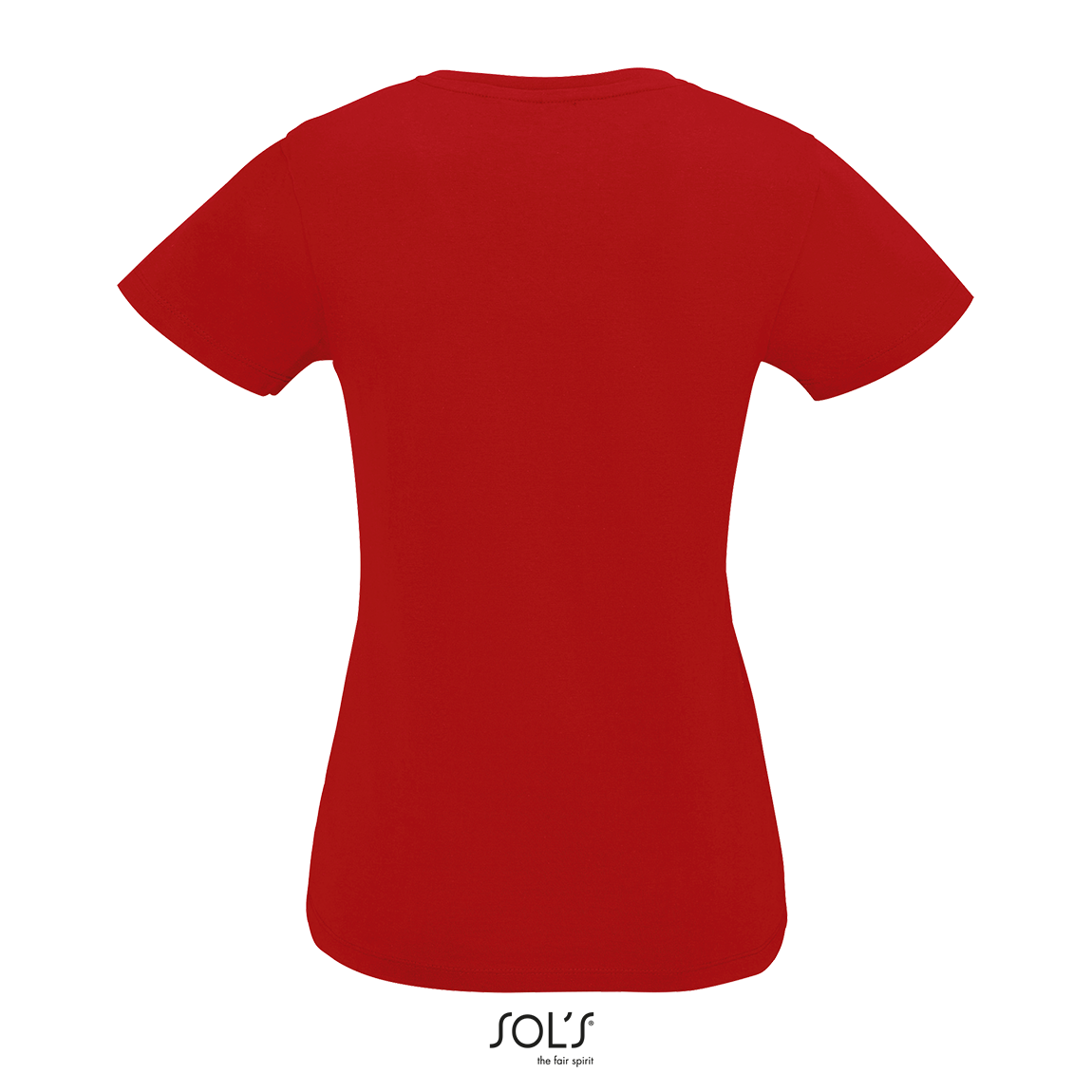Σχέδιο και Χαρακτηριστικά: Το γυναικείο T-shirt διαθέτει κοντά μανίκια, πλαϊνές ραφές και λαιμόκοψη V με ριπ, προσφέροντας μοντέρνα εμφάνιση. Η φακαρόλα στο λαιμό ενισχύει την ανθεκτικότητα και την κομψότητα του ρούχου. Το T-shirt είναι κατασκευασμένο από πέρασμα σεμί-πενιέ από 100% βαμβάκι, προσφέροντας ευχάριστη αίσθηση στο δέρμα και άριστη εφαρμογή. Διατίθεται σε διάφορα χρώματα, καθιστώντας το κατάλληλο για κάθε στυλ.