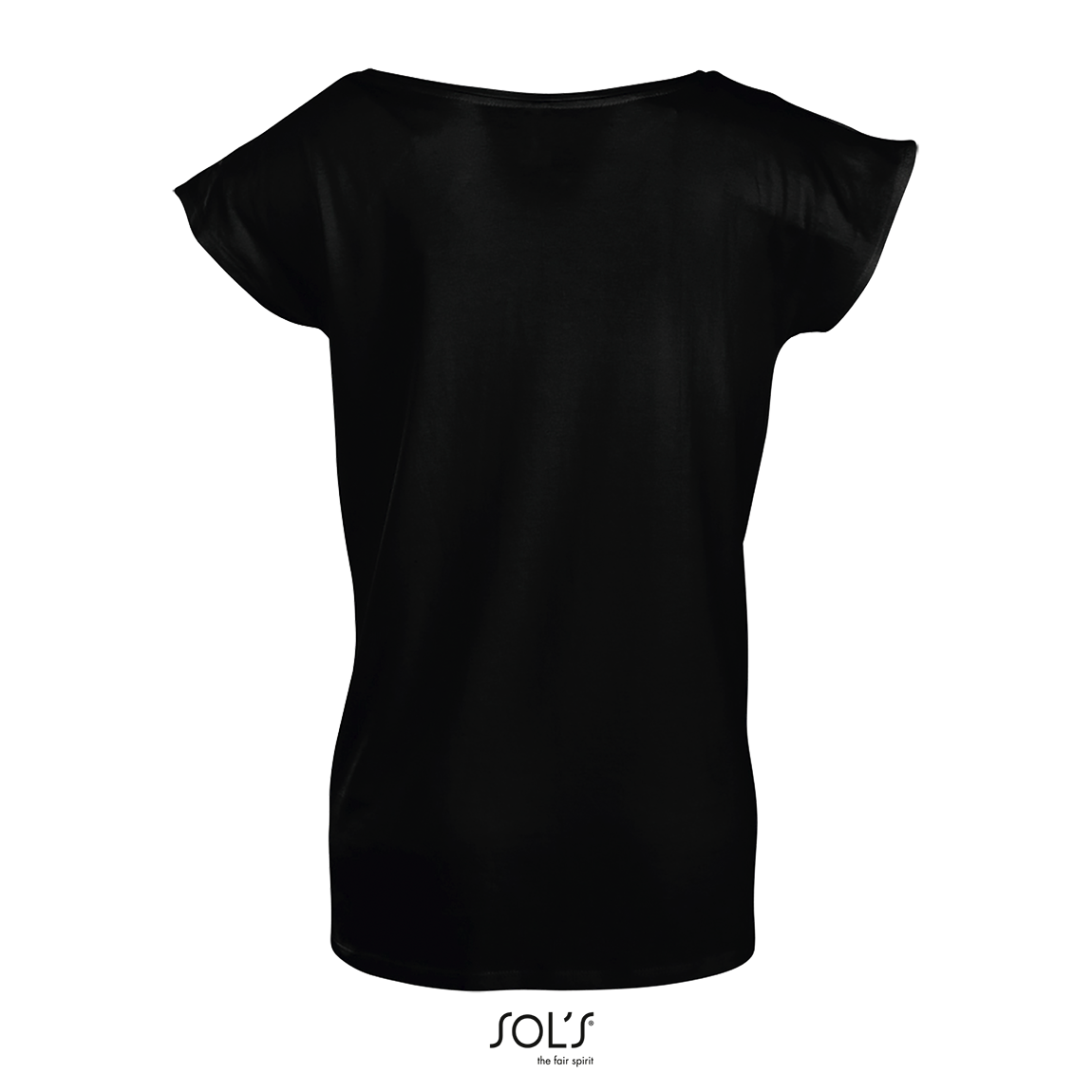 Σχέδιο και Χαρακτηριστικά: Το γυναικείο T-shirt τύπου κιμονό διαθέτει κοντά μανίκια και βαθιά jersey λαιμόκοψη, με μια χαριτωμένη φακαρόλα στο λαιμό και χυτό, σαγηνευτικό σχέδιο τύπου τουνίκ. Είναι ιδανικό για καθημερινές επαγγελματικές εμφανίσεις.