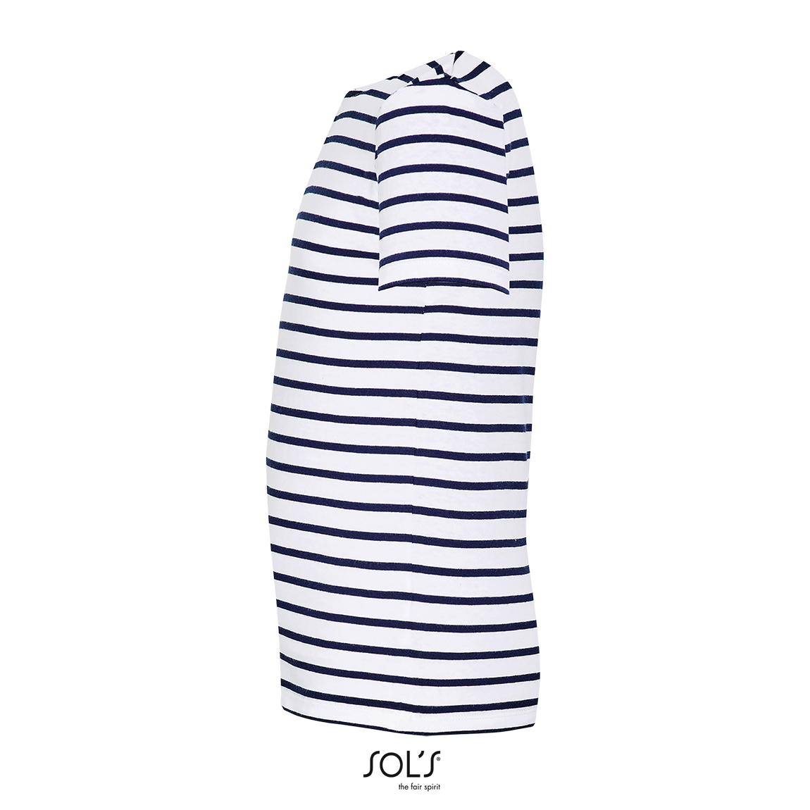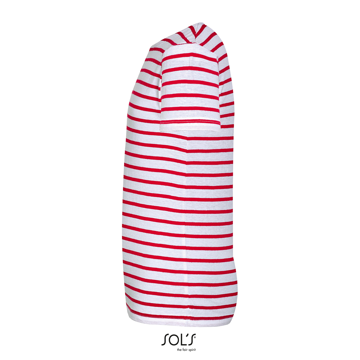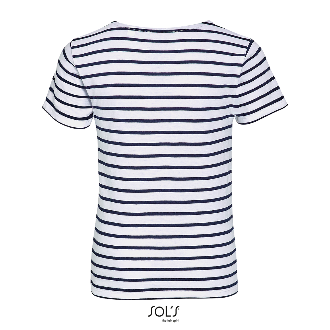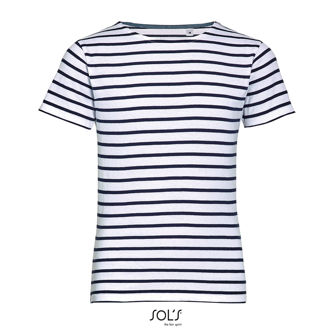 Σχέδιο και Χαρακτηριστικά: Το παιδικό ριγέ T-shirt διαθέτει κοντά μανίκια και πλαϊνές ραφές, προσφέροντας άνεση και στυλ. Οι λεπτομέρειες από ύφασμα τύπου τζιν στη λαιμόκοψη προσθέτουν μια μοντέρνα πινελιά. Το σχέδιο είναι ιδανικό για καθημερινές εμφανίσεις και μπορεί να συνδυαστεί με διάφορες εμφανίσεις.