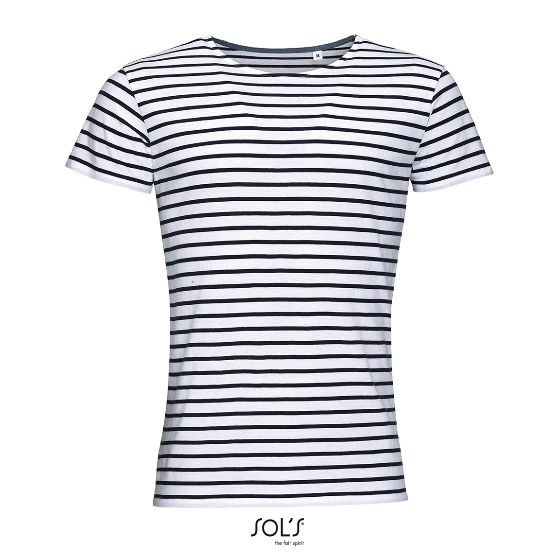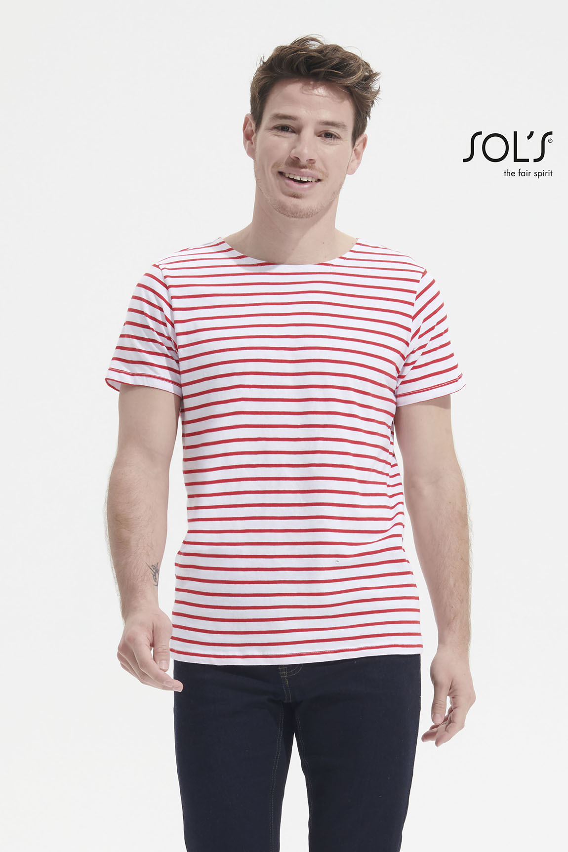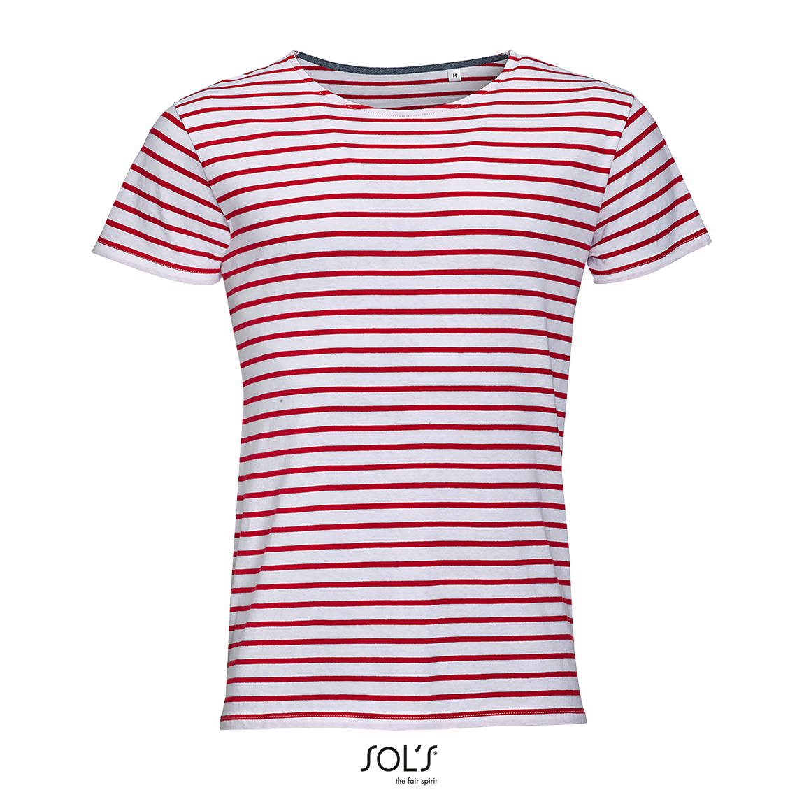 Περιγραφή: Το ανδρικό ριγέ T-shirt διαθέτει κοντά μανίκια, πλαϊνές ραφές και στρογγυλή λαιμόκοψη, με λεπτομέρειες υφάσματος τύπου τζιν στη λαιμόκοψη που ενισχύουν την αισθητική του. Η εφαρμοστή γραμμή του εξασφαλίζει κομψή εμφάνιση και άνεση στην καθημερινή χρήση.