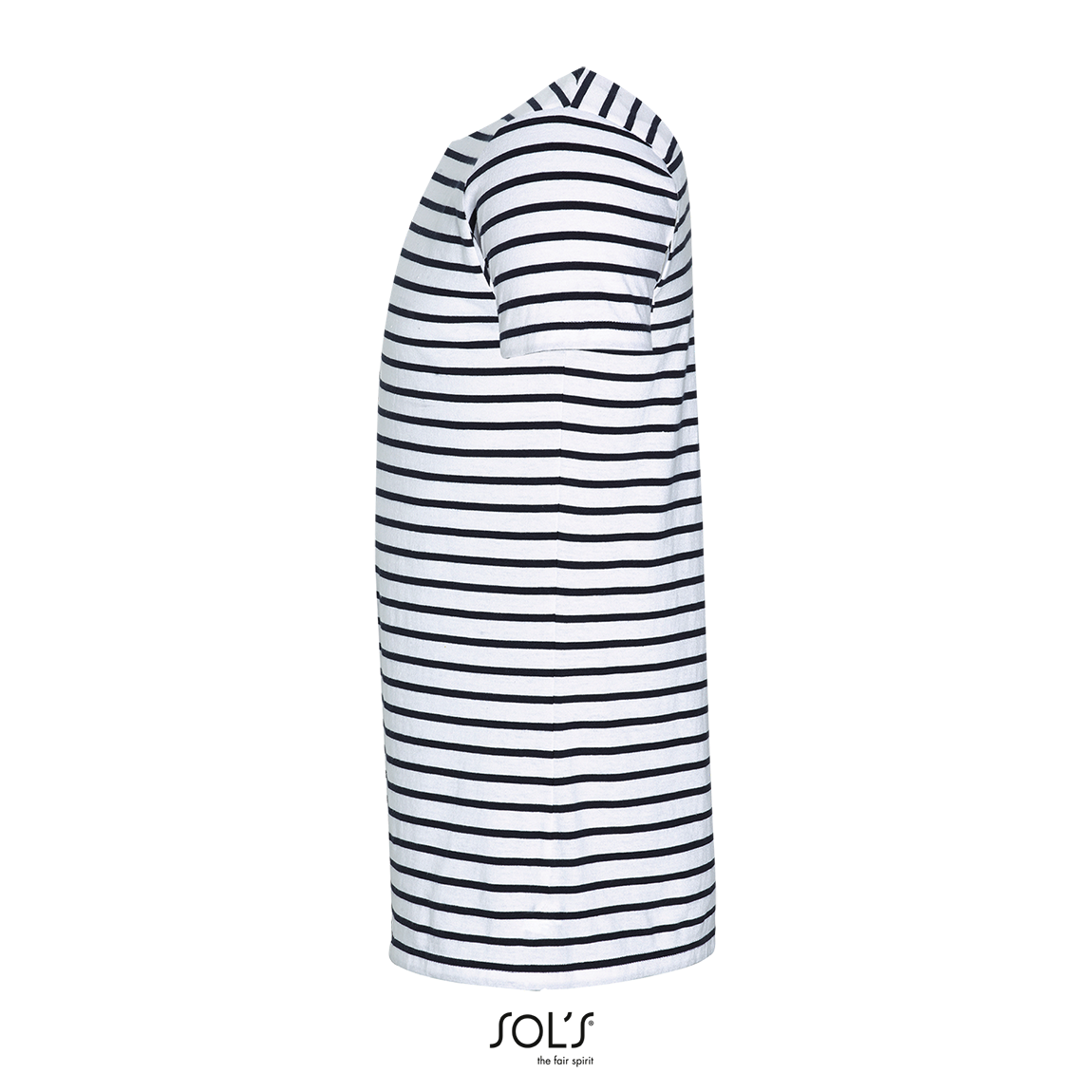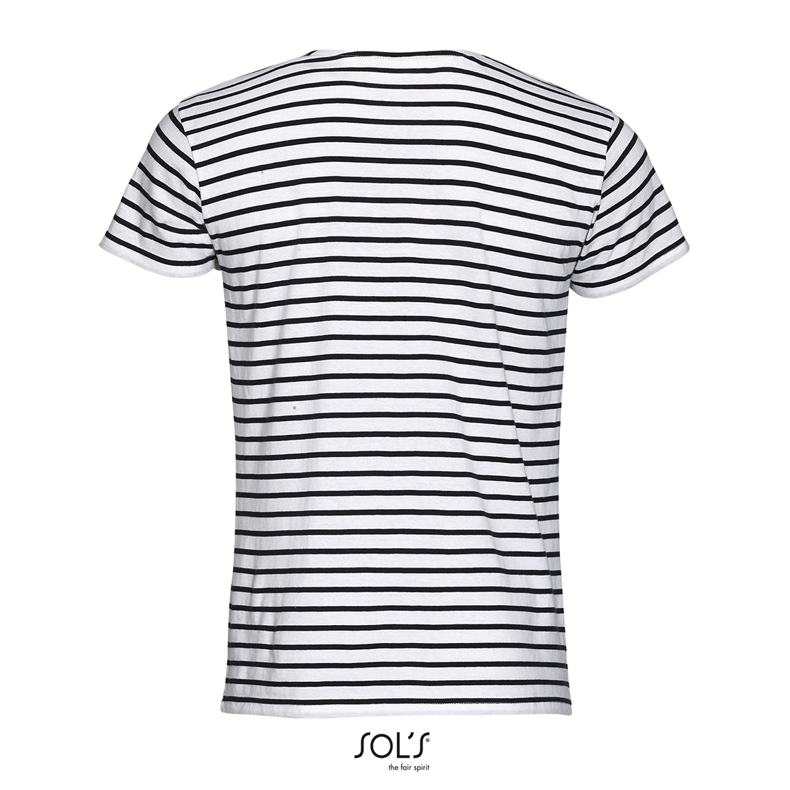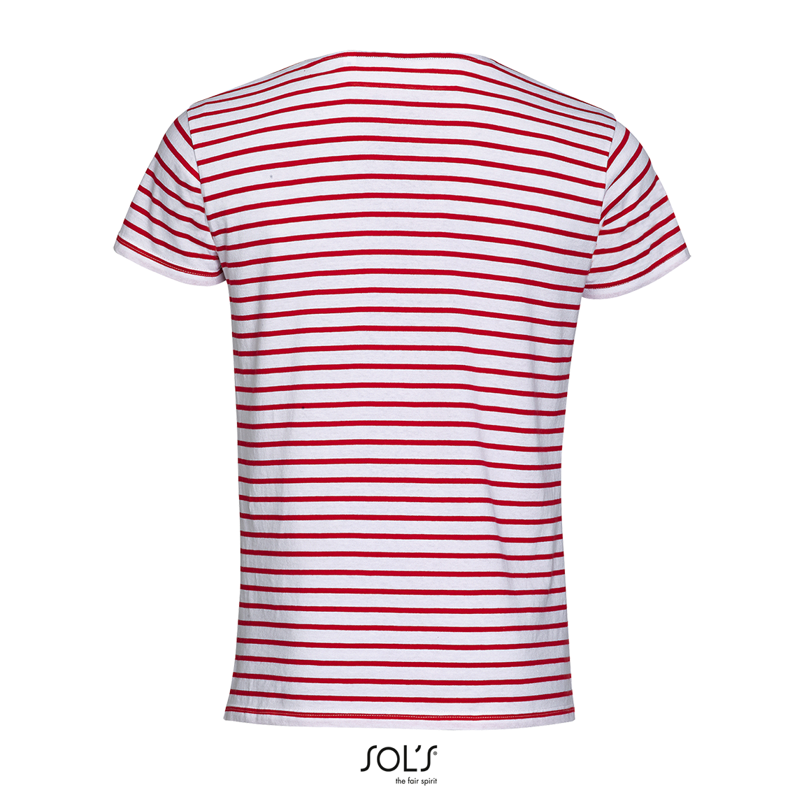 Περιγραφή: Το ανδρικό ριγέ T-shirt διαθέτει κοντά μανίκια, πλαϊνές ραφές και στρογγυλή λαιμόκοψη, με λεπτομέρειες υφάσματος τύπου τζιν στη λαιμόκοψη που ενισχύουν την αισθητική του. Η εφαρμοστή γραμμή του εξασφαλίζει κομψή εμφάνιση και άνεση στην καθημερινή χρήση.