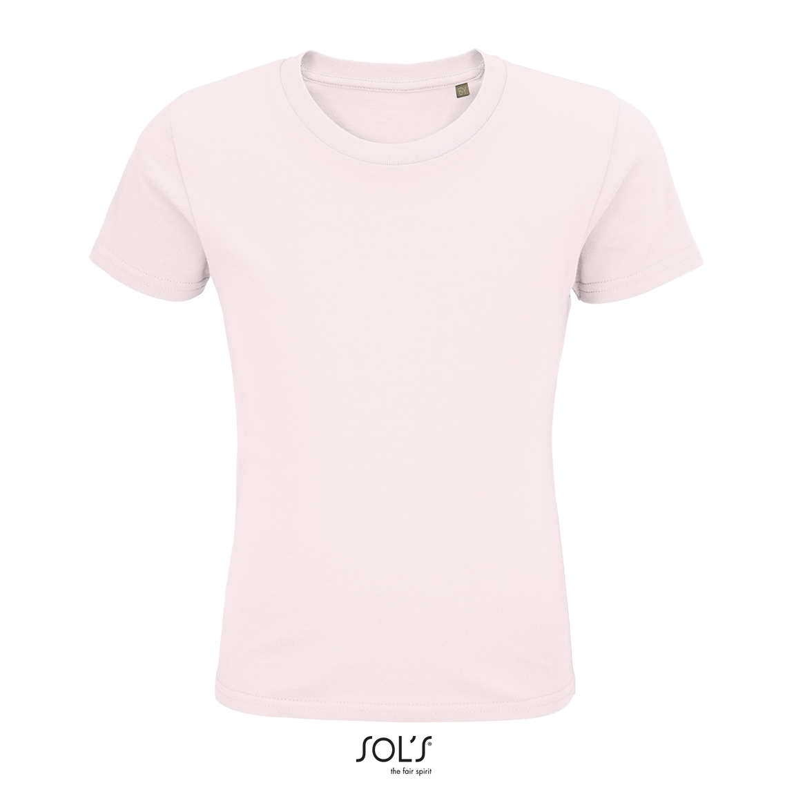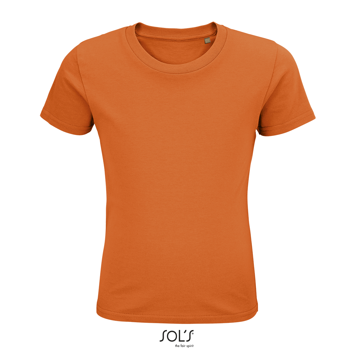 Κοντά μανίκια και στρογγυλή λαιμόκοψη με ριπ, διαθέσιμο σε μεγέθη για παιδιά 2-8 ετών και από 10 ετών και άνω. Κατασκευασμένο από 100% οργανικό βαμβάκι, το T-shirt προσφέρει στενή γραμμή και έχει επεξεργαστεί με ένζυμα για αυξημένη απαλότητα και λεία υφή.
