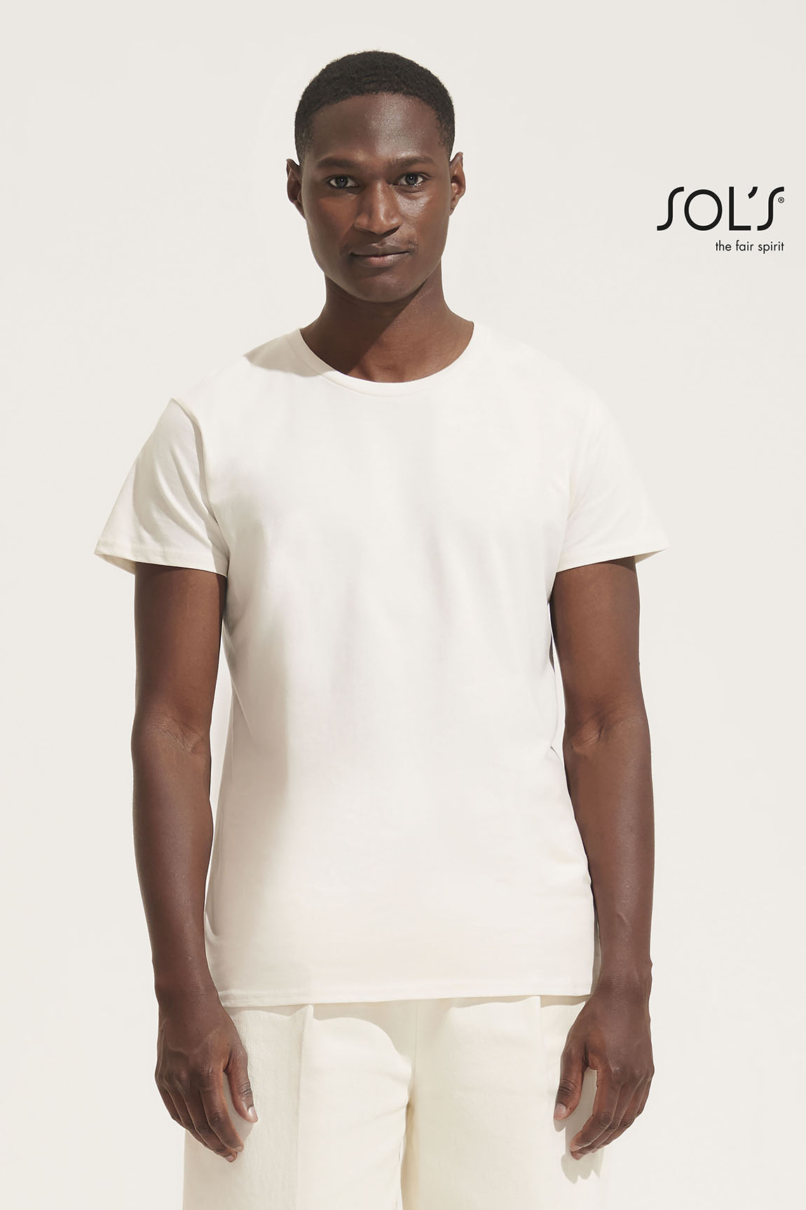 Το ανδρικό οργανικό T-shirt διαθέτει κοντά μανίκια και χωρίς πλαϊνές ραφές, προσφέροντας μια άνετη αίσθηση. Διαθέτει στρογγυλή λαιμόκοψη με ριπ από 100% βαμβάκι και φακαρόλα στο λαιμό. Η στενή γραμμή του και η ειδική επεξεργασία με ένζυμα προσφέρουν περισσότερη απαλότητα και λεία υφή.