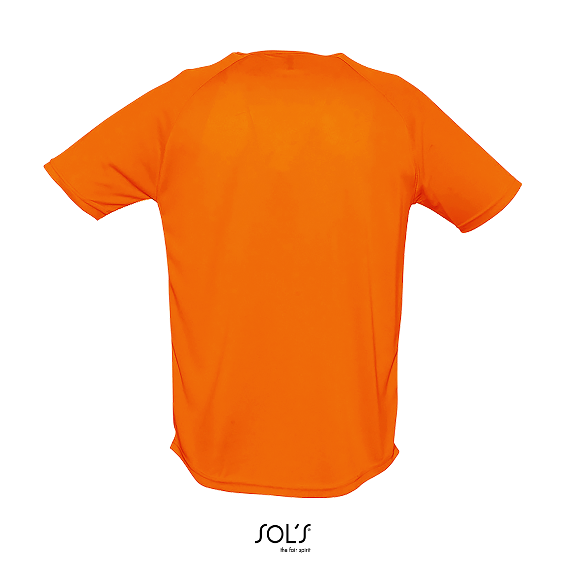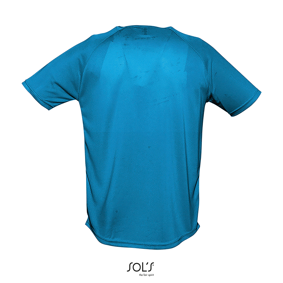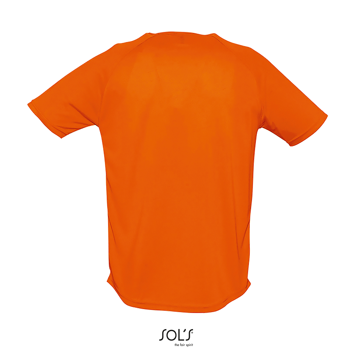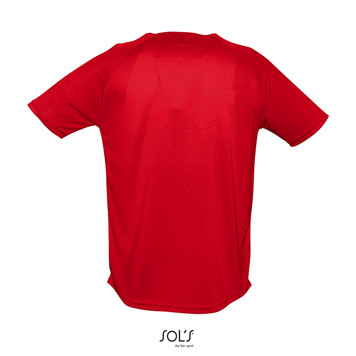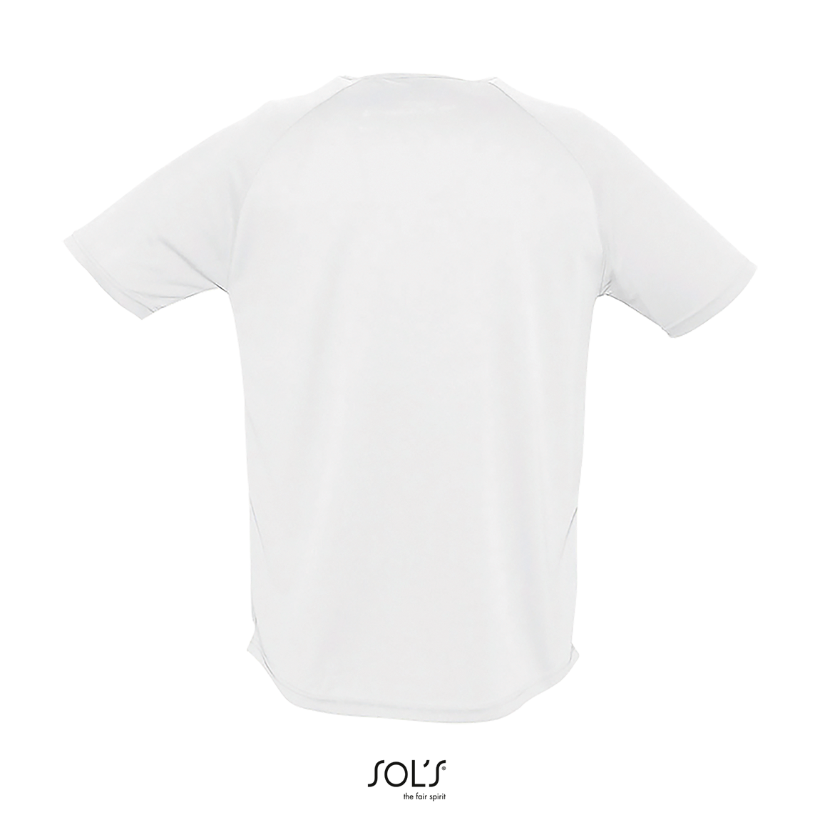 Περιγραφή: Αυτό το ανδρικό T-shirt διαθέτει κοντά ρεγκλάν μανίκια, είναι μακρύτερο στην πλάτη και έχει λαιμόκοψη με ρέλι, ιδανικό για τις αθλητικές και επαγγελματικές σας εμφανίσεις. Ευκολία και άνεση συνδυάζονται με το γρήγορο στέγνωμα του υφάσματος.