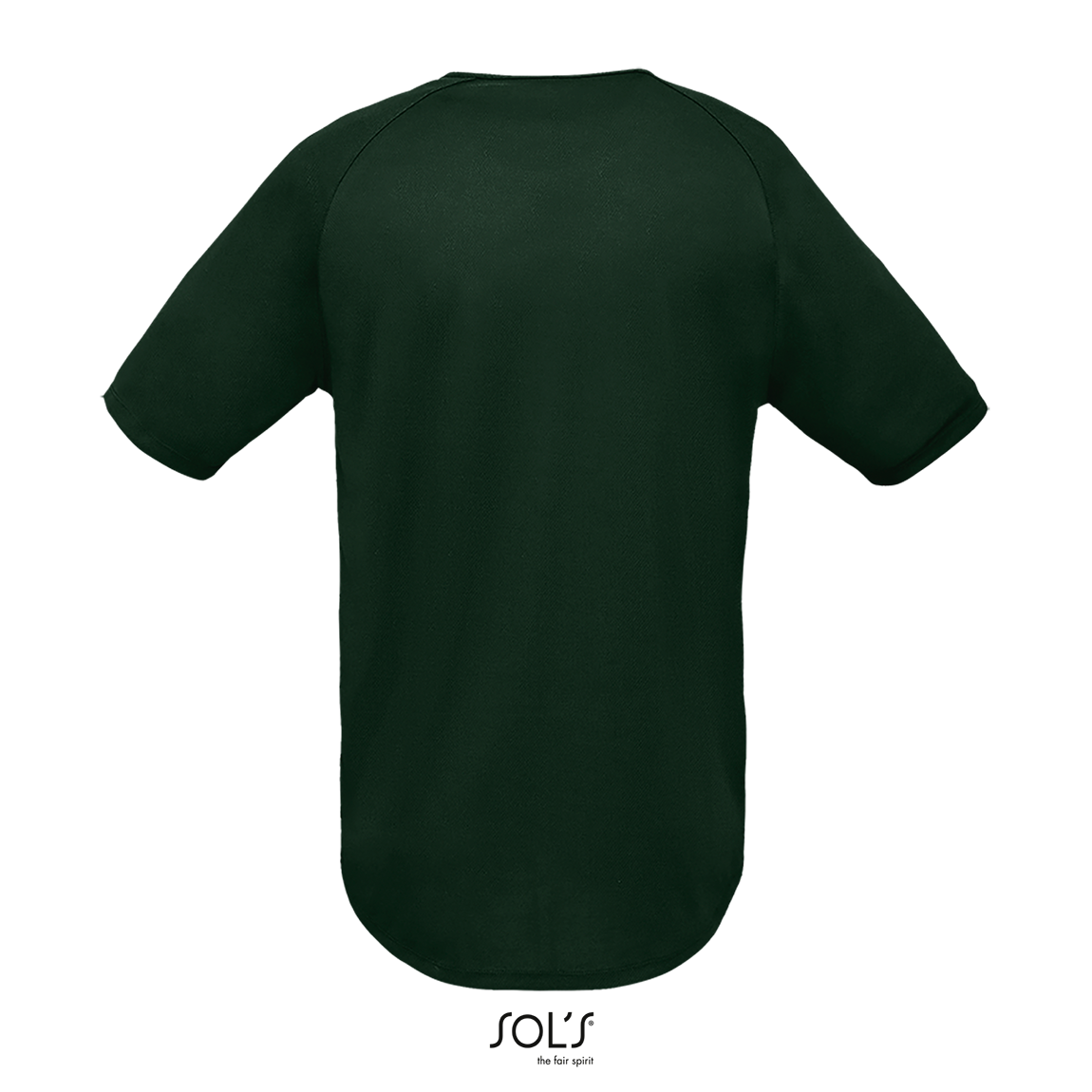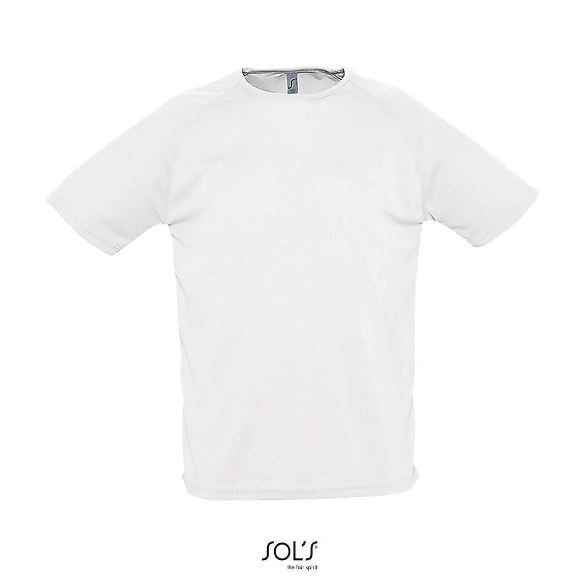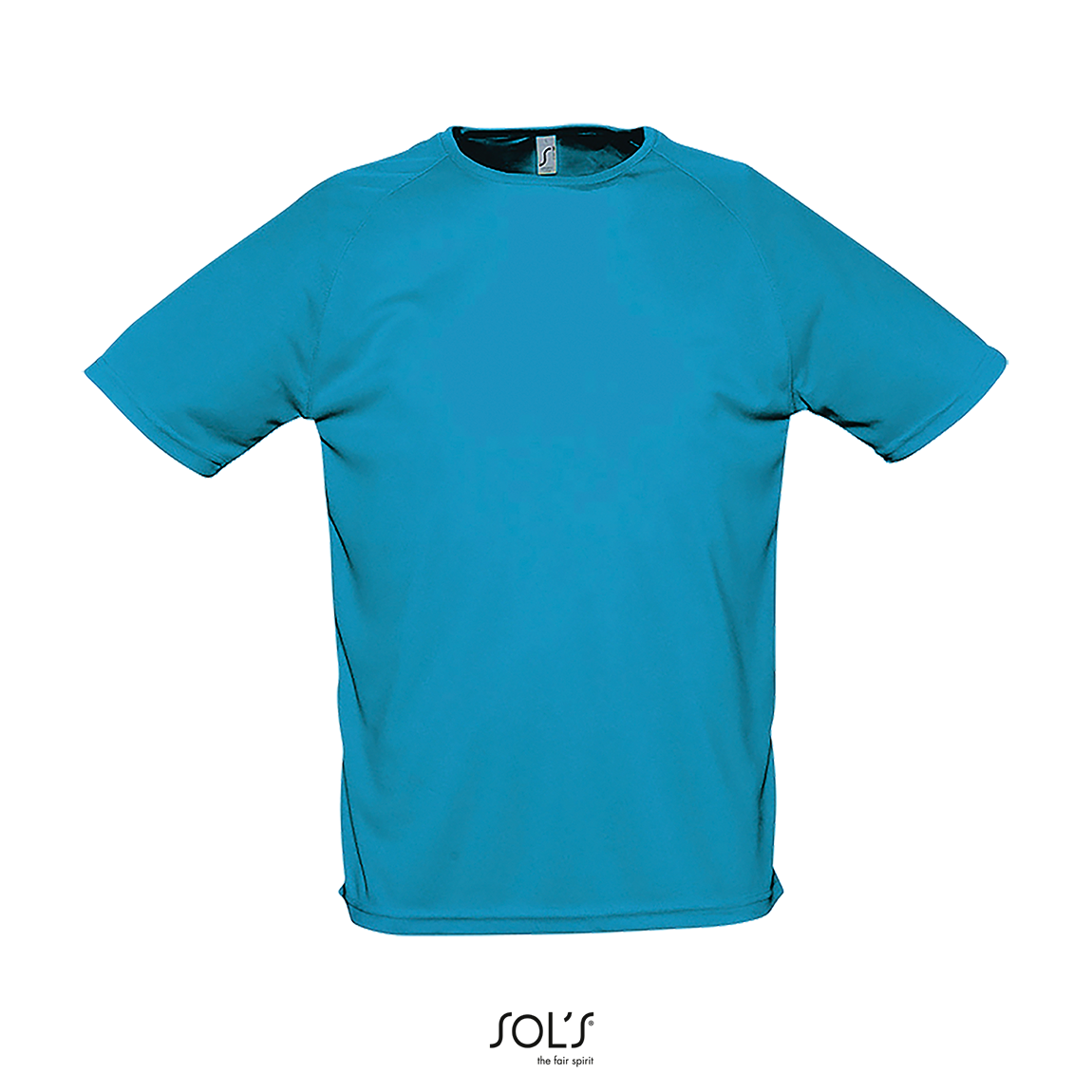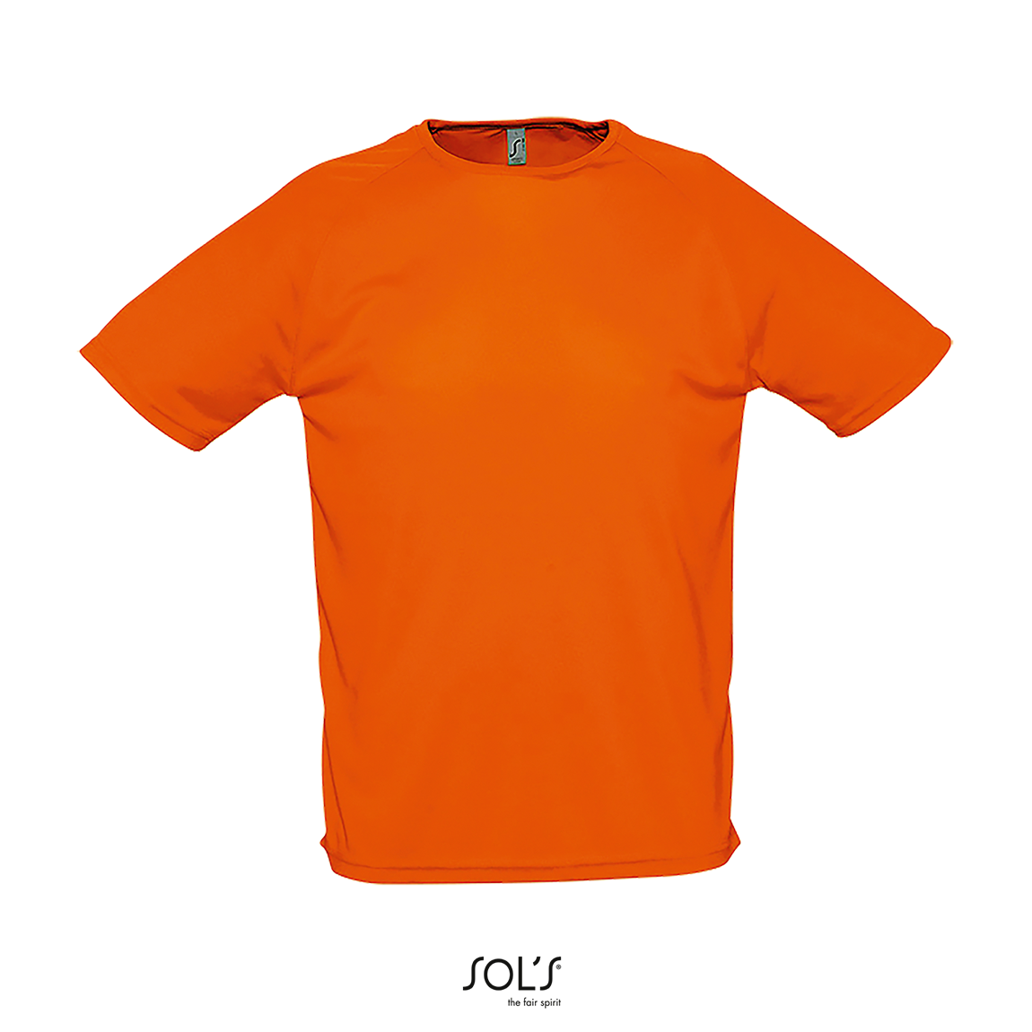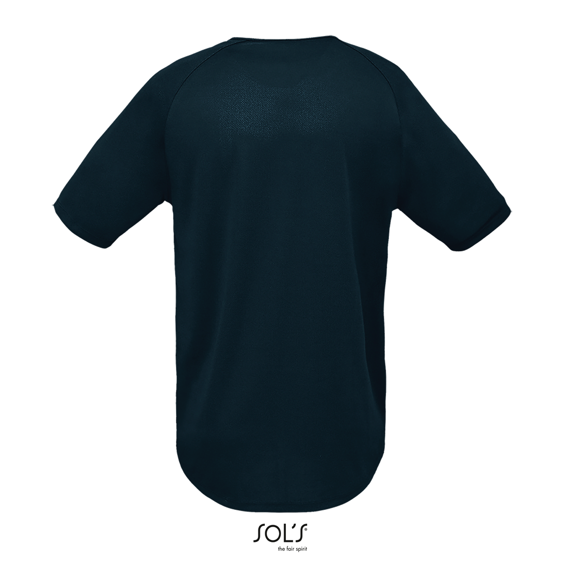 Περιγραφή: Αυτό το ανδρικό T-shirt διαθέτει κοντά ρεγκλάν μανίκια, είναι μακρύτερο στην πλάτη και έχει λαιμόκοψη με ρέλι, ιδανικό για τις αθλητικές και επαγγελματικές σας εμφανίσεις. Ευκολία και άνεση συνδυάζονται με το γρήγορο στέγνωμα του υφάσματος.
