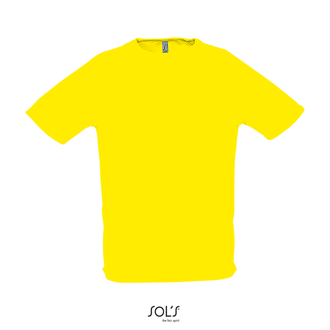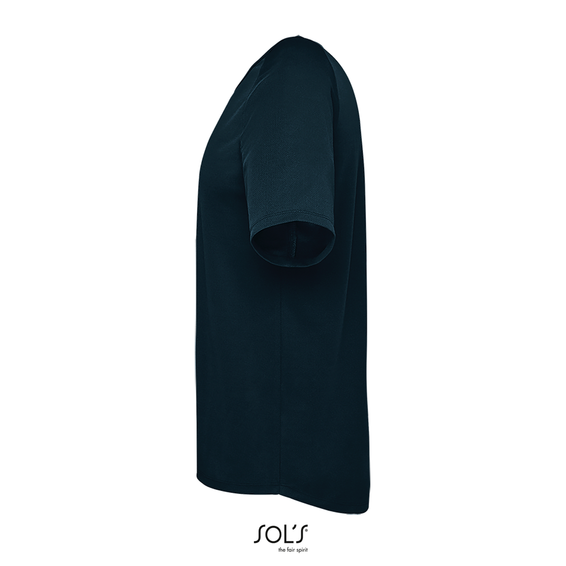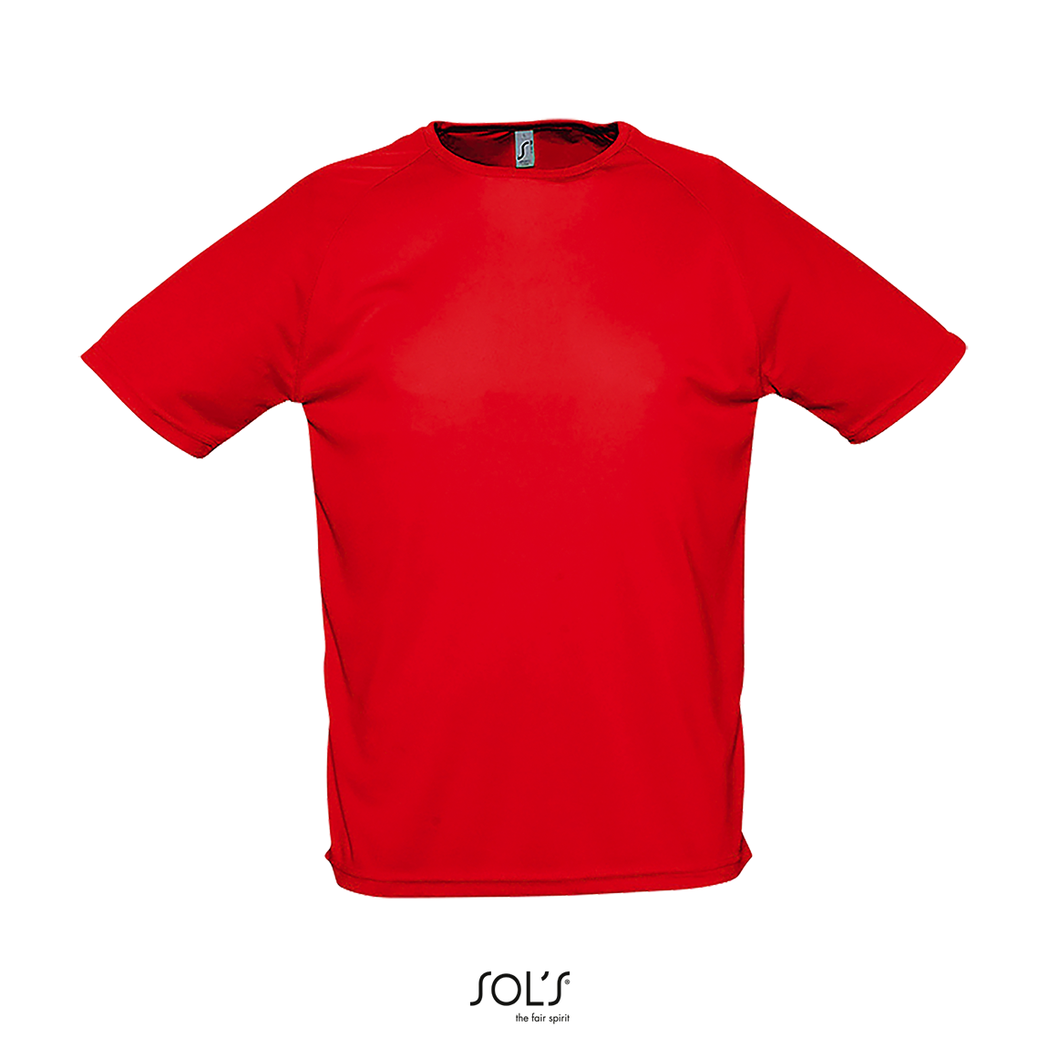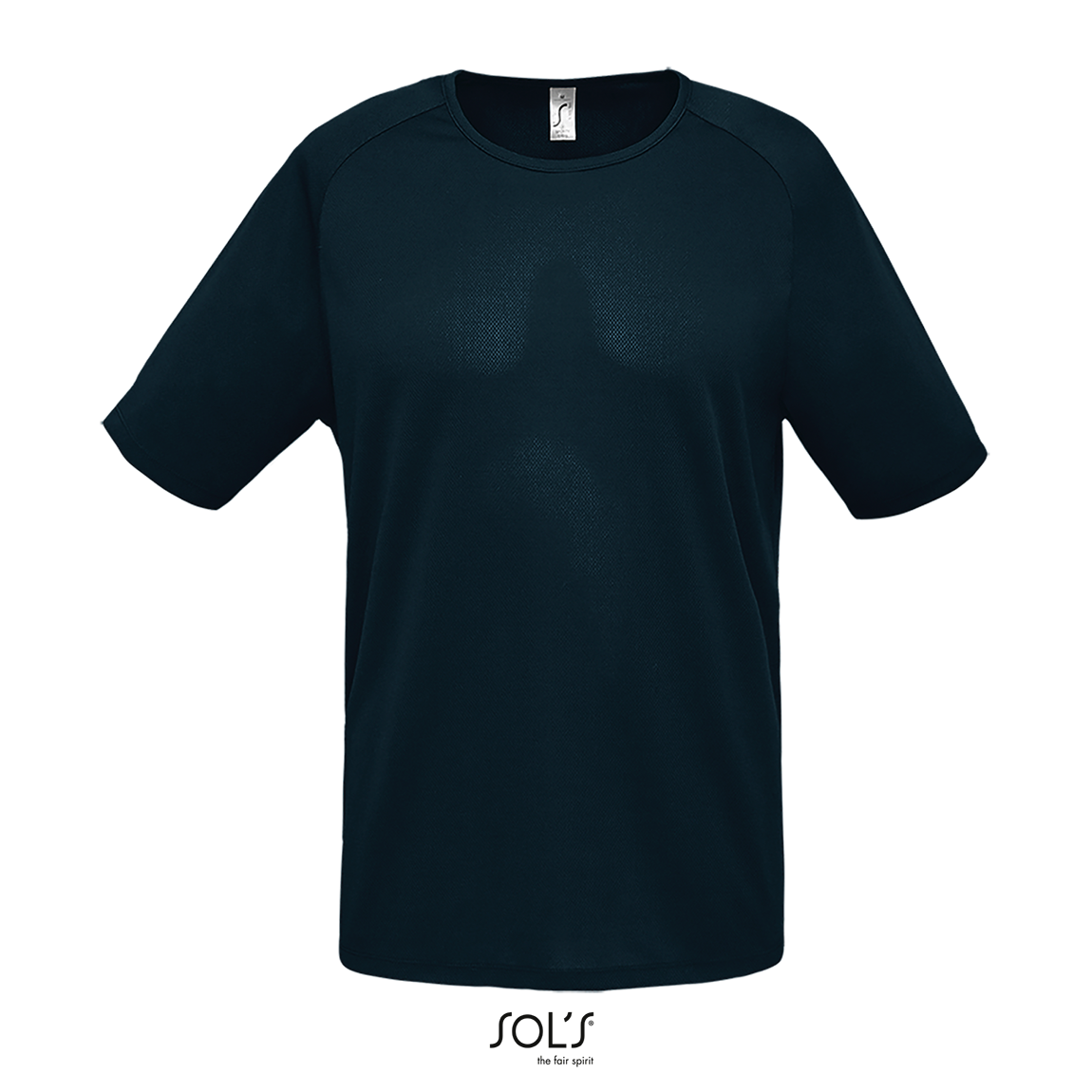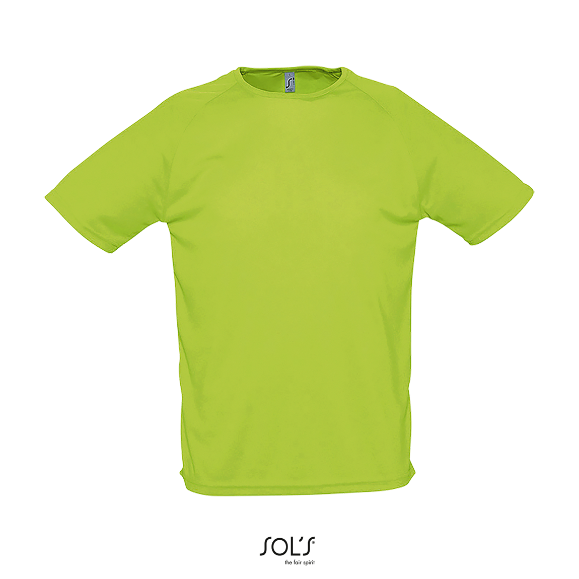 Περιγραφή: Αυτό το ανδρικό T-shirt διαθέτει κοντά ρεγκλάν μανίκια, είναι μακρύτερο στην πλάτη και έχει λαιμόκοψη με ρέλι, ιδανικό για τις αθλητικές και επαγγελματικές σας εμφανίσεις. Ευκολία και άνεση συνδυάζονται με το γρήγορο στέγνωμα του υφάσματος.