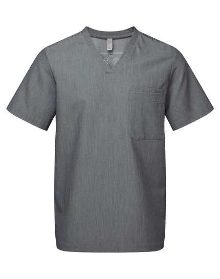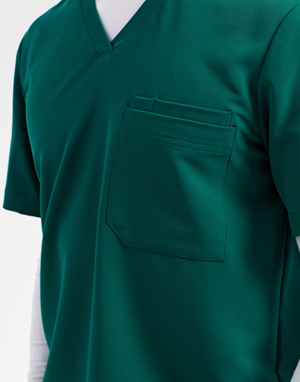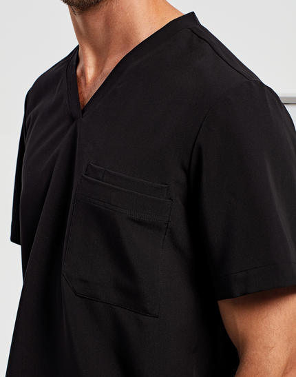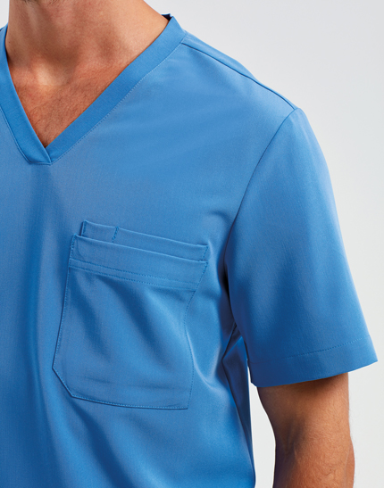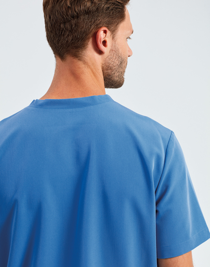 Λαιμόκοψη V με κοντά μανίκια, διαθέτει τσέπη αριστερά στο στήθος και πένσες στην πλάτη για καλύτερη εφαρμογή. Είναι διαπνέουσα, ελαστική και ανθεκτική, ιδανική για καθημερινή χρήση στην επαγγελματική ένδυση. Συνδυάζει μοντέρνα γραμμή και λειτουργικότητα.