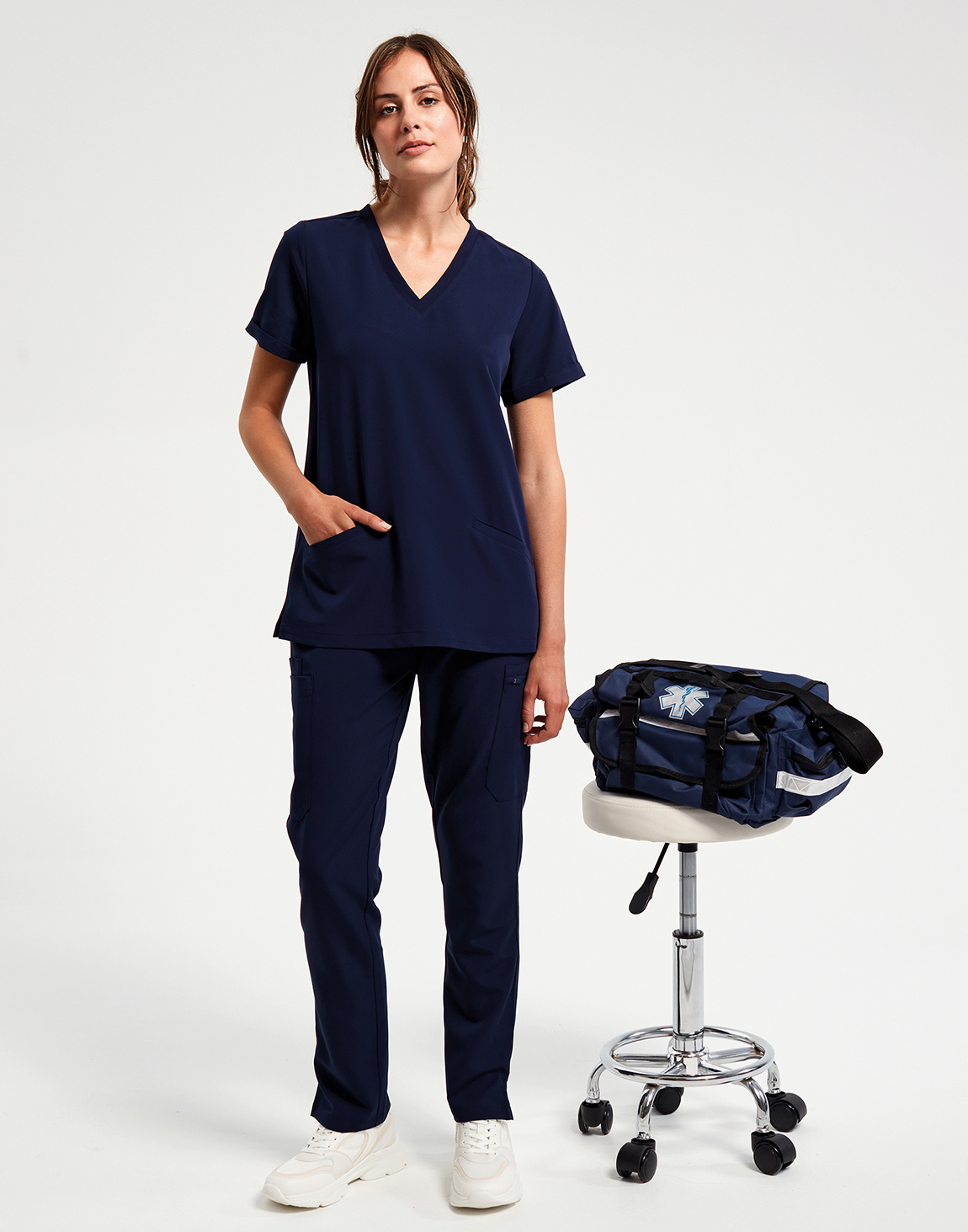 Η μπλούζα διαθέτει λαιμόκοψη V, κοντά μανίκια και 2 πρακτικές τσέπες μπροστά. Οι πένσες στην πλάτη προσφέρουν καλύτερη εφαρμογή, ενώ το διαπνέον και ελαστικό υλικό εξασφαλίζει άνεση καθόλη τη διάρκεια της ημέρας. Με μοντέρνα γραμμή, είναι ιδανική για επαγγελματική ένδυση στον τομέα της υγείας.
