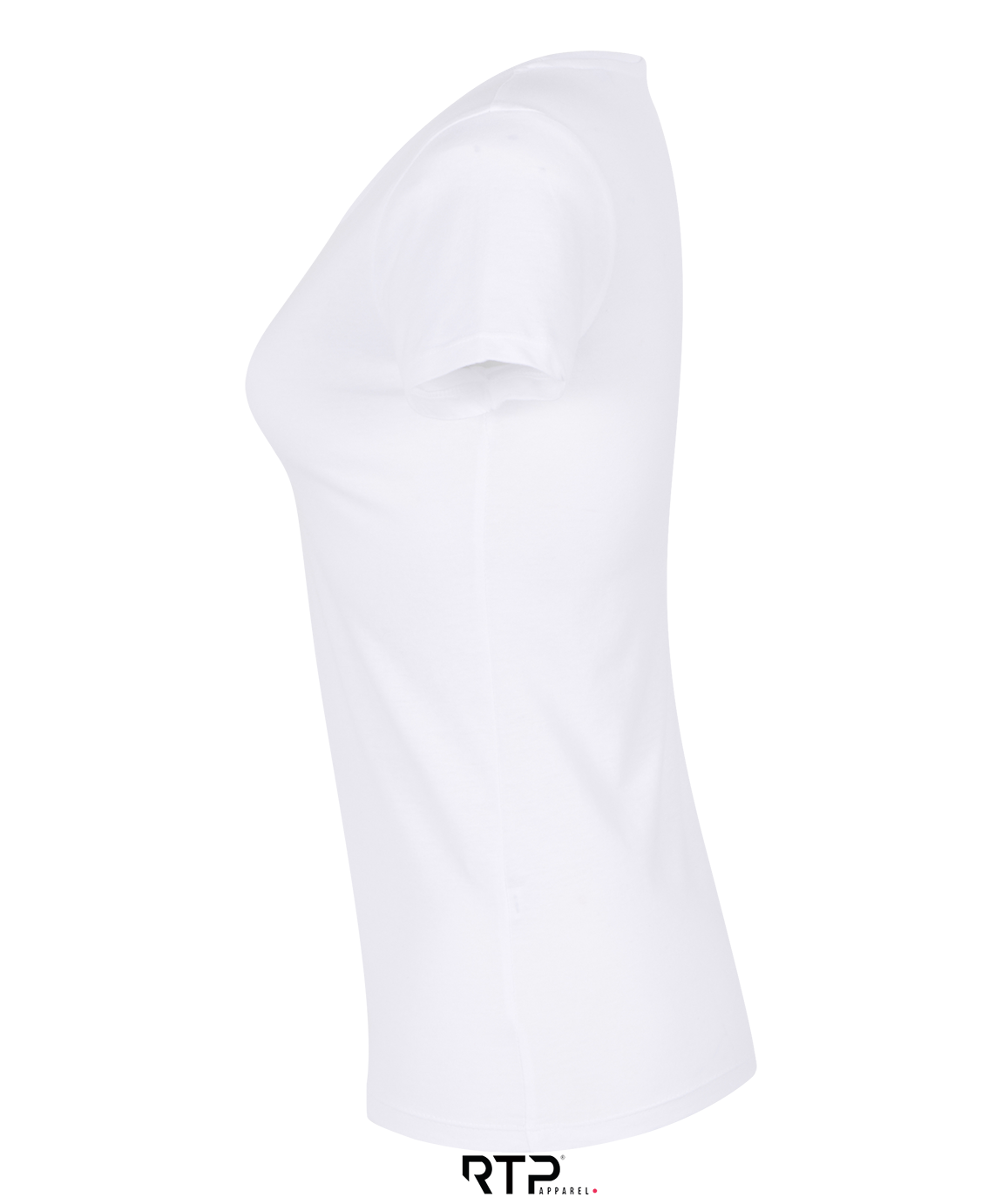 Αυτό το γυναικείο T-shirt διαθέτει πλαϊνές ραφές και στρογγυλή, ανοιχτή λαιμόκοψη, κάνοντάς το ιδανικό για κάθε επαγγελματική περίσταση. Με προ-επεξεργασία για ψηφιακή εκτύπωση και περιοχή εκτύπωσης 44 x 29 εκ., προσφέρει εξαιρετική λειτουργικότητα και μοντέρνα γραμμή.