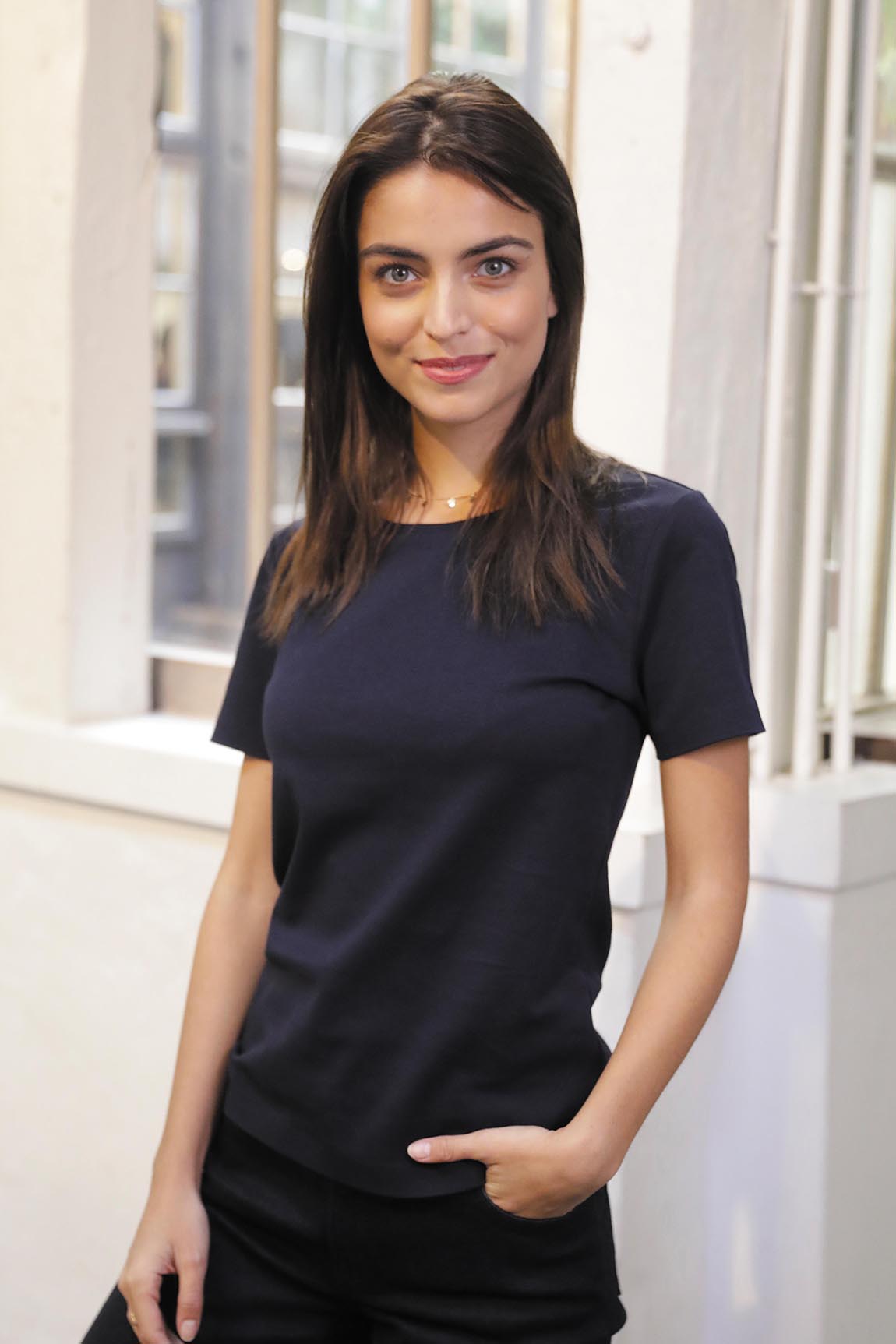 Κοντά μανίκια με στρογγυλή λαιμόκοψη και ριπ από μερσεριζέ βαμβάκι. Διαθέτει θερμοκολλημένο τελείωμα στο κάτω μέρος του μανικιού και του κορμού, καθώς και φακαρόλα στο λαιμό.