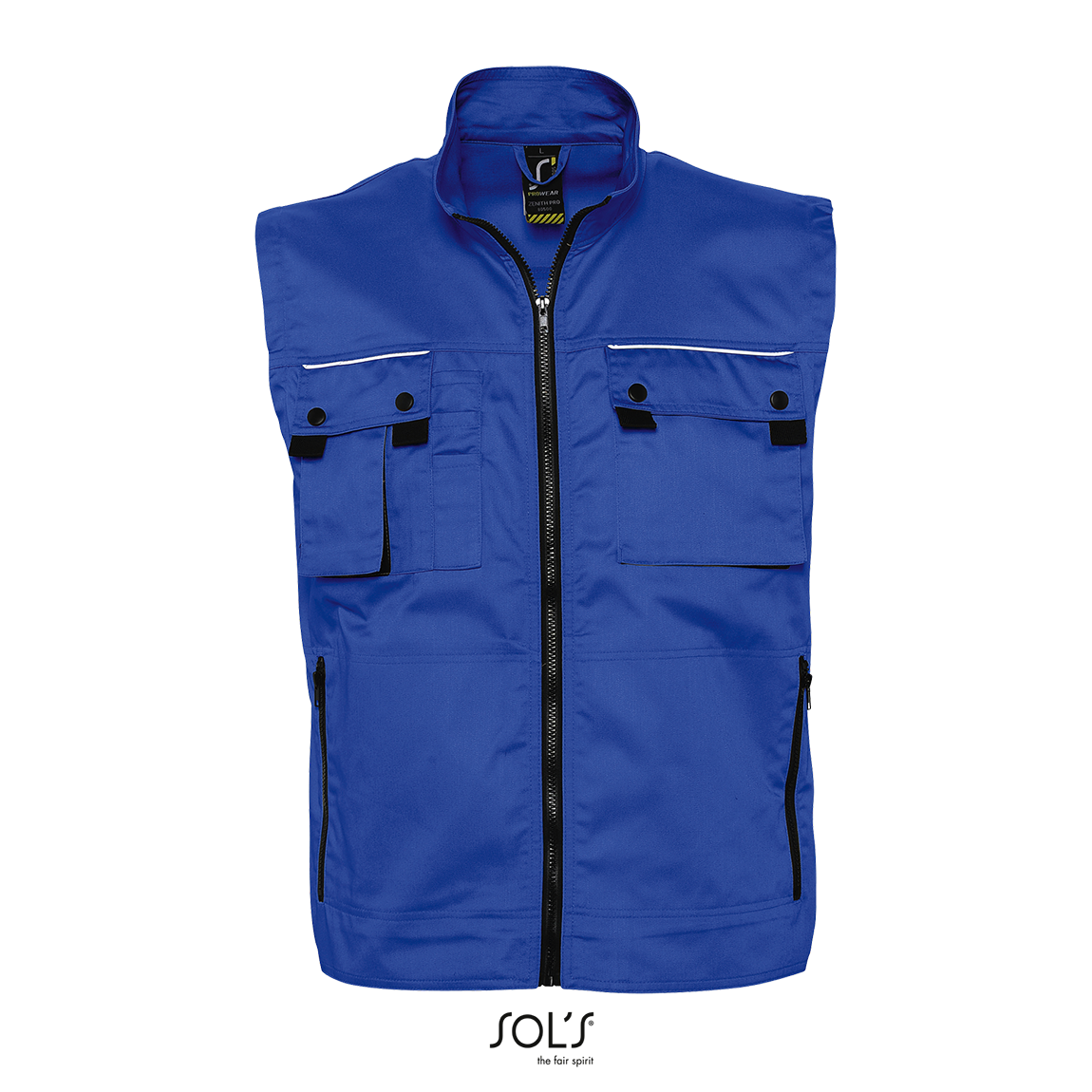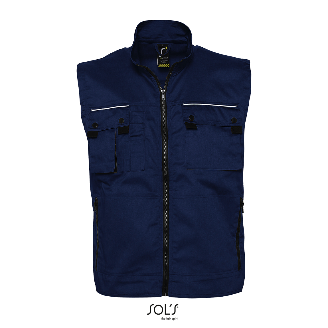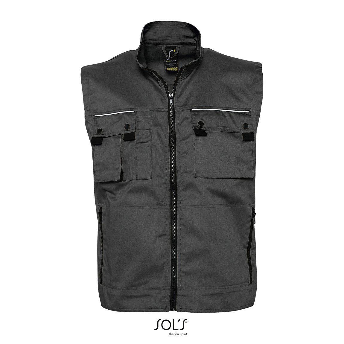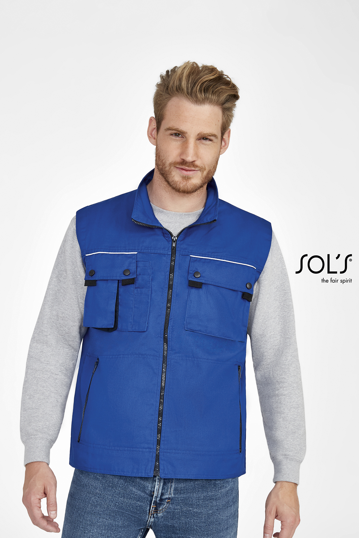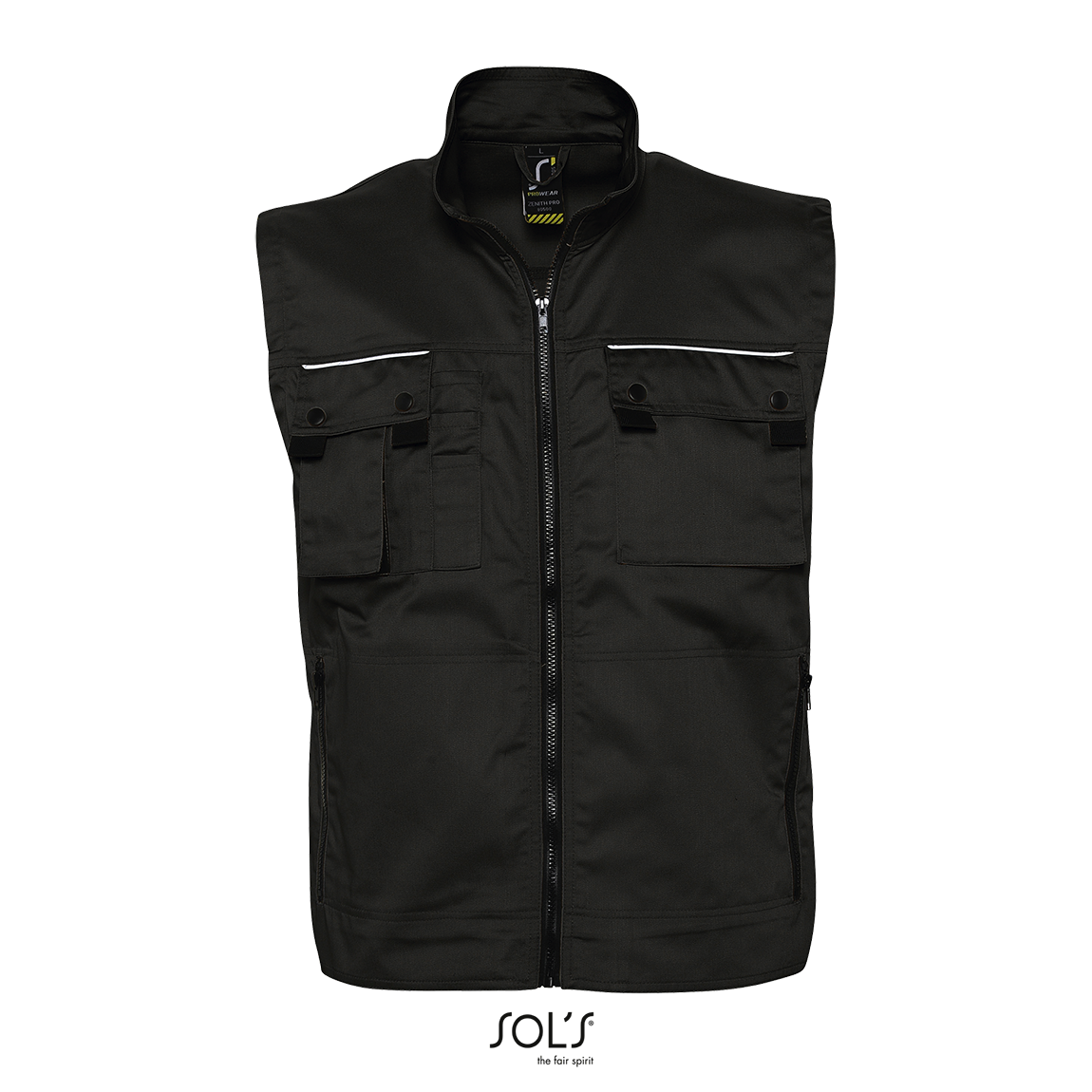 Άνοιγμα με κρυφό μαύρο φερμουάρ SBS σε ένα γιλέκο με 6 τσέπες, συμπεριλαμβανομένης μίας αποσπώμενης και μίας εσωτερικής τσέπης. Το σχέδιο περιλαμβάνει κάλυμμα τσέπης με ανακλαστική ραφή και 3 θέσεις για στυλό, καθώς και ραμμένη ετικέτα για προσωπικά στοιχεία.Σύνθεση: