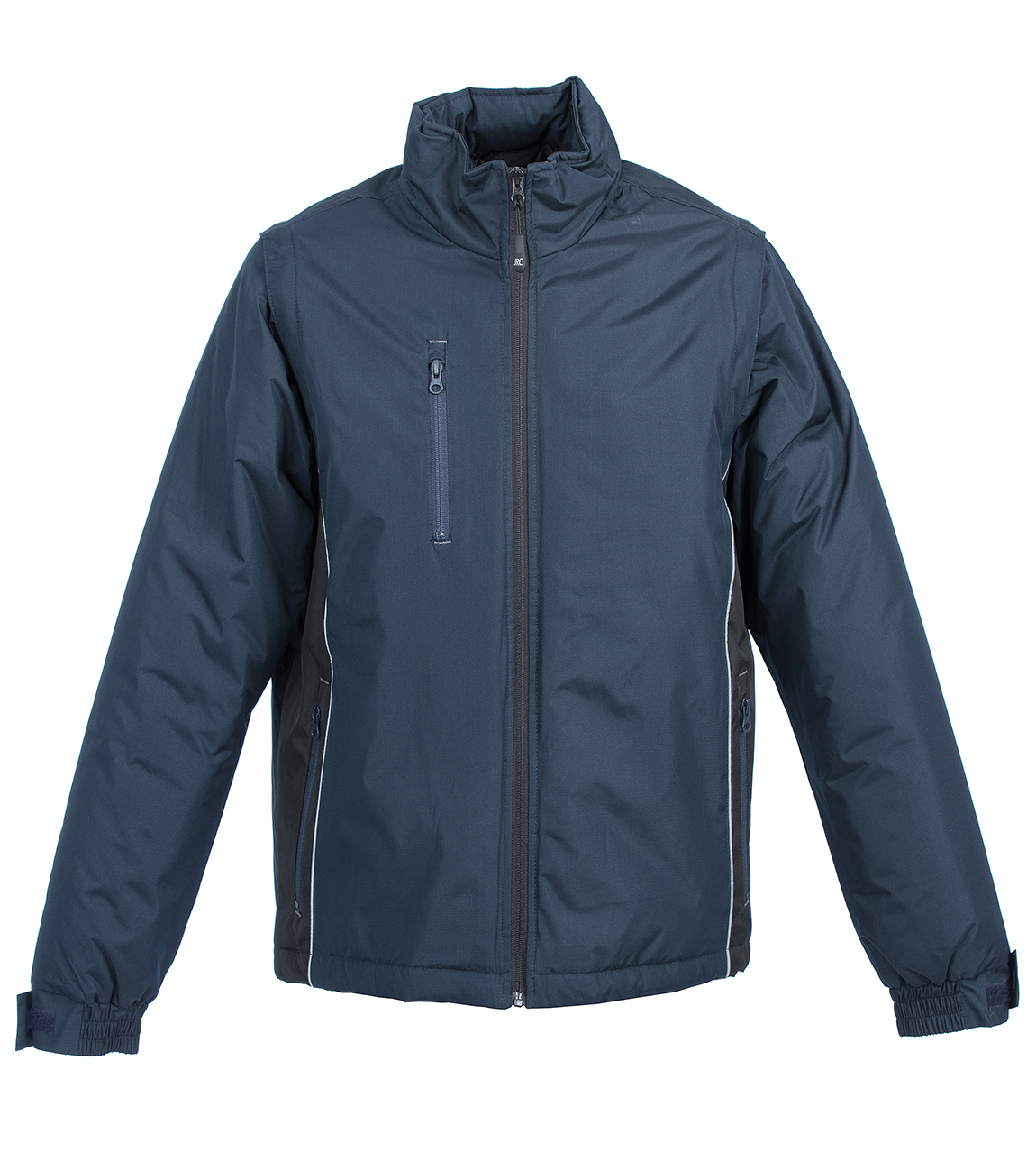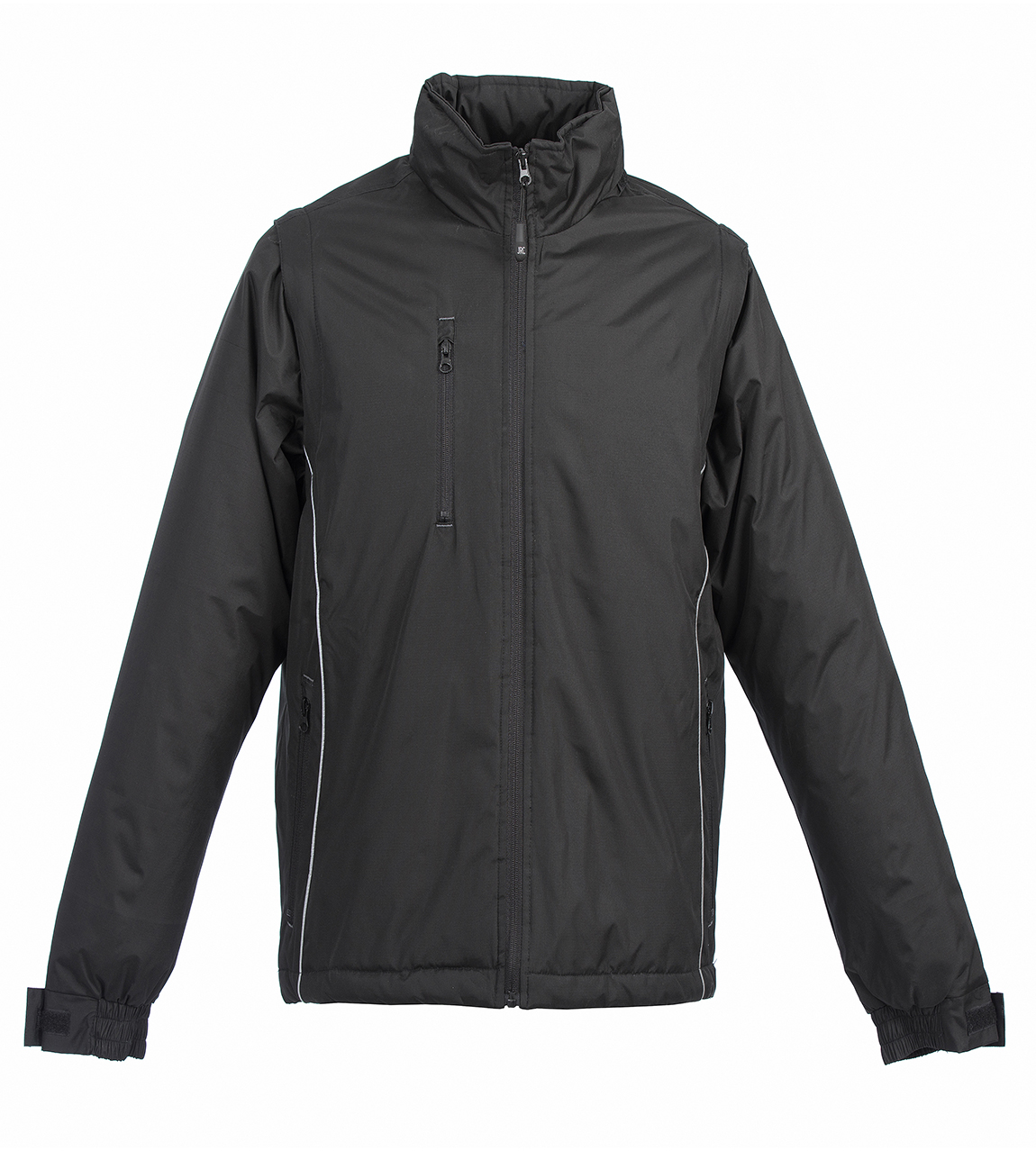 Αυτό το μπουφάν διαθέτει αποσπώμενα μανίκια και αναδιπλούμενη κουκούλα, ιδανικό για προσαρμοστικότητα σε διαφορετικές συνθήκες. Οι ανακλαστικές λεπτομέρειες εξασφαλίζουν ορατότητα, ενώ οι τσέπες με φερμουάρ (μία στο στήθος και δύο στα πλάγια) προσφέρουν ασφαλή αποθήκευση. Η εσωτερική τσέπη με velcro και οι ελαστικές μανσέτες προσθέτουν επιπλέον λειτουργικότητα. Το κορδόνι σύσφιξης στη μέση επιτρέπει τέλεια εφαρμογή.