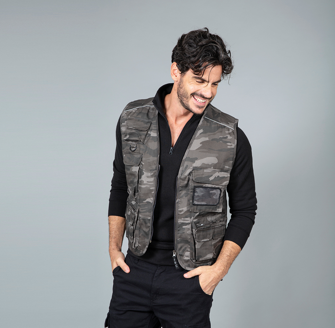 Περιγραφή: Το γιλέκο New Safari διαθέτει 9 πρακτικές τσέπες, συμπεριλαμβανομένης μιας διαφανής τσέπης στοιχειών στο στήθος που διπλώνει. Η ανακλαστική λωρίδα κοντά στους ώμους εξασφαλίζει ορατότητα και ασφάλεια στο χώρο εργασίας. Το σχέδιο είναι χωρίς επένδυση και διαθέτει επένδυση με δίχτυ για αυξημένη άνεση.