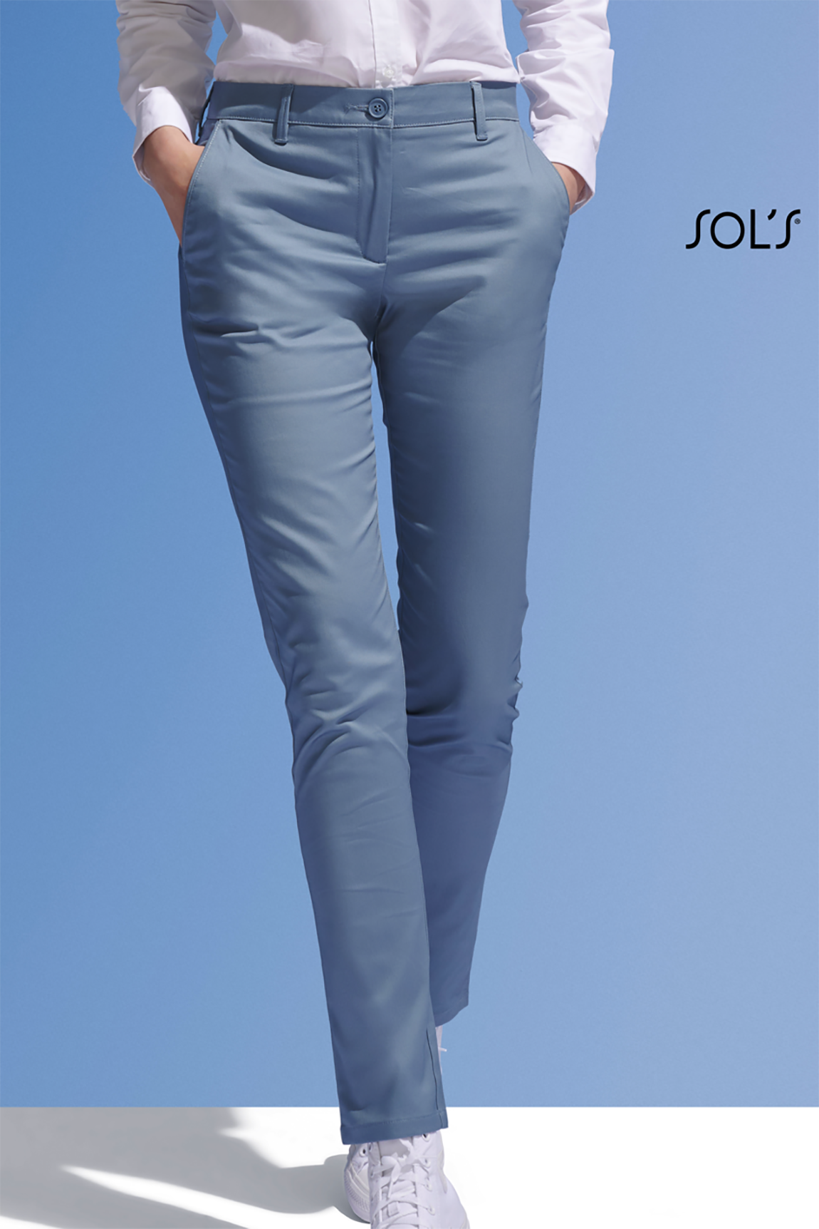 Θηλύκια για ζώνη, 2 ιταλικές τσέπες, 1 μικρή τσέπη εισιτηρίου και 2 πίσω οριζόντιες τσέπες. Το παντελόνι διαθέτει εφαρμοστή γραμμή που προσφέρει κομψότητα και στυλ.