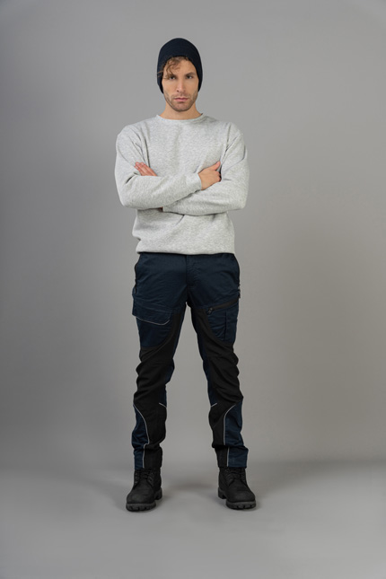 Δίχρωμο με ανακλαστικές λεπτομέρειες, το παντελόνι διαθέτει 2 τσέπες με φερμουάρ μπροστά, 1 τσέπη με velcro στον δεξί μηρό και 1 τσέπη με φερμουάρ & μία ανοιχτή στον αριστερό μηρό. Περιλαμβάνει 1 πίσω τσέπη για το μέτρο, 1 πίσω τσέπη με φερμουάρ, ελαστική μέση και μεγάλα θηλύκια για τη ζώνη. Ιδανικό για χρήση σε εργοτάξια ή σε επαγγελματικούς χώρους όπου η αναγνώριση και η λειτουργικότητα είναι πρωταρχικής σημασίας.