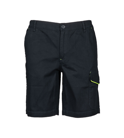 Σχέδιο και Χαρακτηριστικά: Η ανδρική βερμούδα εργασίας Zurigo διαθέτει προπλυμένο ύφασμα, που προσφέρει άνεση και ανθεκτικότητα. Περιλαμβάνει 2 ιταλικές τσέπες και μια τσέπη στο πλάι με velcro, ενώ οι φωσφορίζουσες κίτρινες λεπτομέρειες προσθέτουν μια σύγχρονη πινελιά. Επιπλέον, διαθέτει διπλή τσέπη για χάρακα και θήκη εργαλείων με κίτρινη λεπτομέρεια και ελαστική μέση με μεγάλα θηλύκια για τη ζώνη.