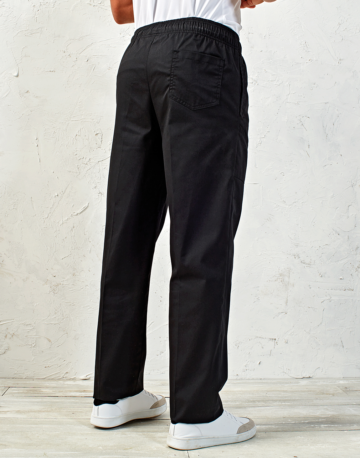 Στενή γραμμή στα πόδια που προσφέρει κομψότητα και στυλ, με χαρακτηριστική πίσω τσέπη για λειτουργικότητα. Η ελαστική μέση με κορδόνι και φερμουάρ εξασφαλίζει άριστη εφαρμογή και άνεση κατά την εργασία.