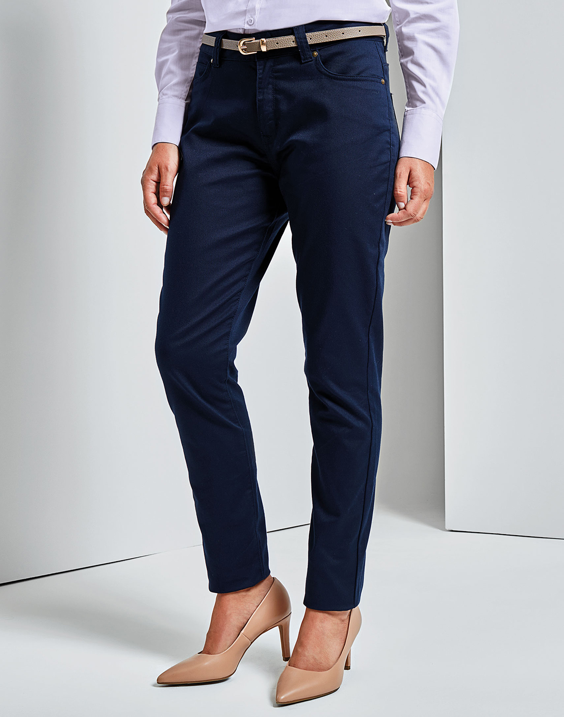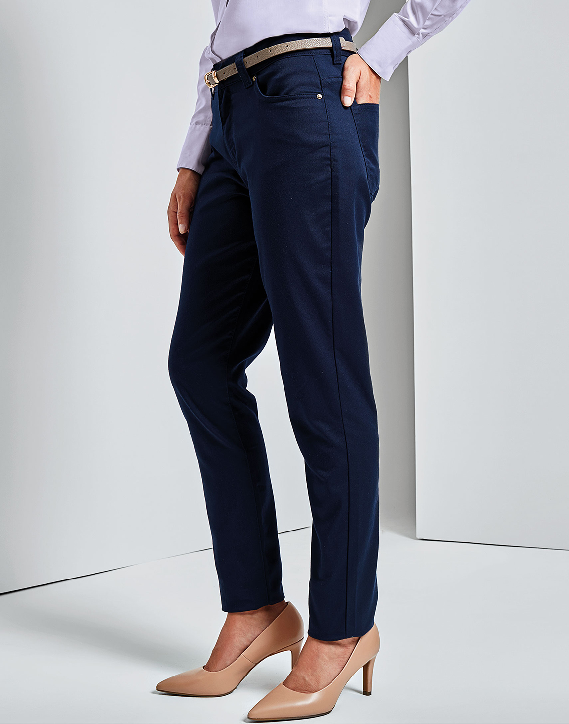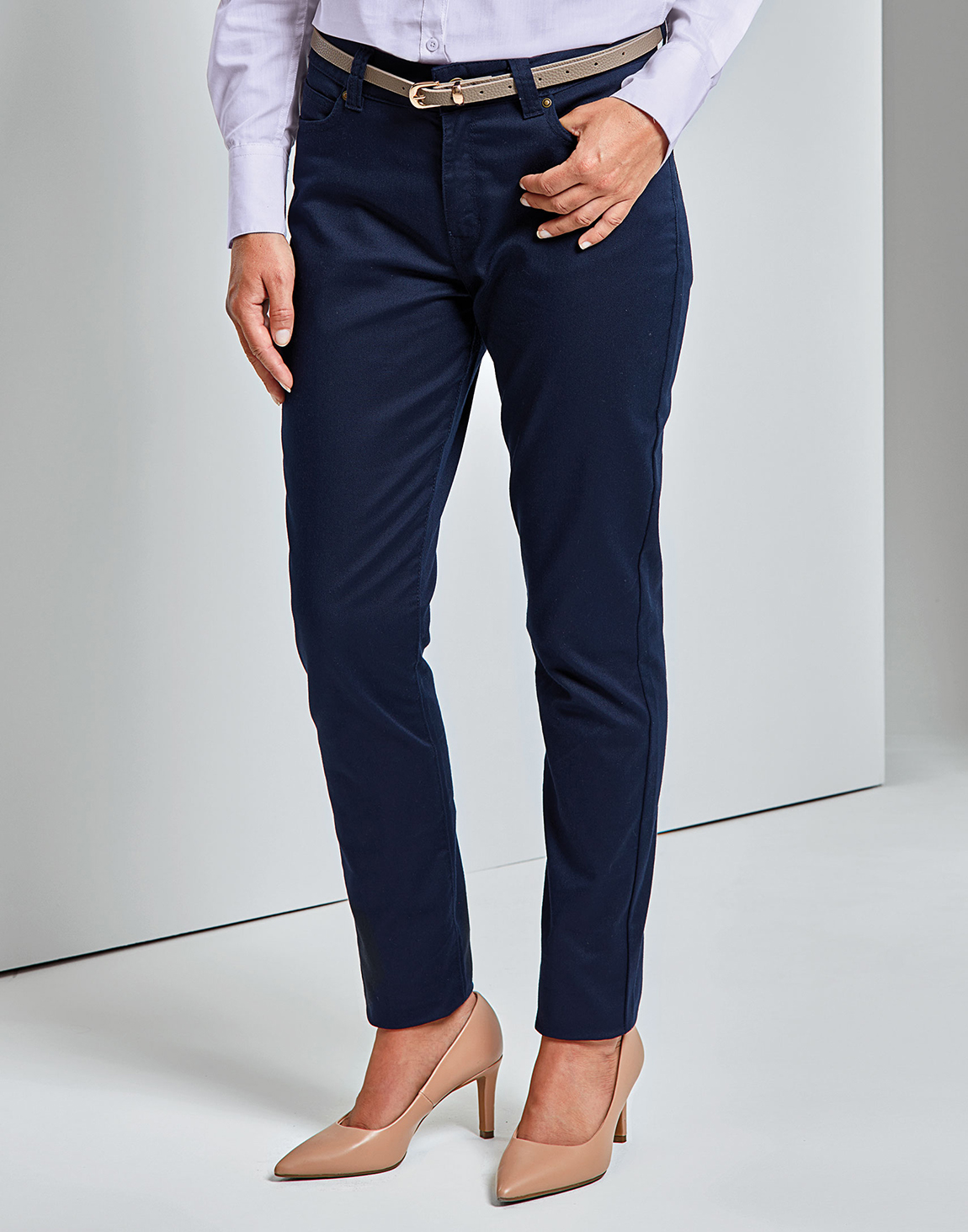 Το γυναικείο παντελόνι Chino διαθέτει κλείσιμο με φερμουάρ ΥΚΚ και κουμπί, θηλύκια για ζώνη, καθώς και δύο πρακτικές τσέπες μπροστά και πίσω. Το σχέδιο του είναι κομψό και λειτουργικό, ιδανικό για επαγγελματικές περιστάσεις.